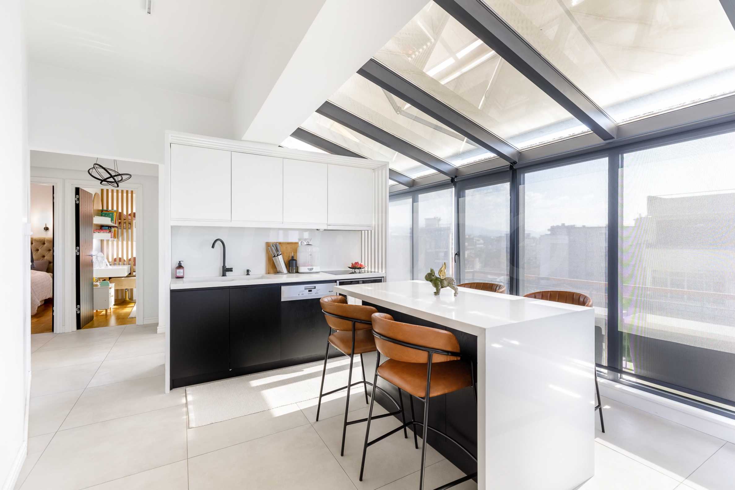 - Atrium structure made of high-quality aluminum with energy-efficient triplex glass and protective foils;