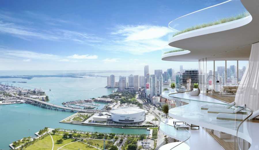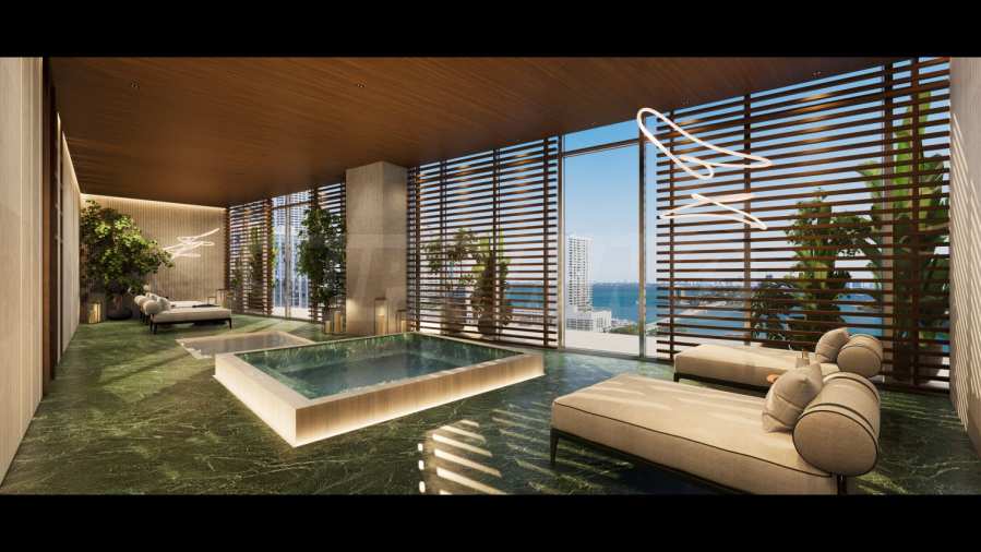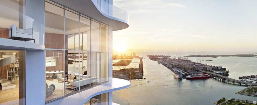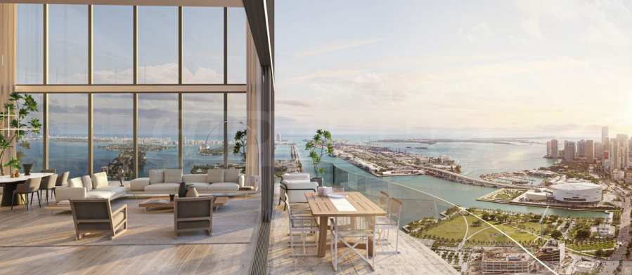 All residences feature private elevators and lobbies, providing peace and privacy. With 10-foot ceilings and floor-to-ceiling windows, the apartments offer exceptional light and panoramic views of Biscayne Bay and Downtown Miami.