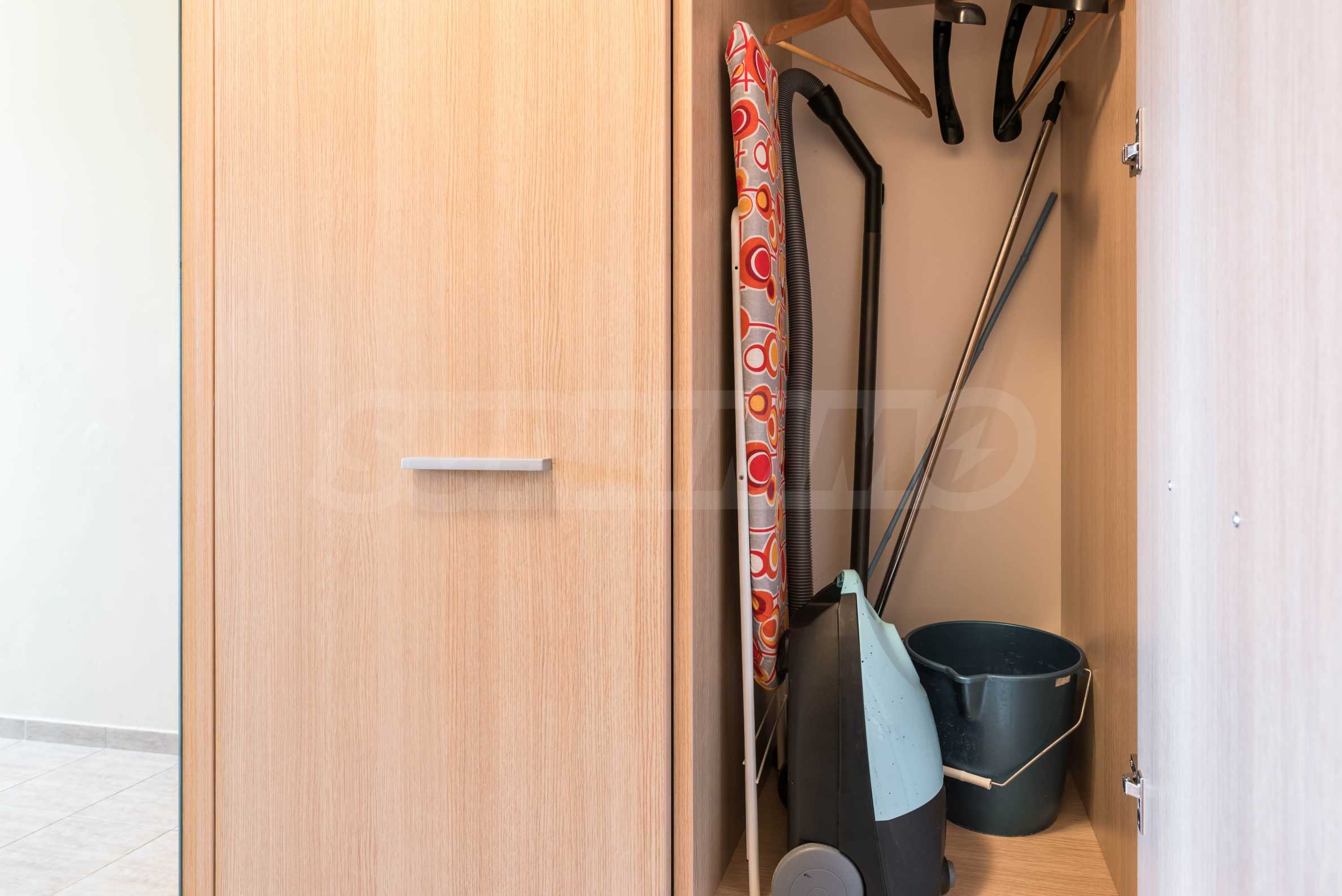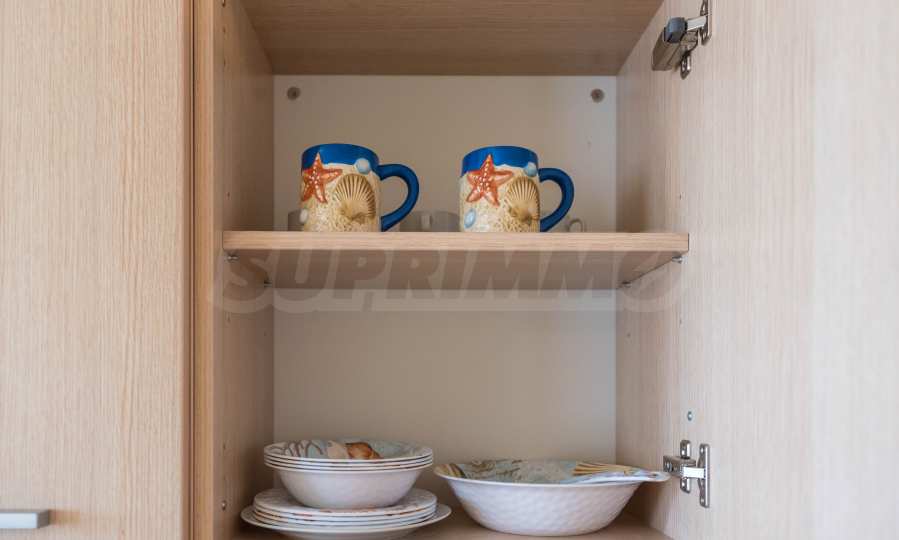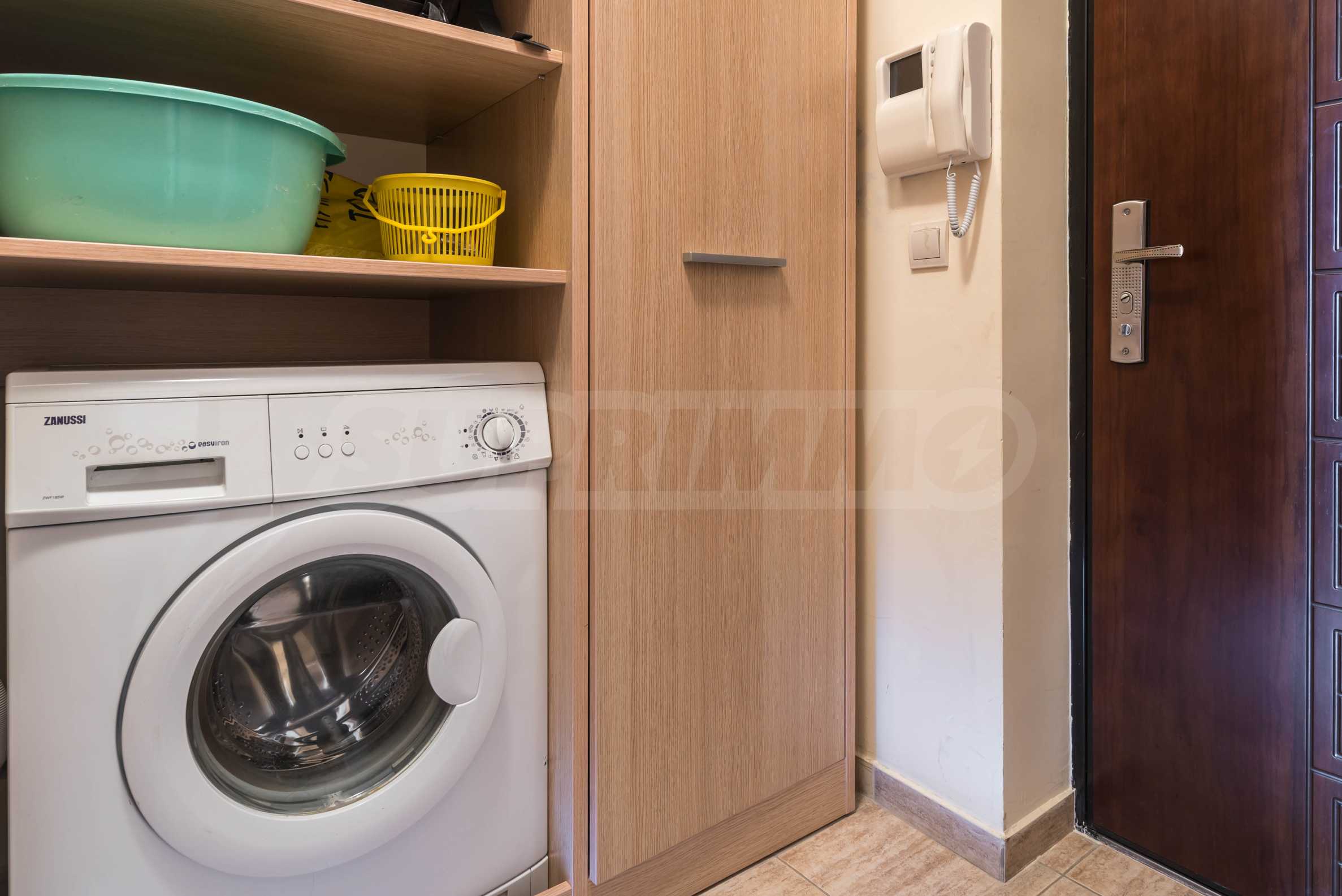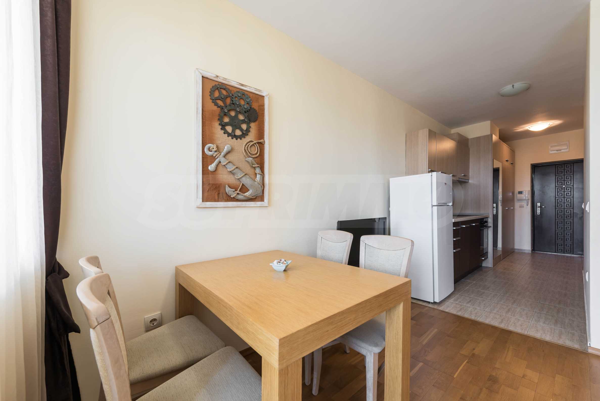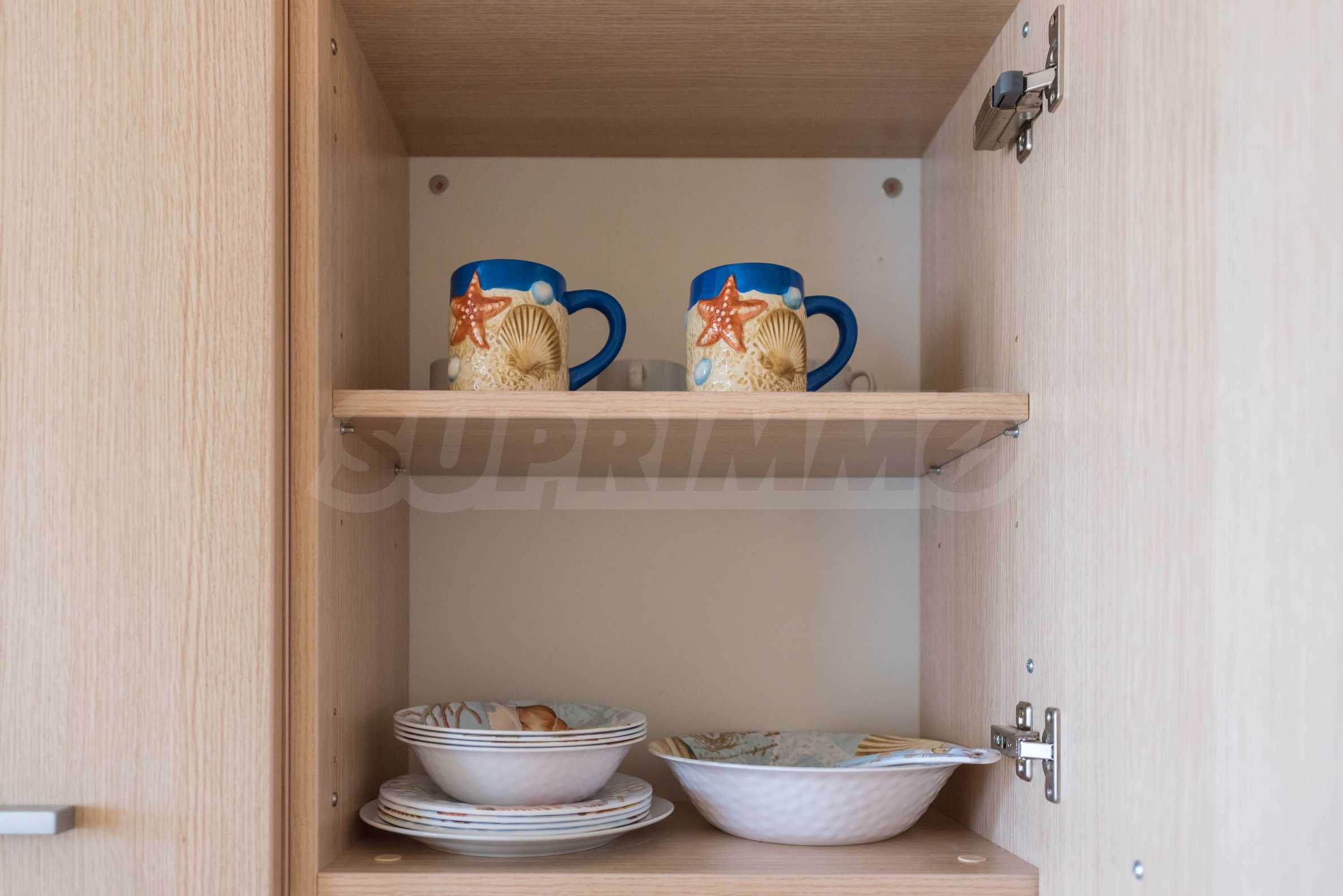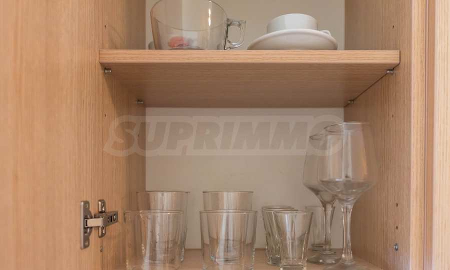 The studio is fully furnished and equipped with everything necessary for comfortable living, such as furniture and electrical appliances - air conditioning, TV, washing machine, stove, refrigerator, dishwasher, kitchen utensils.