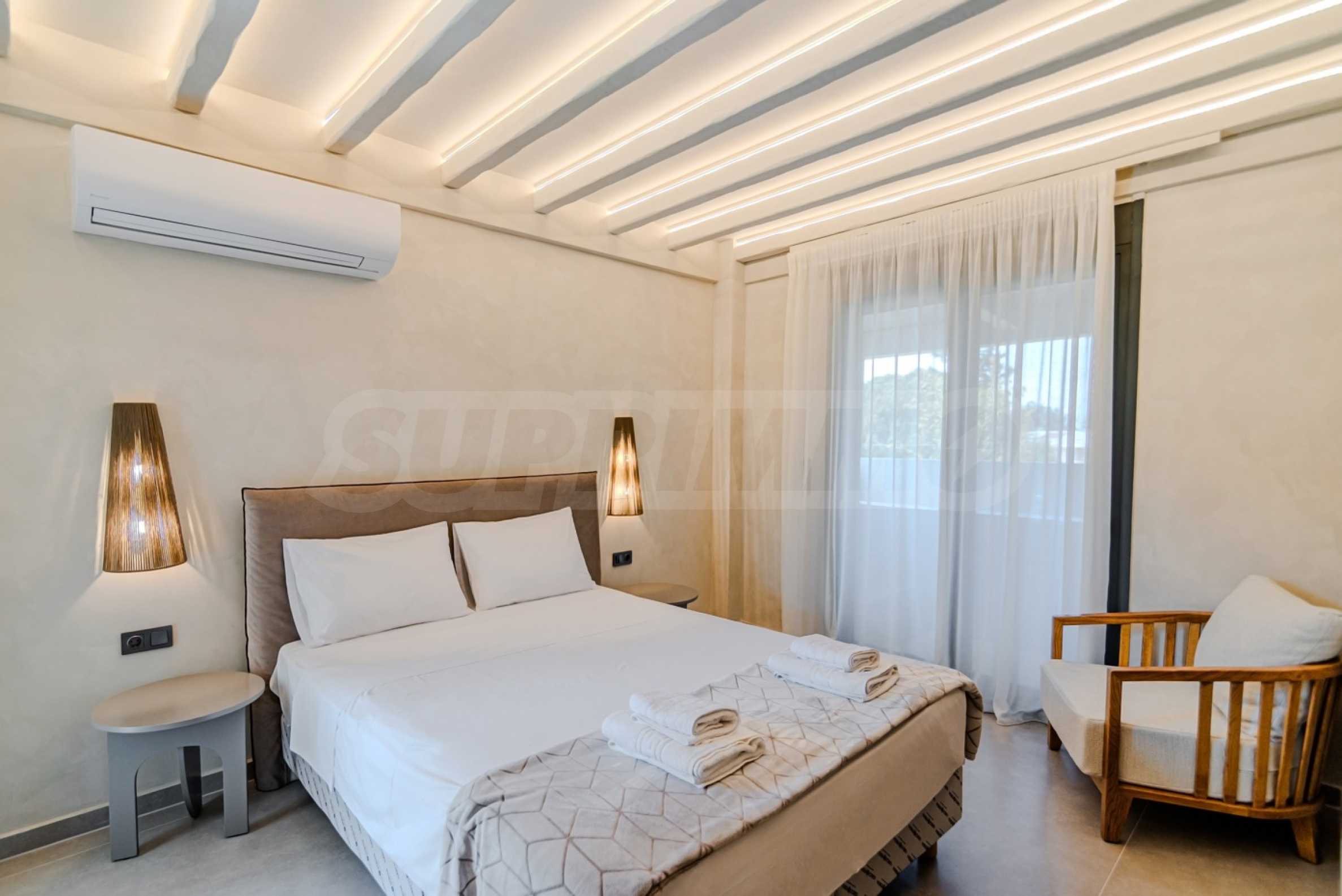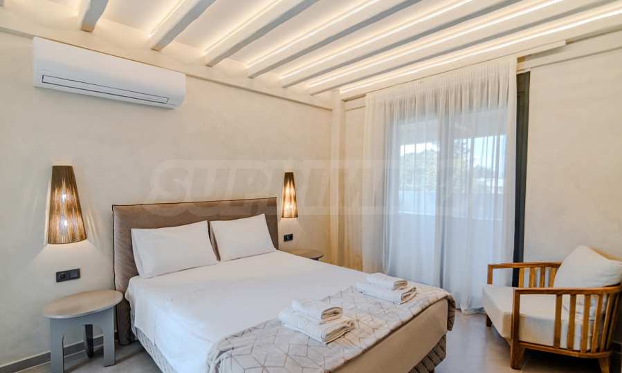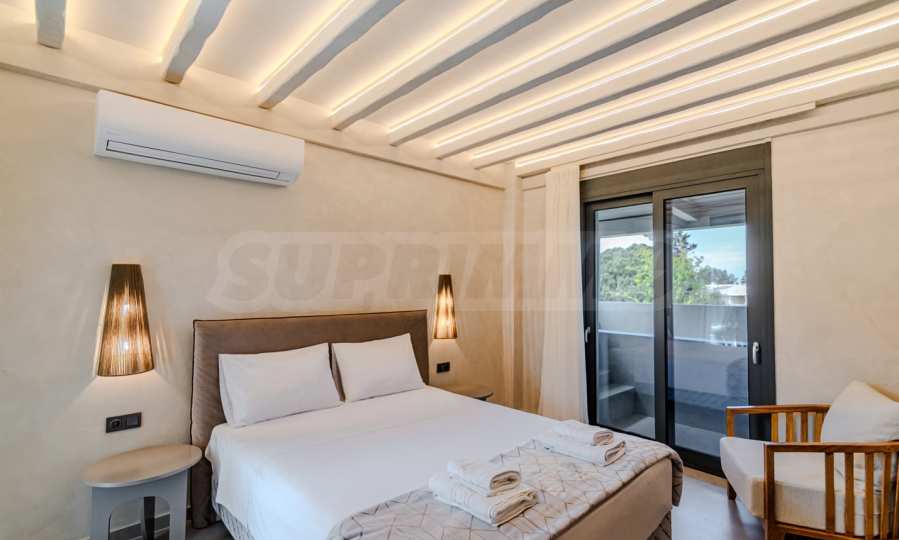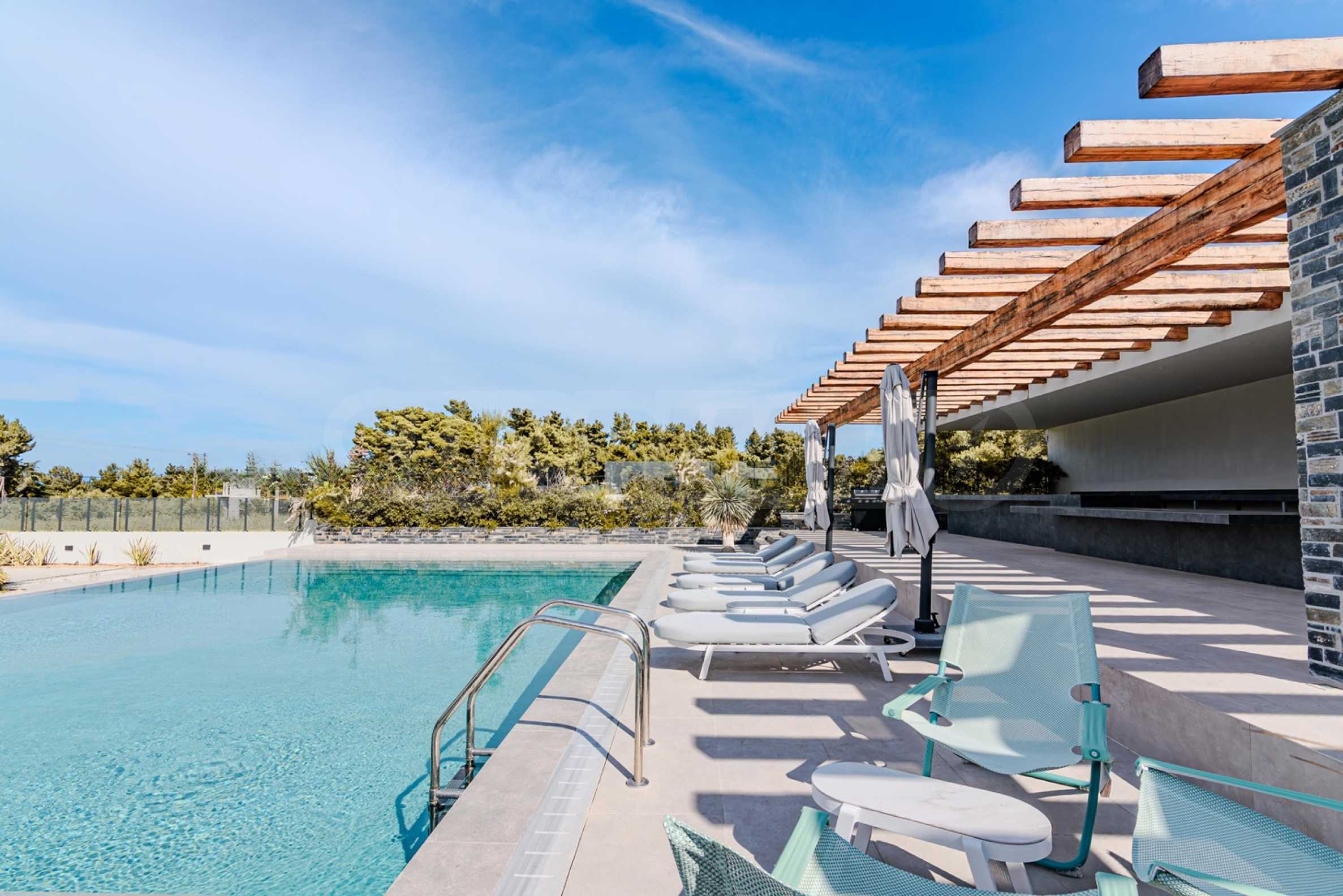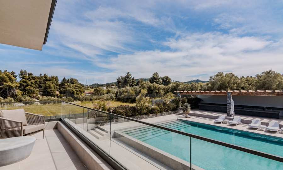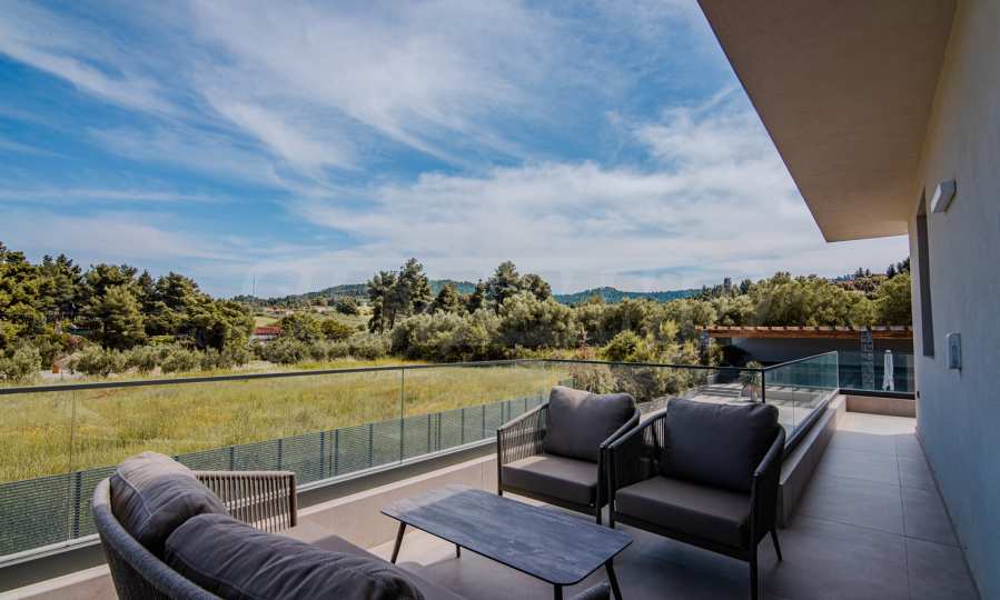 The location is more than perfect: Just 600 meters from the azure sea, 2400 meters from the nearest picturesque village of Pefkohori, 98 km from Macedonia-Thessaloniki Airport, and about 120 km from the city of Thessaloniki, offering the perfect balance between the tranquility of nature and the conveniences of city life.