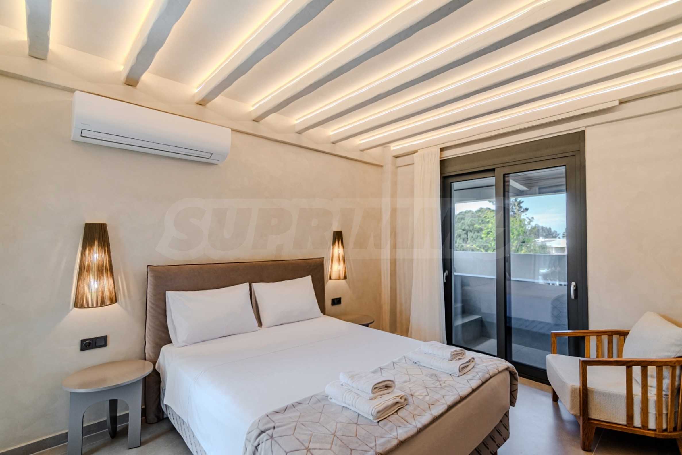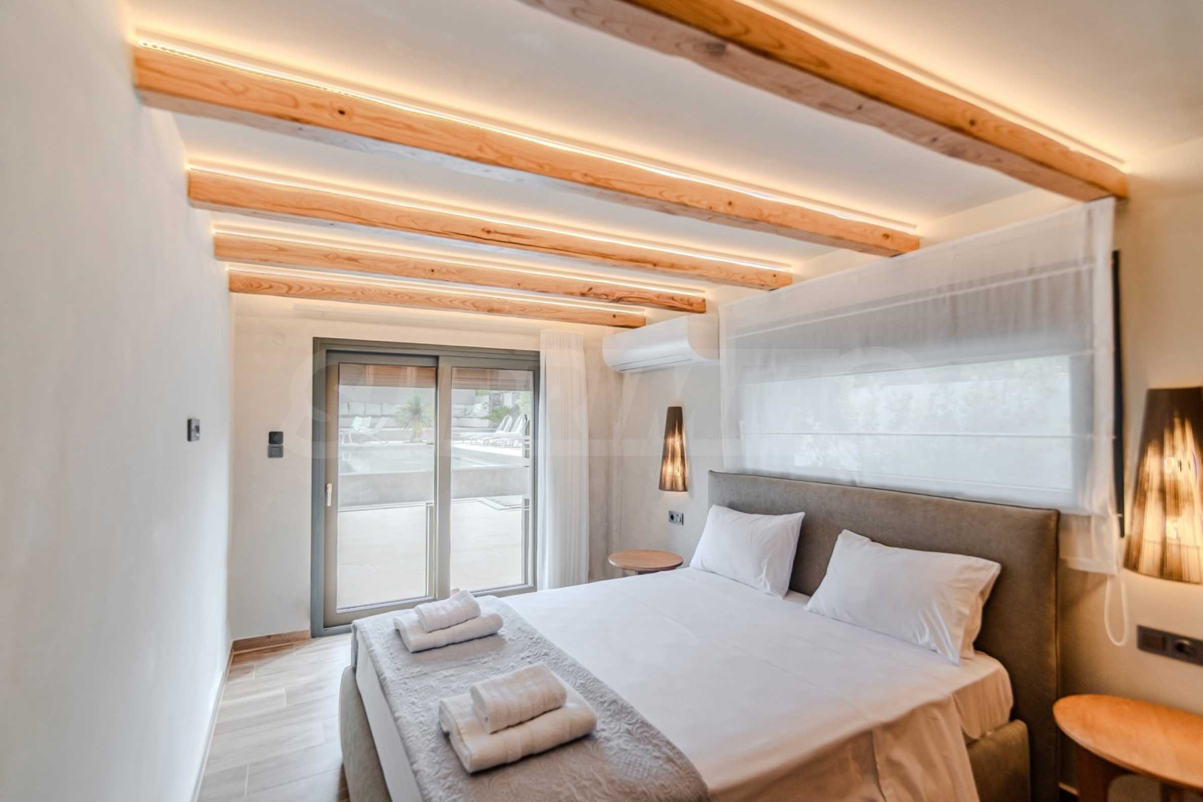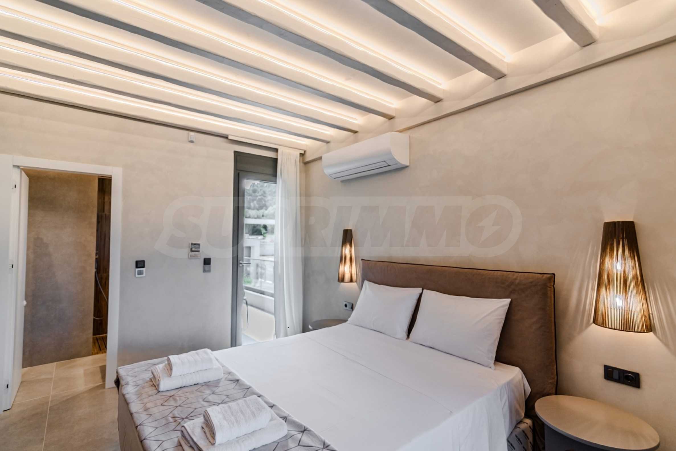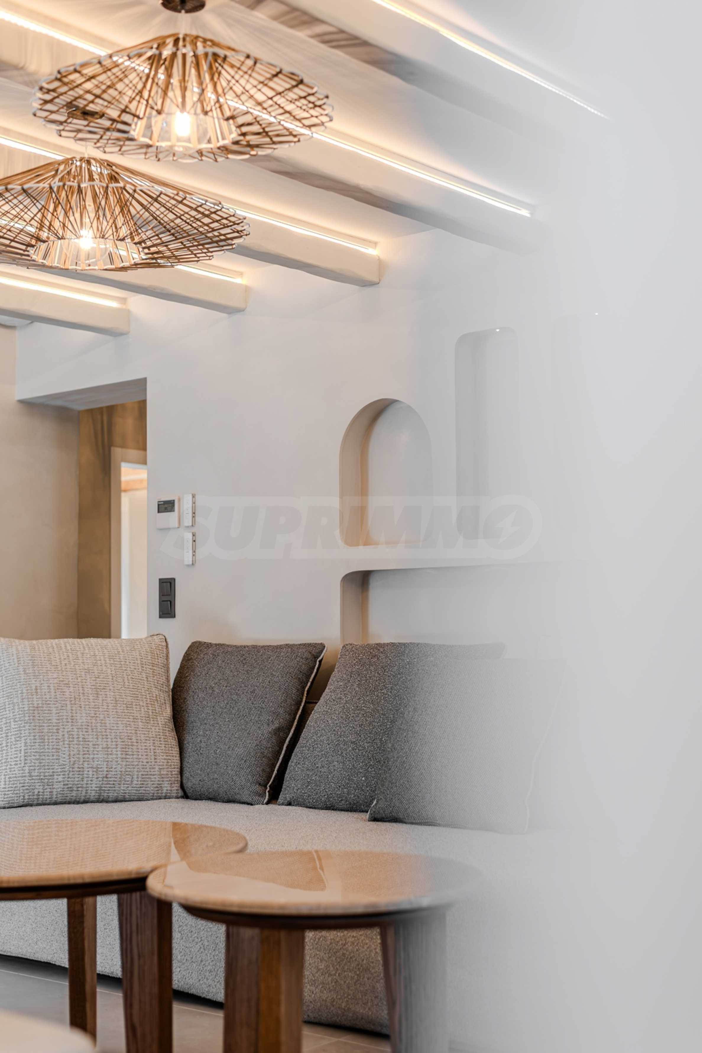The location is more than perfect: Just 600 meters from the azure sea, 2400 meters from the nearest picturesque village of Pefkohori, 98 km from Macedonia-Thessaloniki Airport, and about 120 km from the city of Thessaloniki, offering the perfect balance between the tranquility of nature and the conveniences of city life.