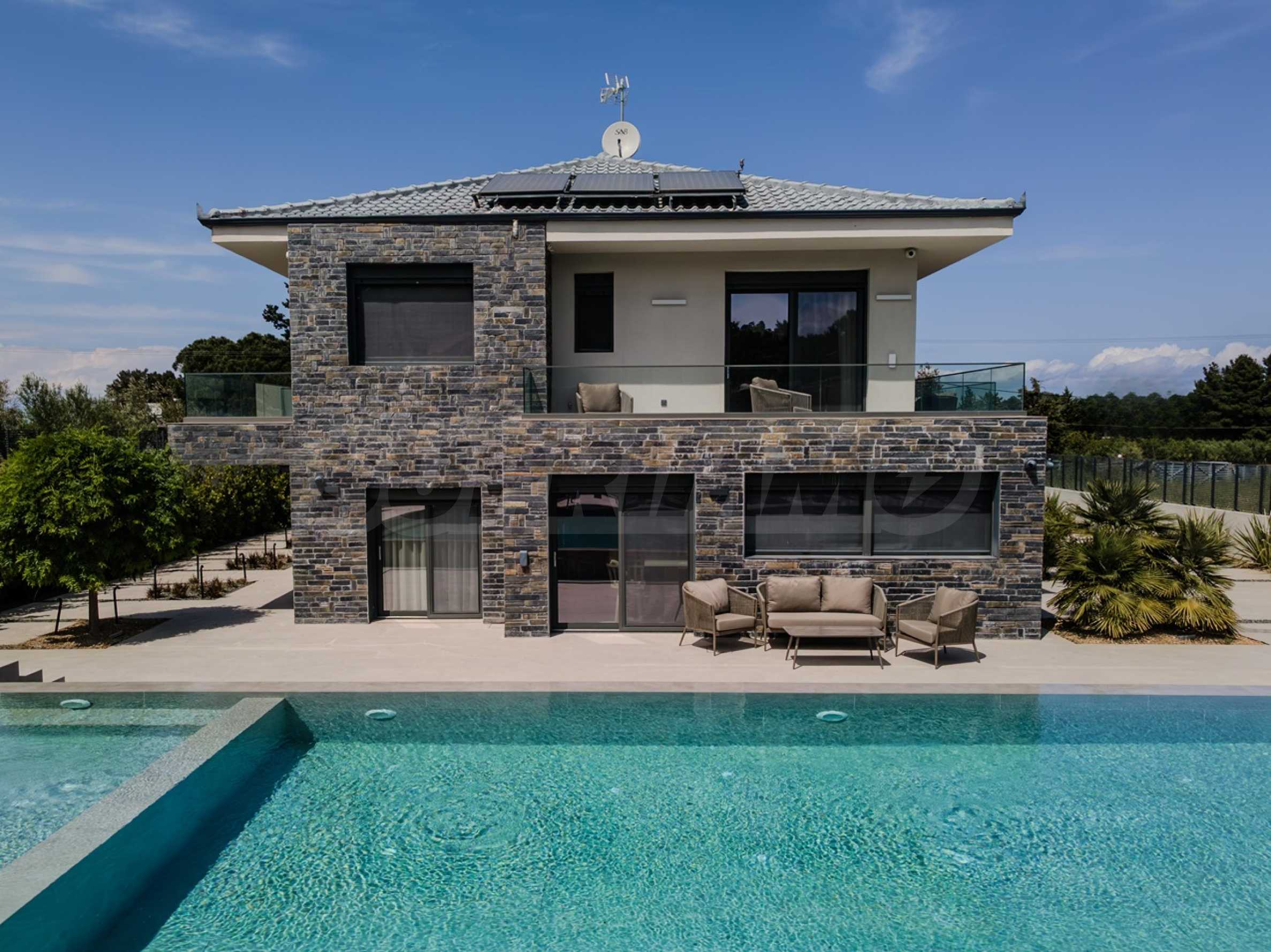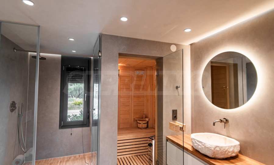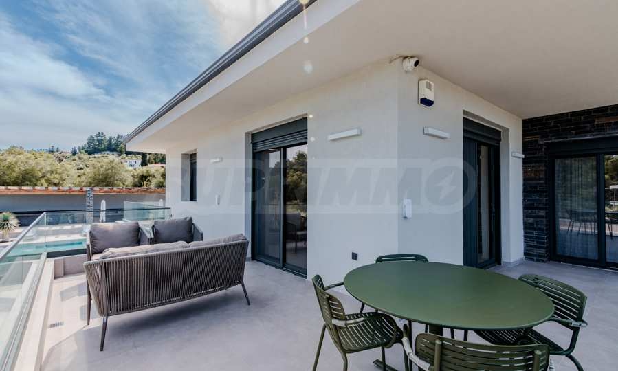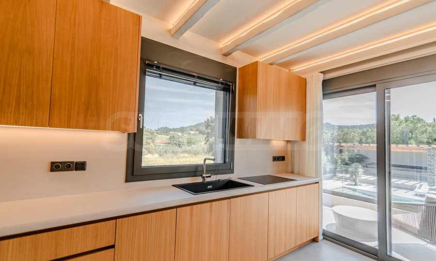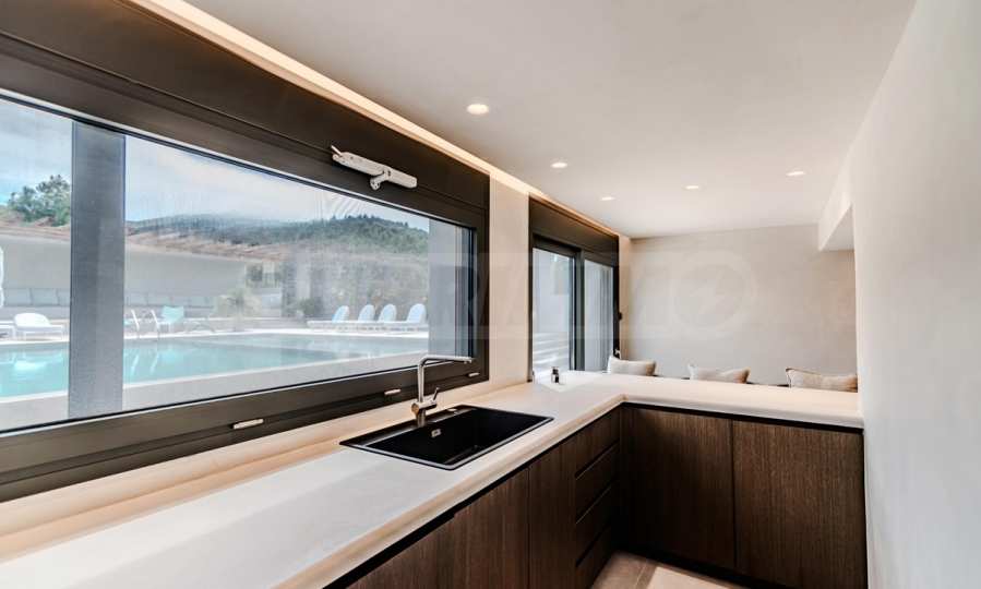 Built in 2023, the villa has an energy class of "D" and a captivating open view of the endless horizon. The stylish aluminum windows and high-quality faience flooring give it a contemporary look, while the armored entrance door and alarm system guarantee your peace of mind and security.