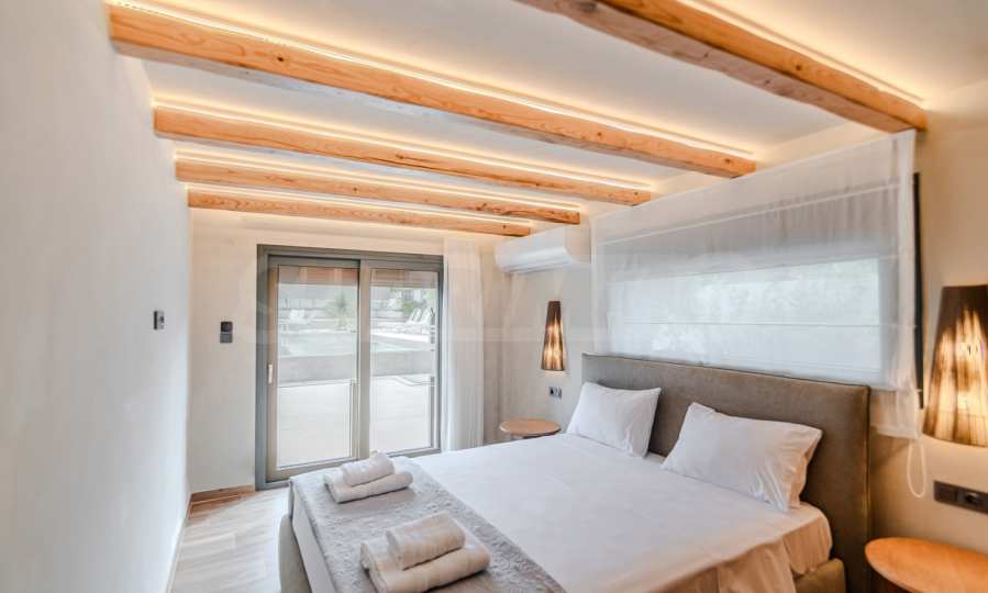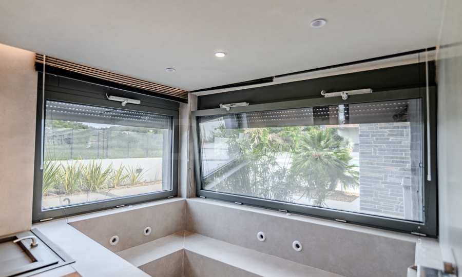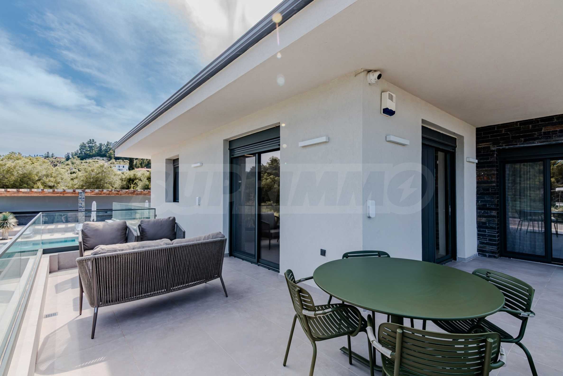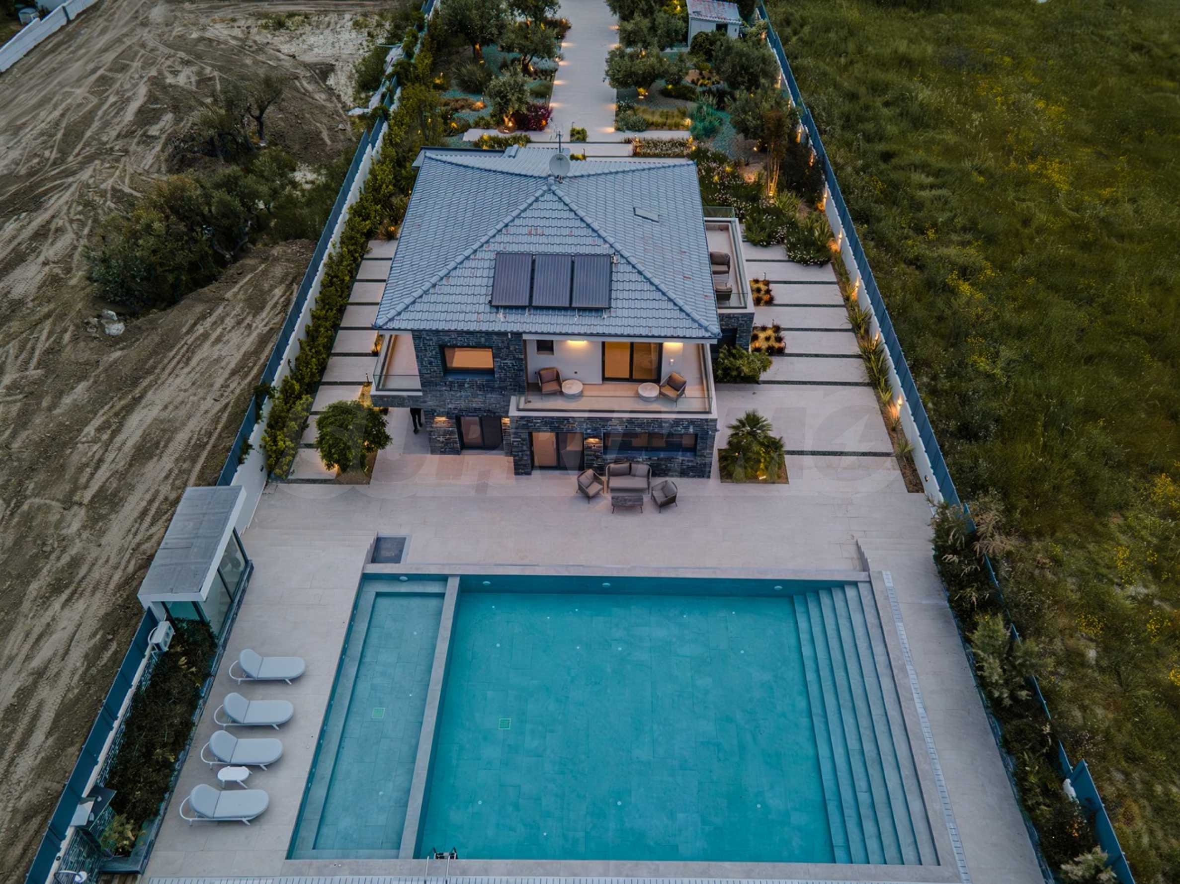 Built in 2023, the villa has an energy class of "D" and a captivating open view of the endless horizon. The stylish aluminum windows and high-quality faience flooring give it a contemporary look, while the armored entrance door and alarm system guarantee your peace of mind and security.