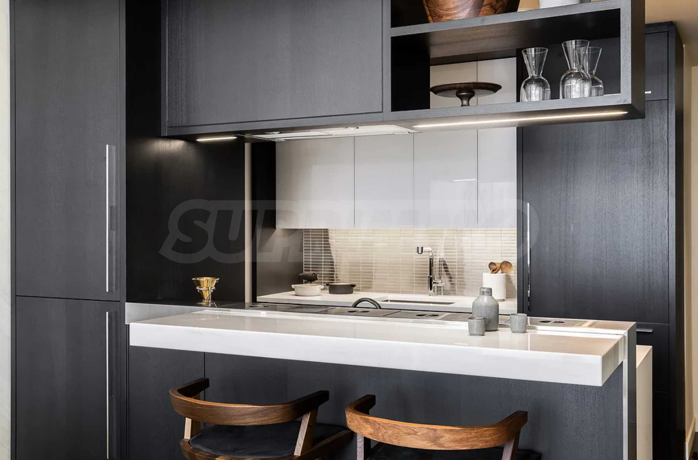 The interiors are by Meyer Davis Studio, known for creating spaces that offer a high quality of life. Residences are available in two distinct finishes – light and dark – each with its own character. Apartments come equipped with custom kitchen cabinetry and premium appliances by Miele.