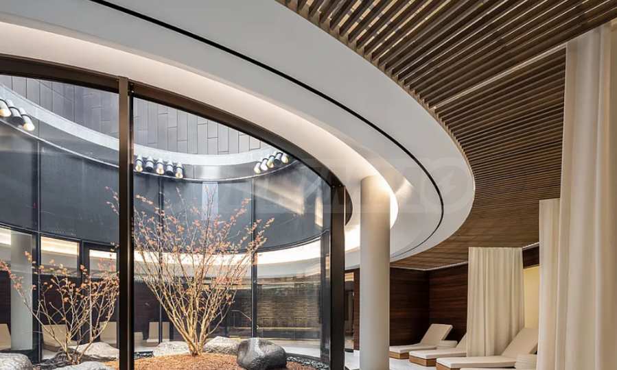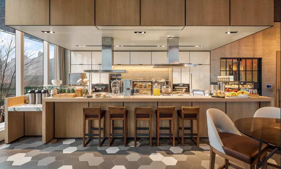 To foster a sense of community, there are also modern co-working spaces, wine lounges, shared lounges, and private event rooms.