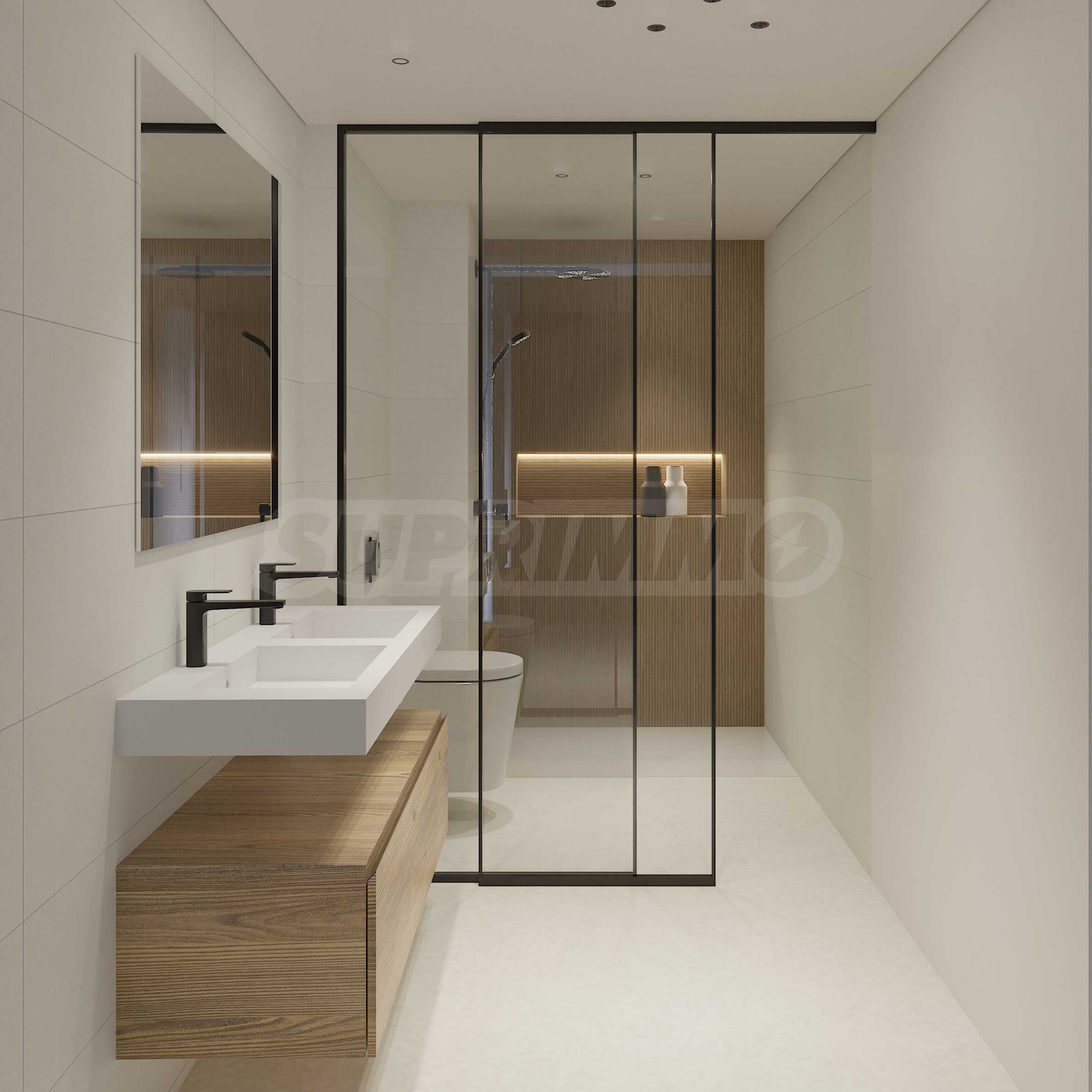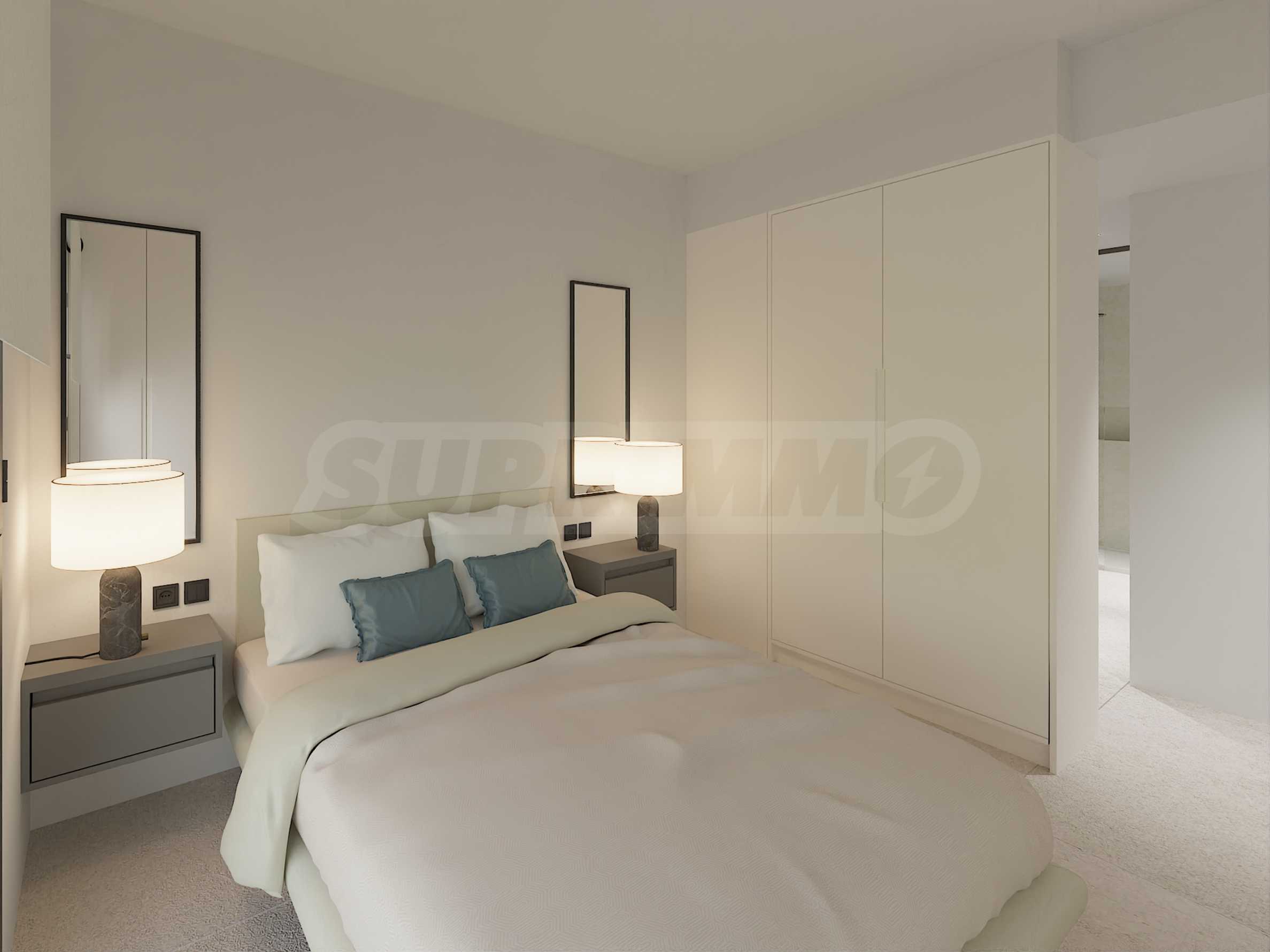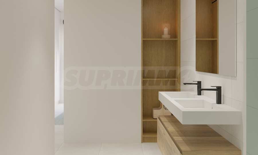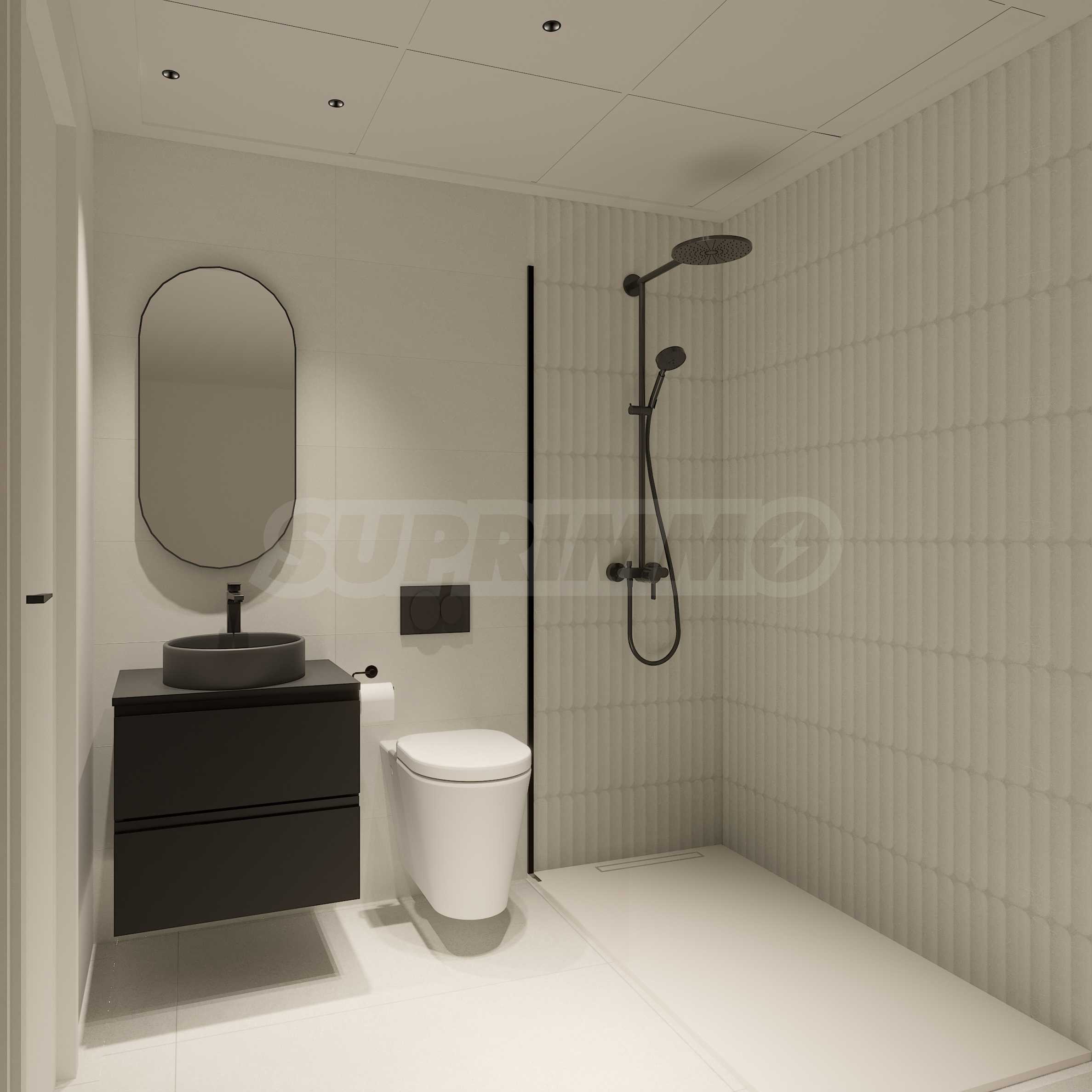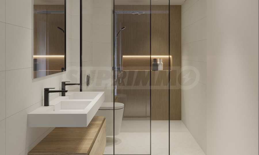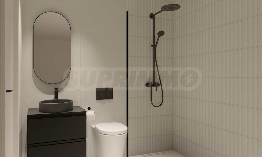The living areas include modern kitchens equipped with high-quality cabinetry and built-in appliances. Each home offers two bedrooms, and every bedroom comes with its own private bathroom, finished in neutral tones that allow for versatile interior styling. Whether you choose a unit with a garden or a rooftop terrace, you’ll have the opportunity to create your own outdoor haven, complete with stylish and comfortable furnishings.
