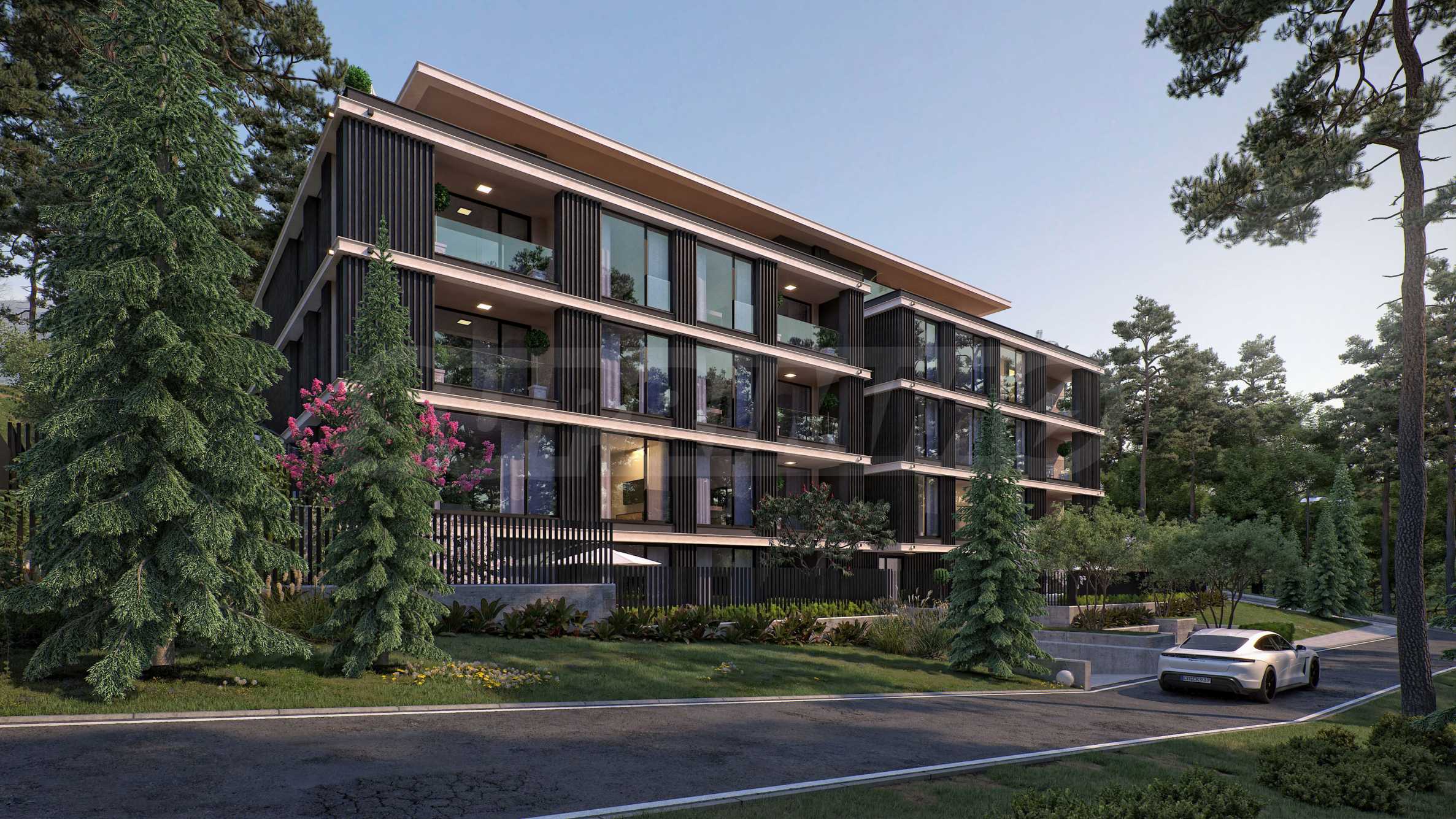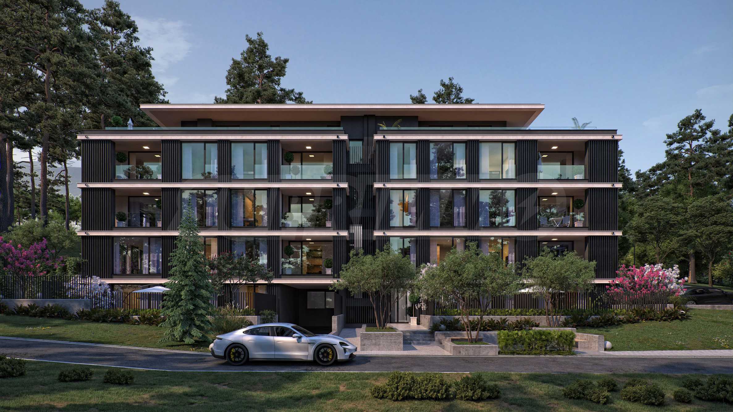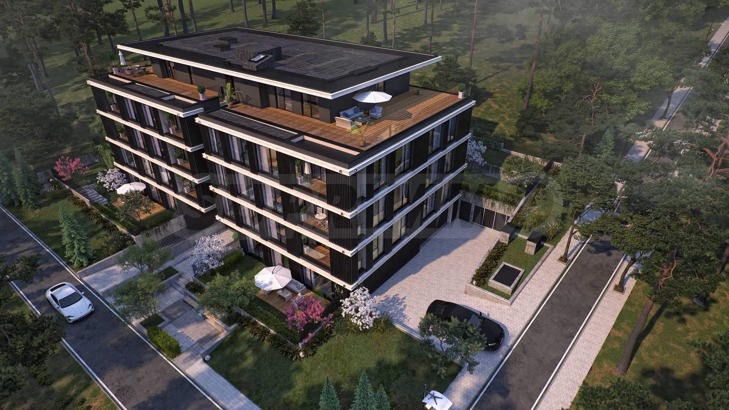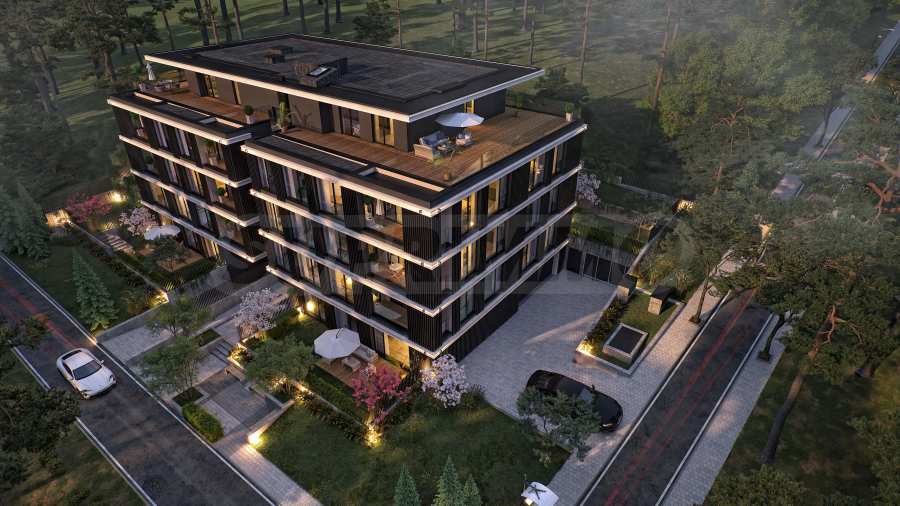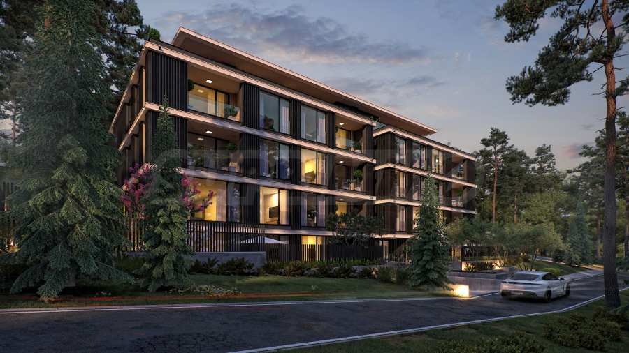 The apartments are three-bedroom properties and one four-bedroom apartment. They are offered in a degree of completion according to BDS. The apartments offer views of the lake or a picturesque pine forest behind the building, as the location is entirely surrounded by greenery and an already built-up environment with habitable houses - without the risk of future construction nearby.