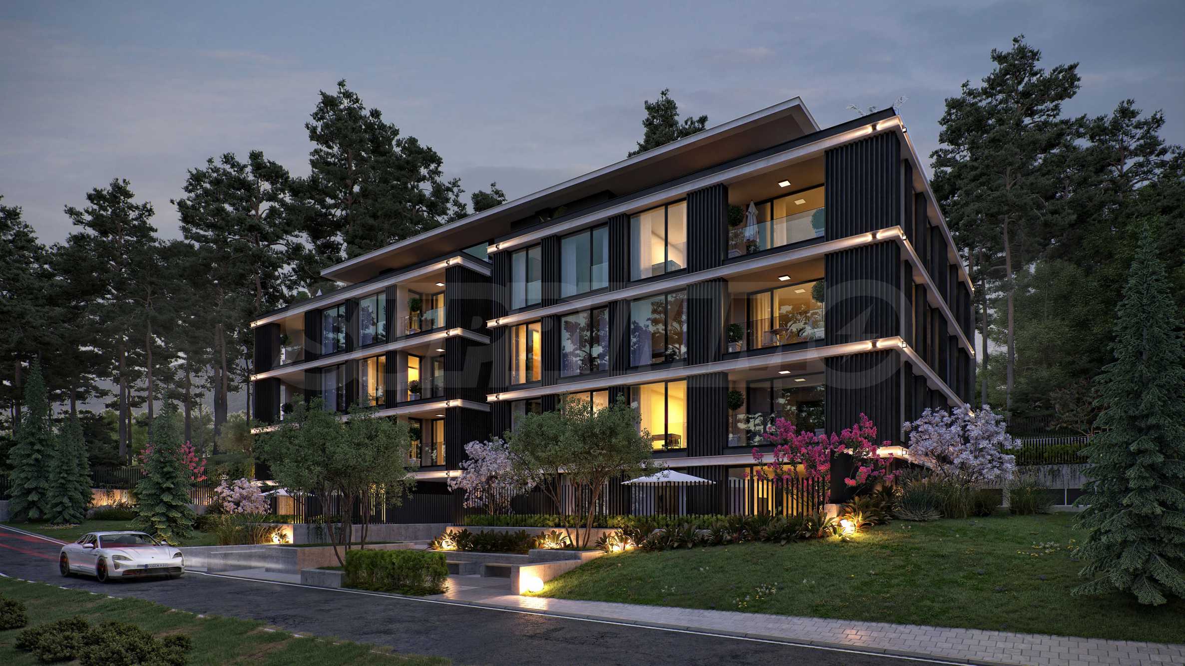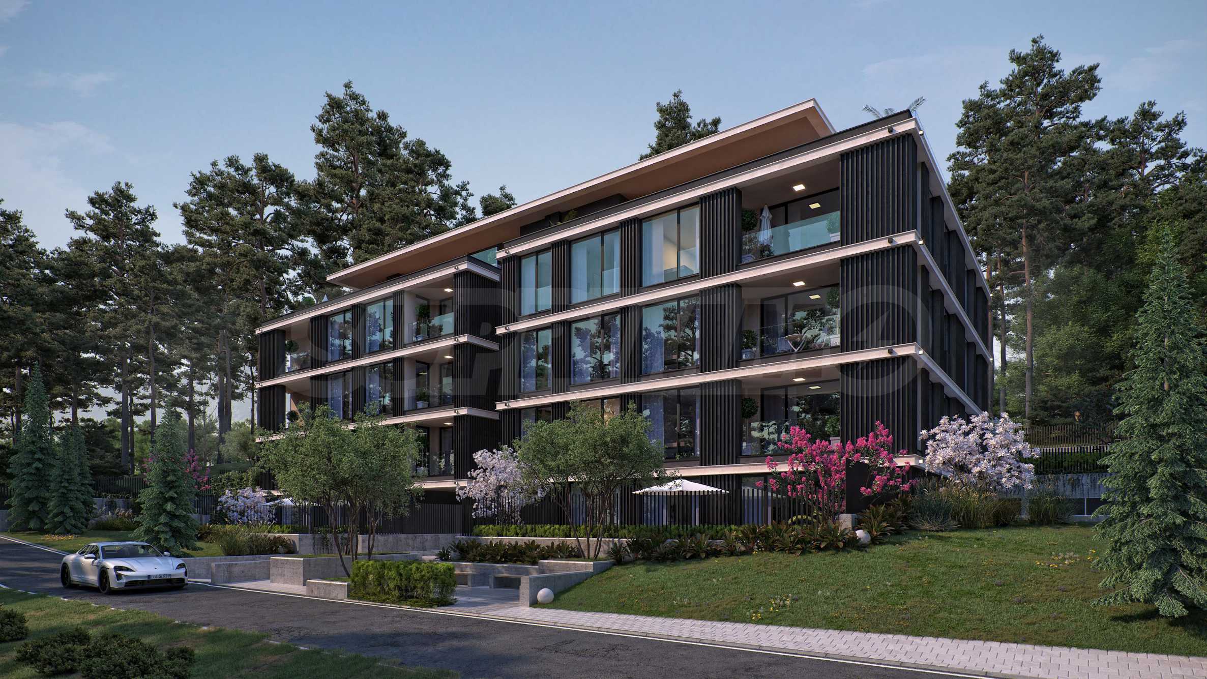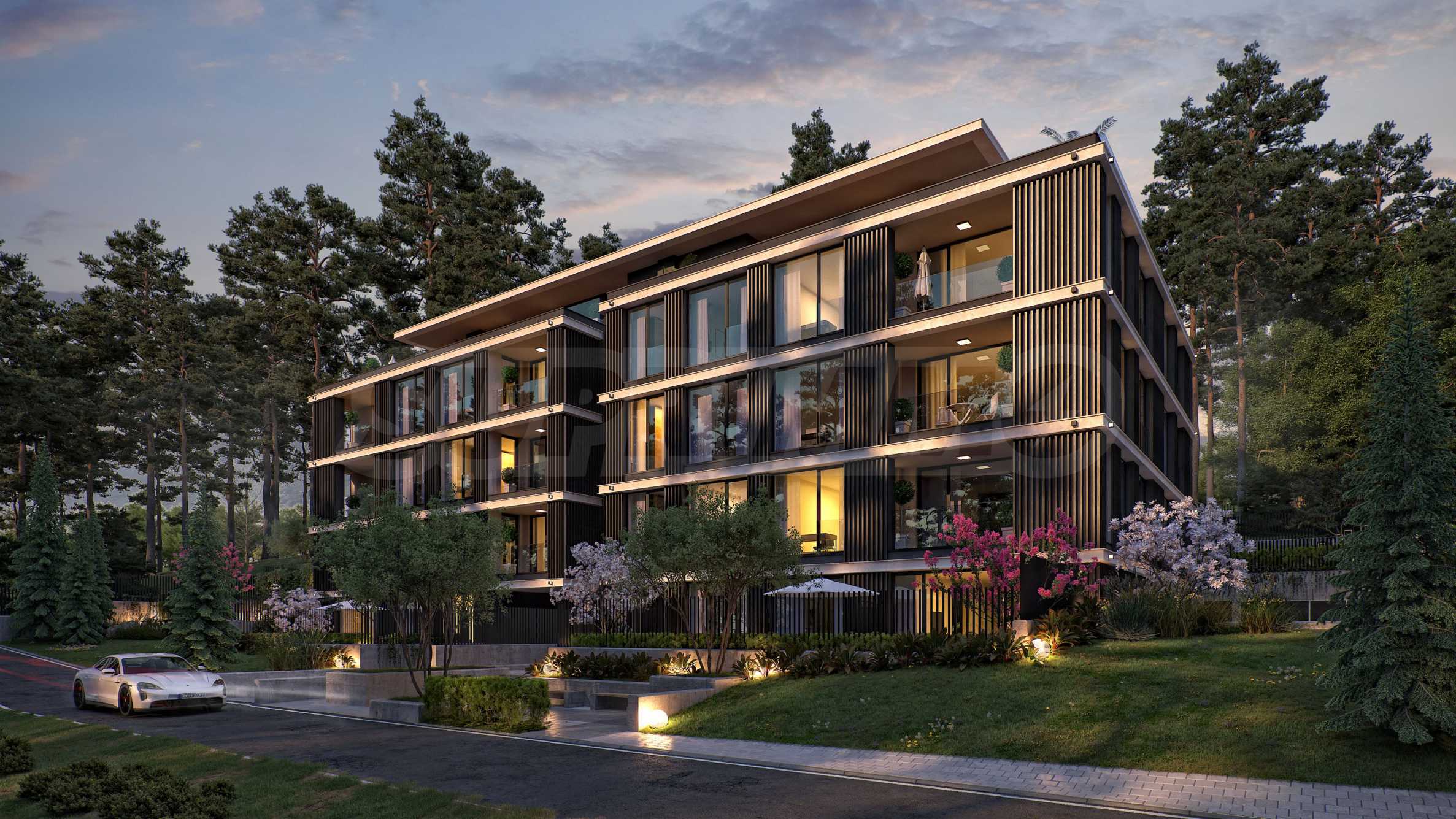 The apartments are three-bedroom properties and one four-bedroom apartment. They are offered in a degree of completion according to BDS. The apartments offer views of the lake or a picturesque pine forest behind the building, as the location is entirely surrounded by greenery and an already built-up environment with habitable houses - without the risk of future construction nearby.