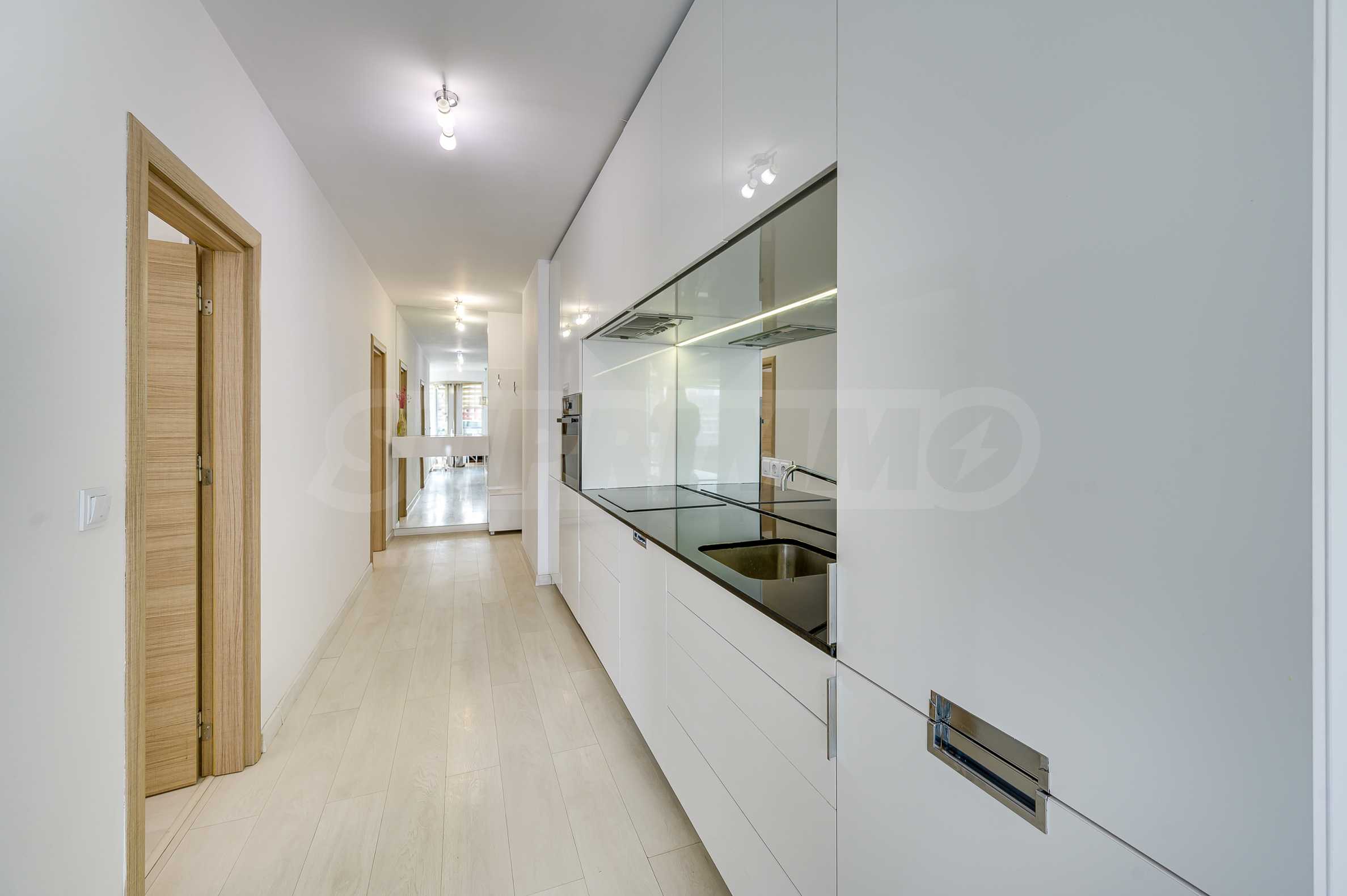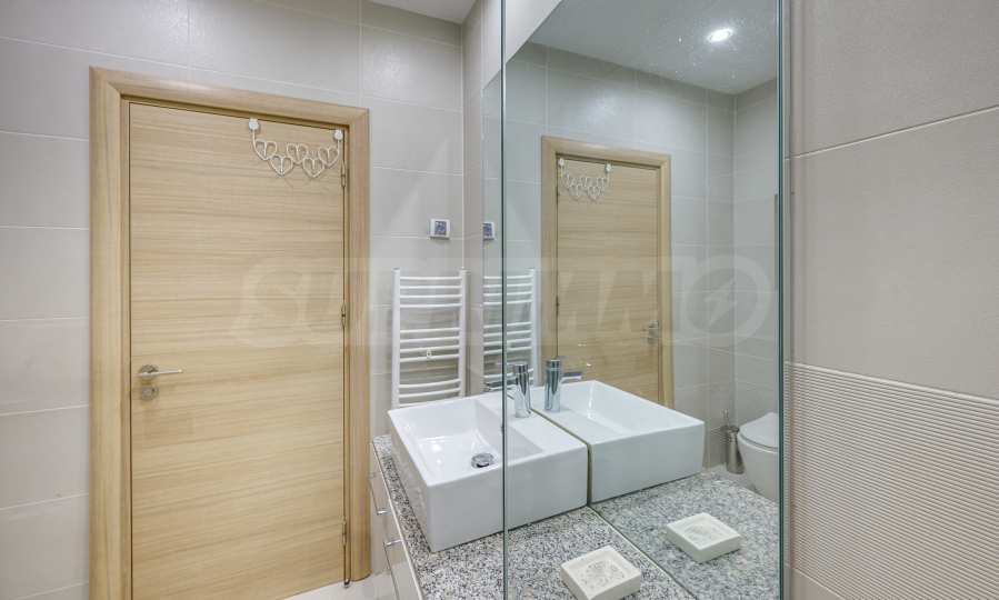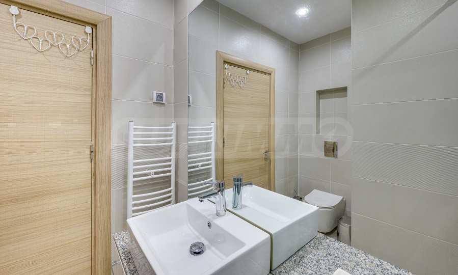 The property is heated by central heating (CHP), and in the living room there is also air conditioning for additional comfort. The layout includes a living room, combined with a kitchen and dining room, a balcony, two separate bedrooms, a bathroom with toilet and a hallway. The bedrooms are furnished with beds and mattresses measuring 160/200 cm. In the living room there is a high-quality Italian leather sofa from the Natuzzi brand.
