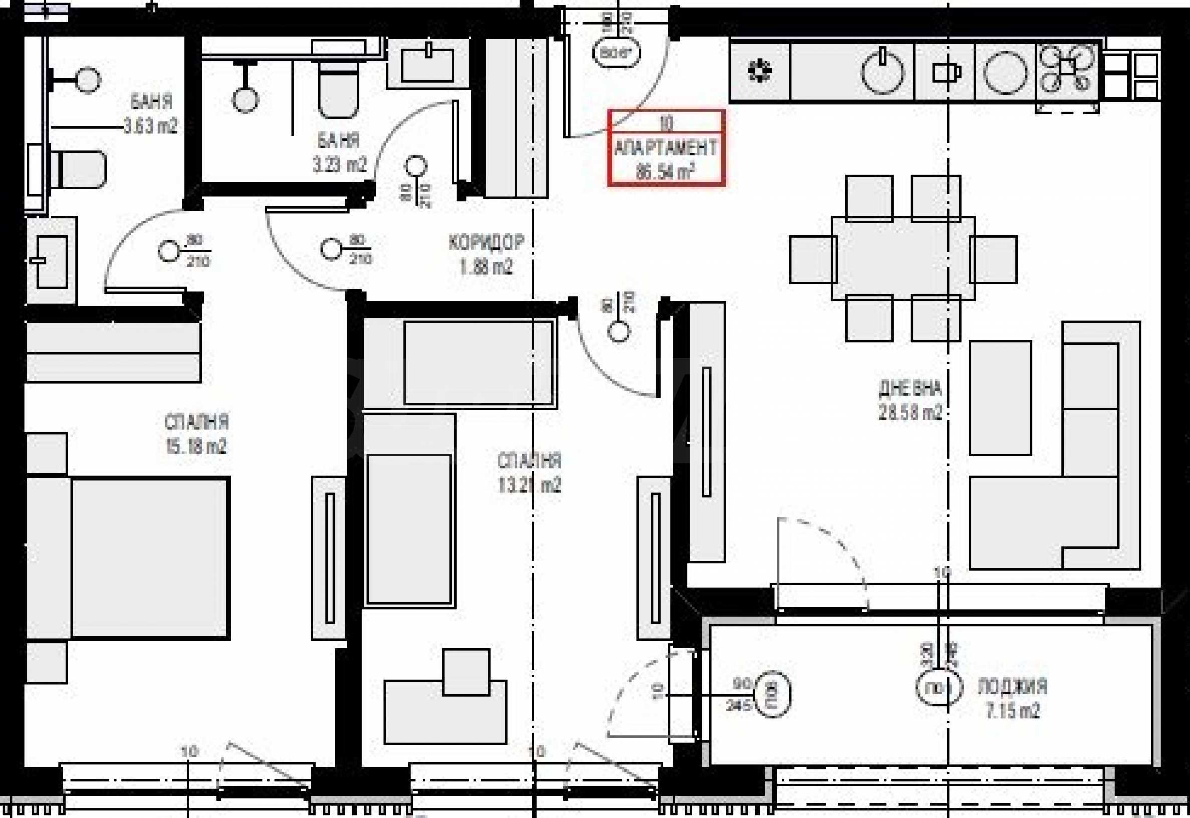 We present a comfortable two-bedroom apartment for sale in a luxurious new building, located amidst nature in the "Pancharevo" district.