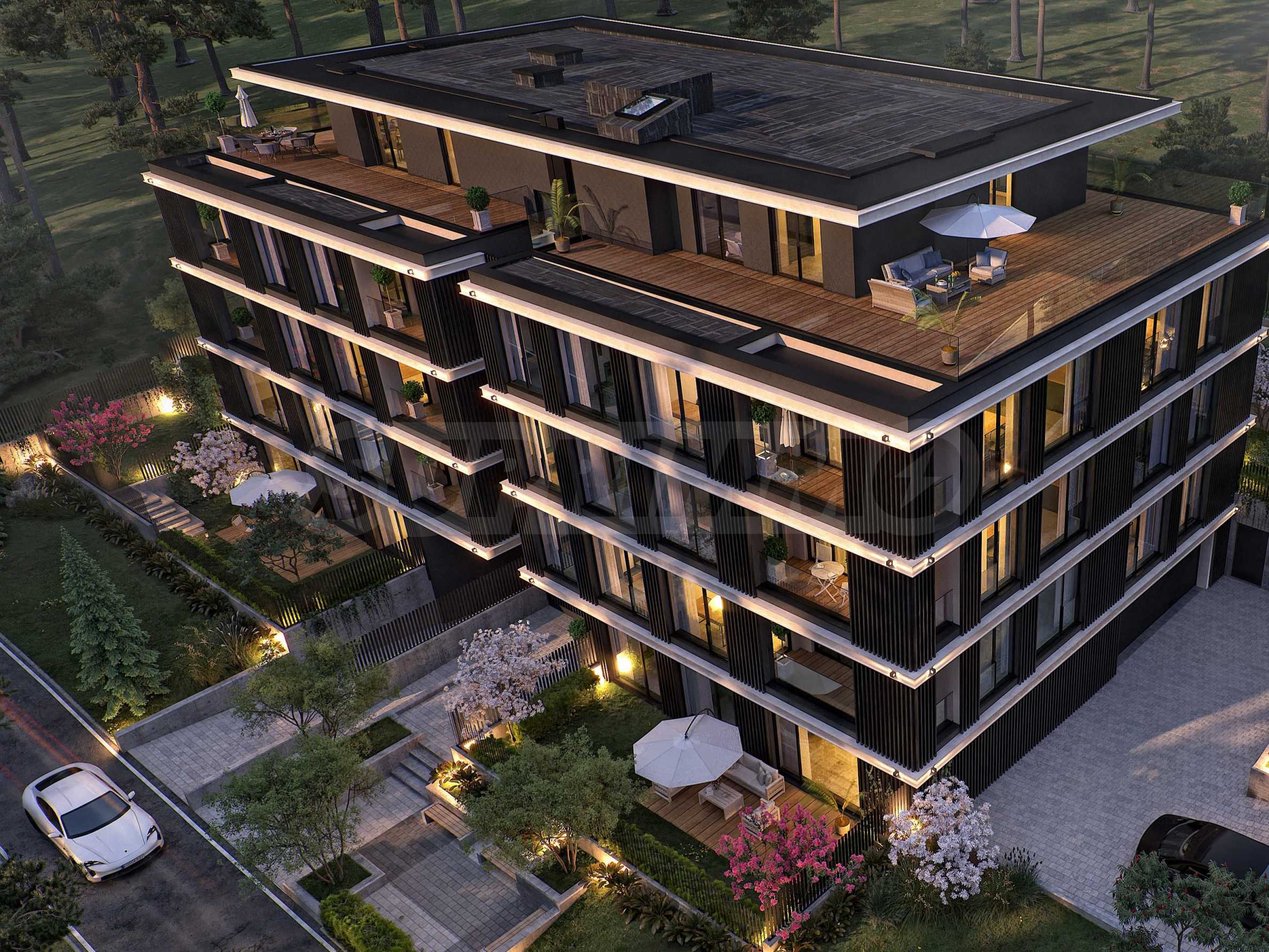 The apartments are three-bedroom properties and one four-bedroom apartment. They are offered in a degree of completion according to BDS. The apartments offer views of the lake or a picturesque pine forest behind the building, as the location is entirely surrounded by greenery and an already built-up environment with habitable houses - without the risk of future construction nearby.