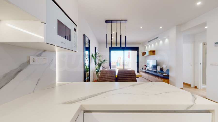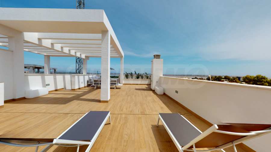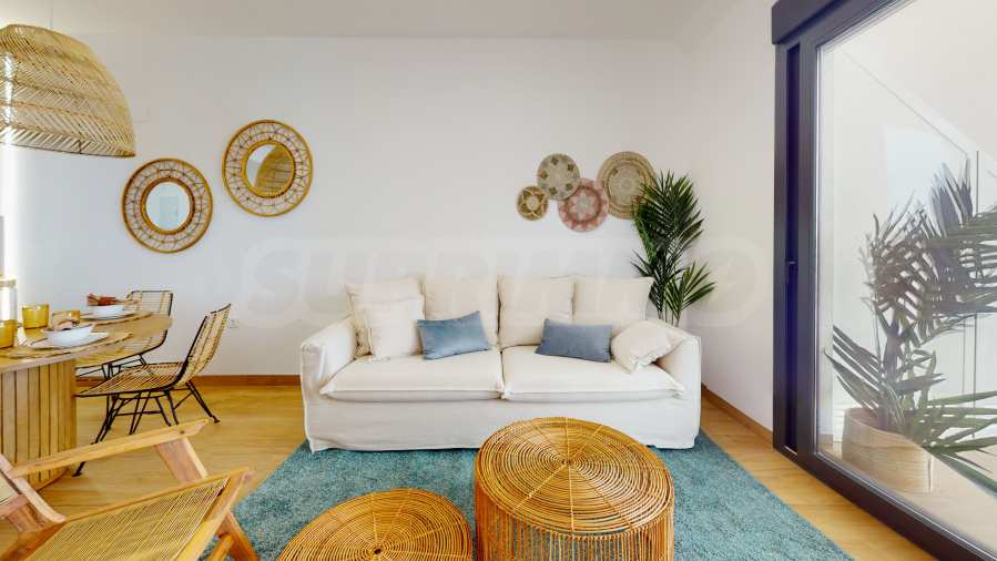 Ground-floor homes feature spacious verandas, while upper-floor properties benefit from private rooftop terraces – perfect for sunbathing or enjoying a cool evening breeze. Each residence includes an open-plan living room with kitchen and dining area, two bedrooms, and two bathrooms.