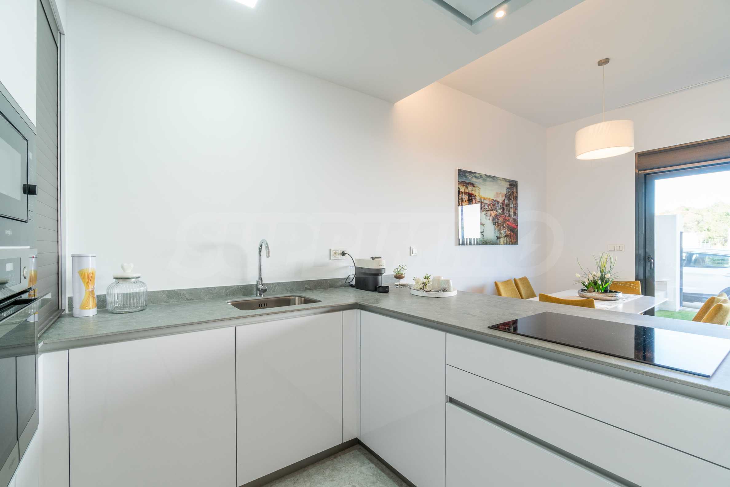All homes are delivered turnkey, complete with entrance and interior doors, flooring, lighting, shutters, fully fitted bathrooms with underfloor heating, and furnished kitchens. Kitchen areas are equipped with electrical appliances, while air conditioning units are also installed for heating and cooling.
