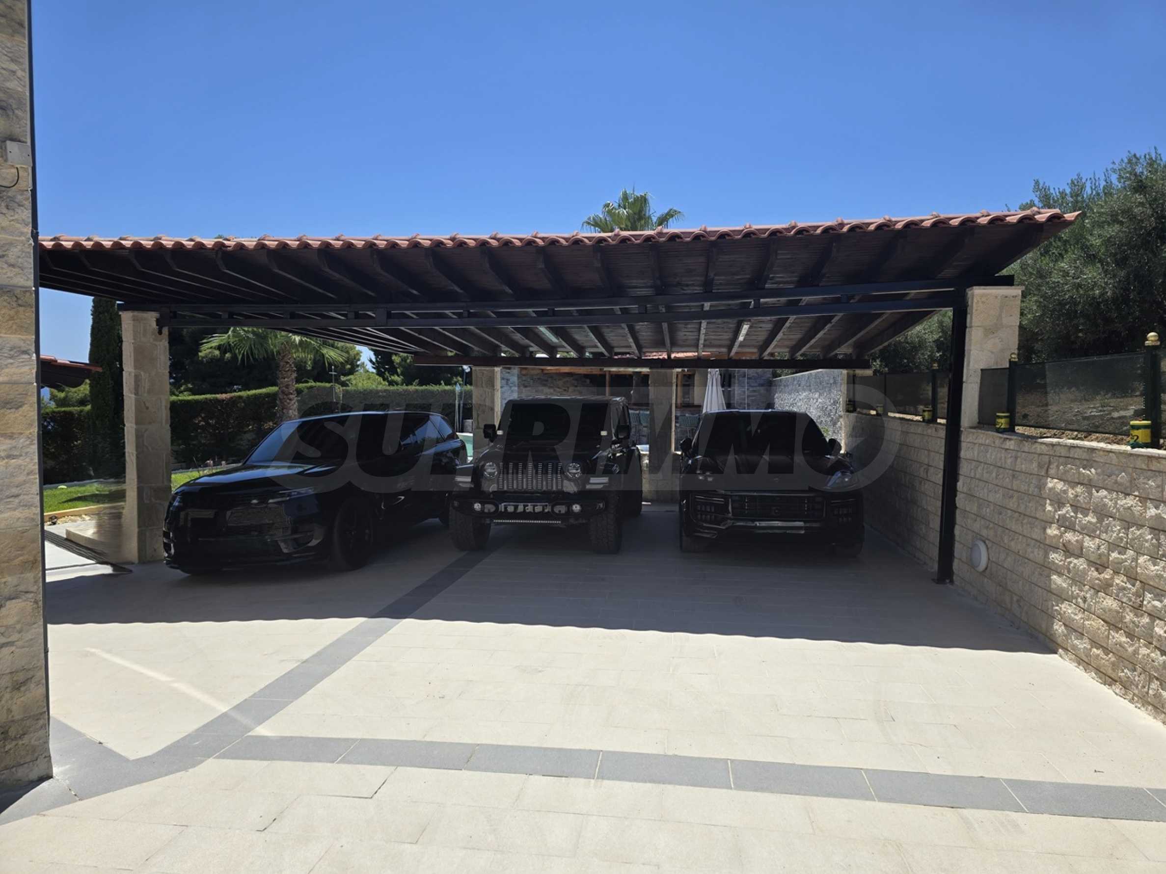 Private parking with gate and pergola.
