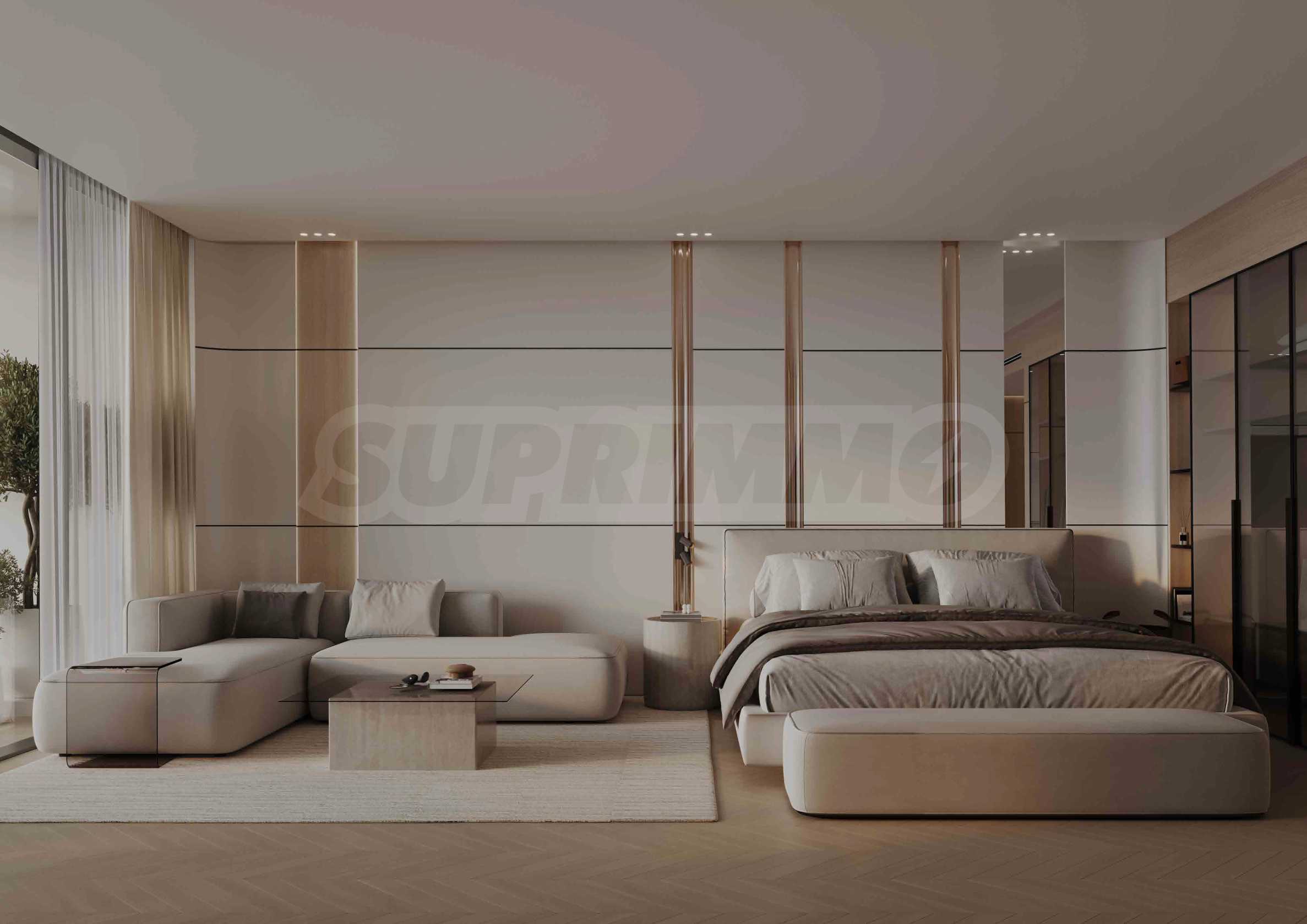 The interior spaces are characterized by luxurious furnitures and personalized details - each element is designed to provide residents with peace of mind, away from the hustle and bustle of the city. The interior combines Calacatta marble, travertine, wood veneers and elegant porcelain finishes. Open plans and spacious windows welcome sunlight, which fills the interior with life and warmth. Innovation seamlessly merges with comfort, creating a home tailored to your aspirations.