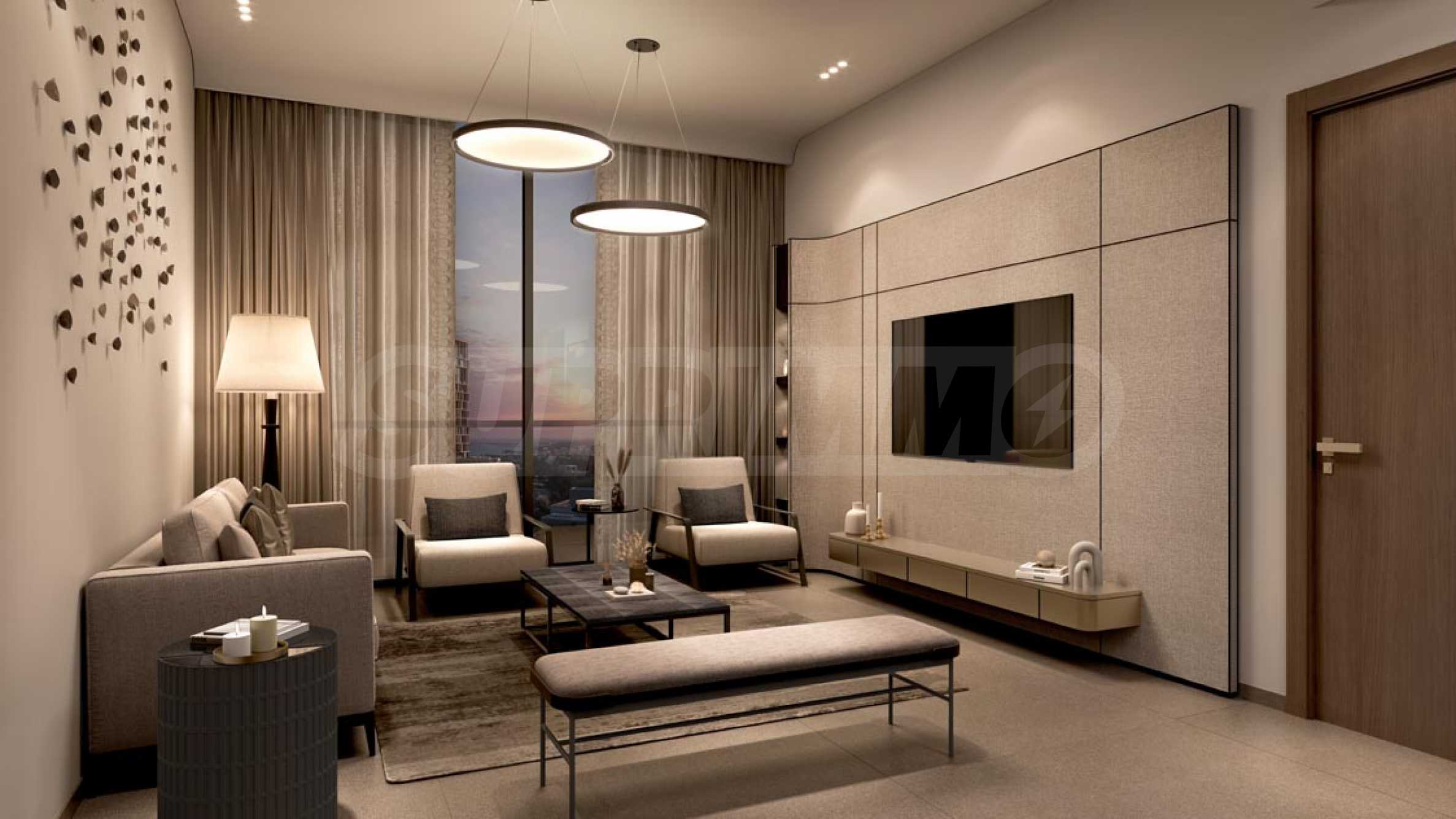The development features a limited collection of studios, one-bedroom, and two-bedroom apartments distinguished by high ceilings and beautiful views of the park and landscaped gardens. The homes are delivered fully finished, with flooring, entrance and interior doors, fitted kitchens, and equipped bathrooms. Every detail has been carefully considered, while the use of premium construction materials ensures long-lasting quality. Thoughtful touches such as dedicated storage areas and en-suite bathrooms for every bedroom make living at Marquis One comfortable and enjoyable.
