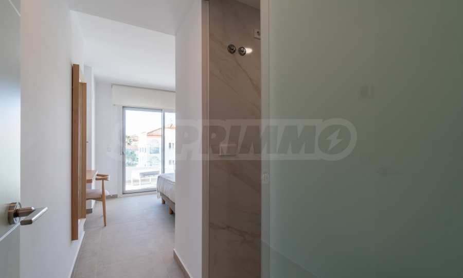 The façades combine Mediterranean style with modern architectural elements in perfect harmony. Finished with water-repellent one-coat mortar and tiling, they are enhanced with insulation that guarantees excellent thermal and acoustic performance. Terrace railings are executed in an elegant mix of laminated safety glass and stainless-steel brackets.