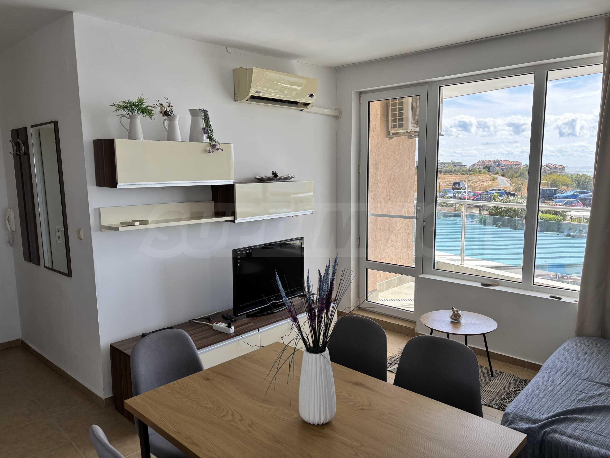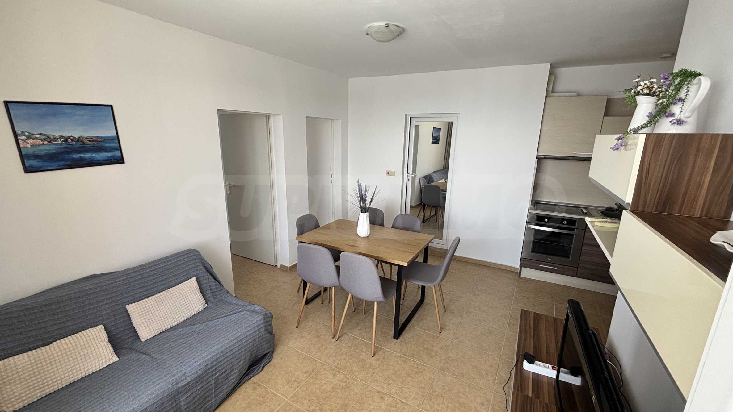We present for sale a spacious two-bedroom apartment of 97.19 m2. with a sunny terrace, in a modern complex with amenities and a top location on the seashore, between the resorts of Ravda and Aheloy. The property is suitable for both personal use and for renting out during the summer season. The apartment is located on the second floor and is offered fully furnished. The apartment consists of: living room, 2 bedrooms, bathroom with toilet and a spacious terrace.
