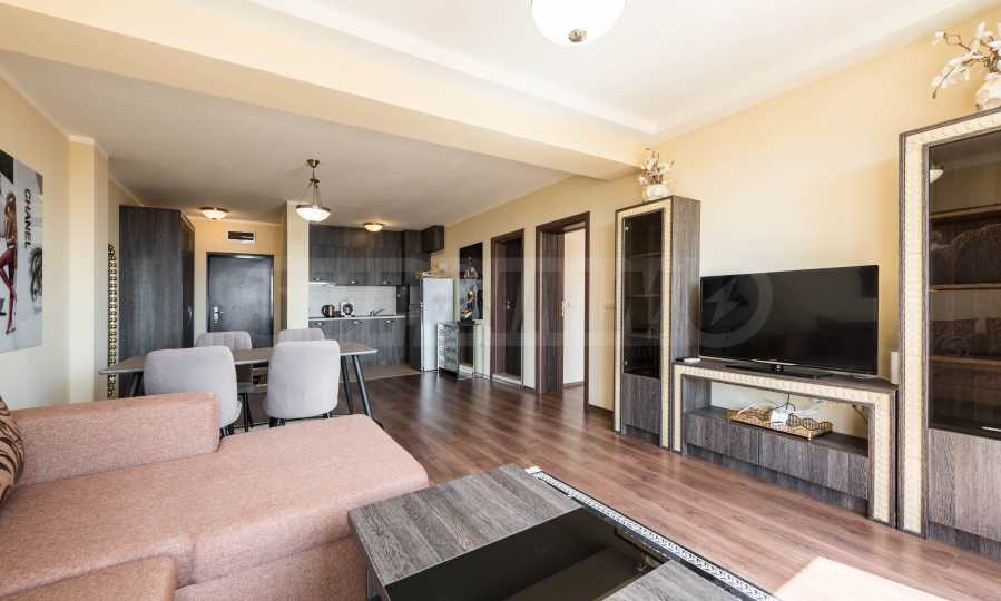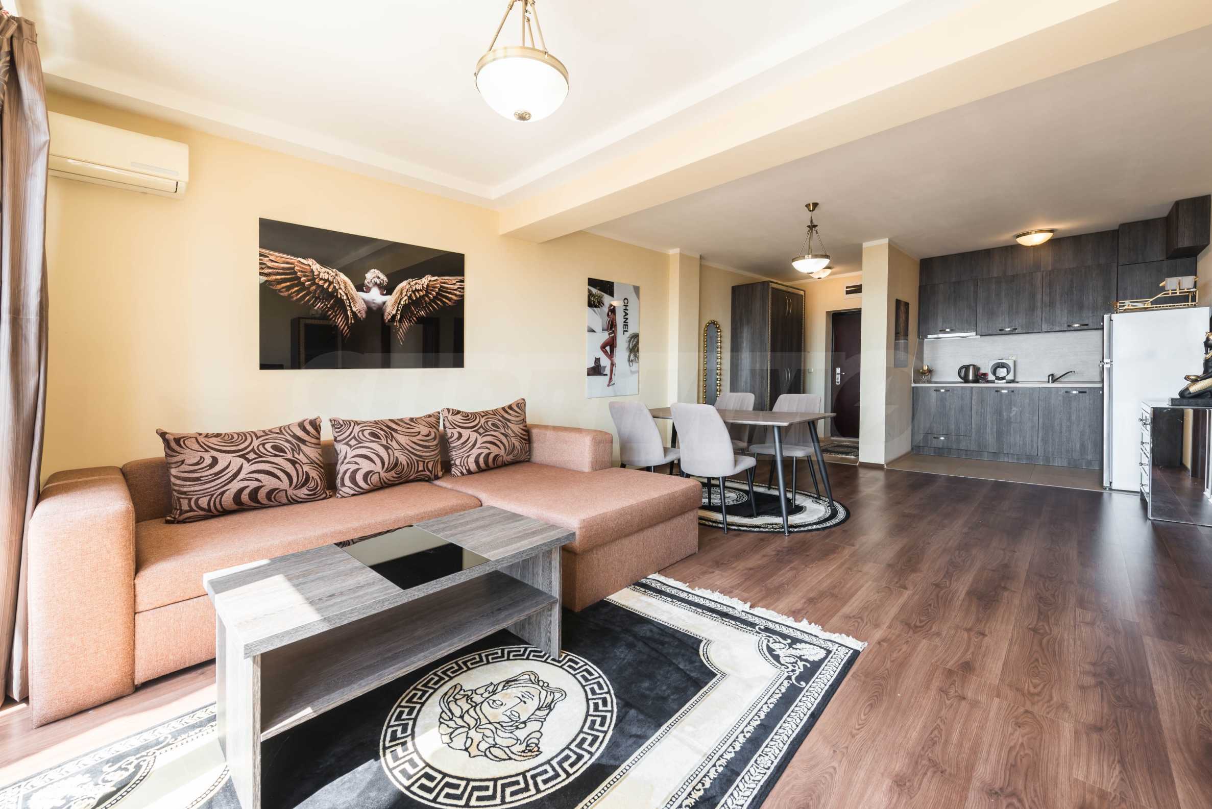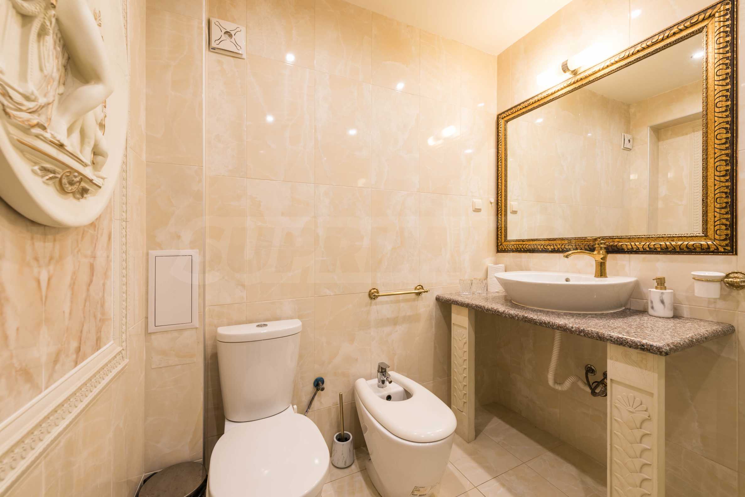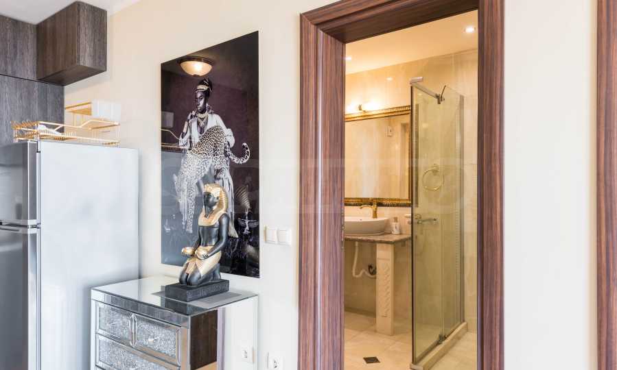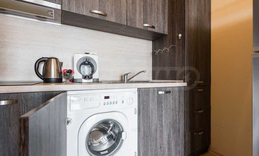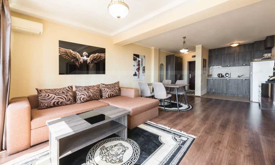The apartment is furnished with attention to detail and a high standard of quality and comfort. The furniture is functional and stylish. The bathroom is equipped with a shower cabin, washbasin, toilet and bidet. The kitchen and the living room are fully equipped. Each room is air-conditioned.