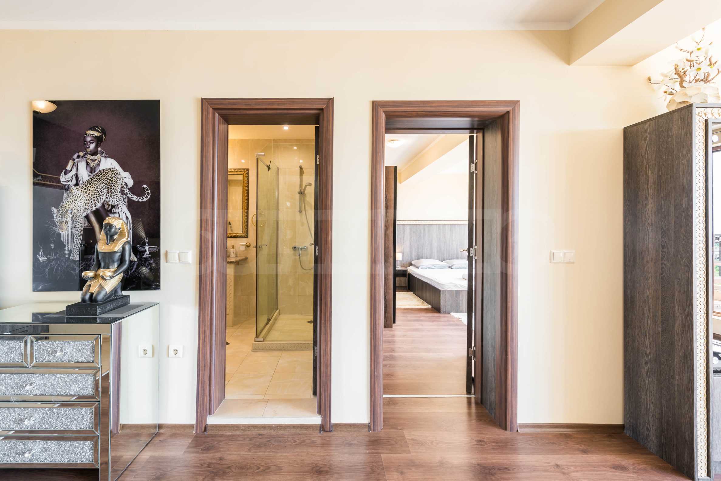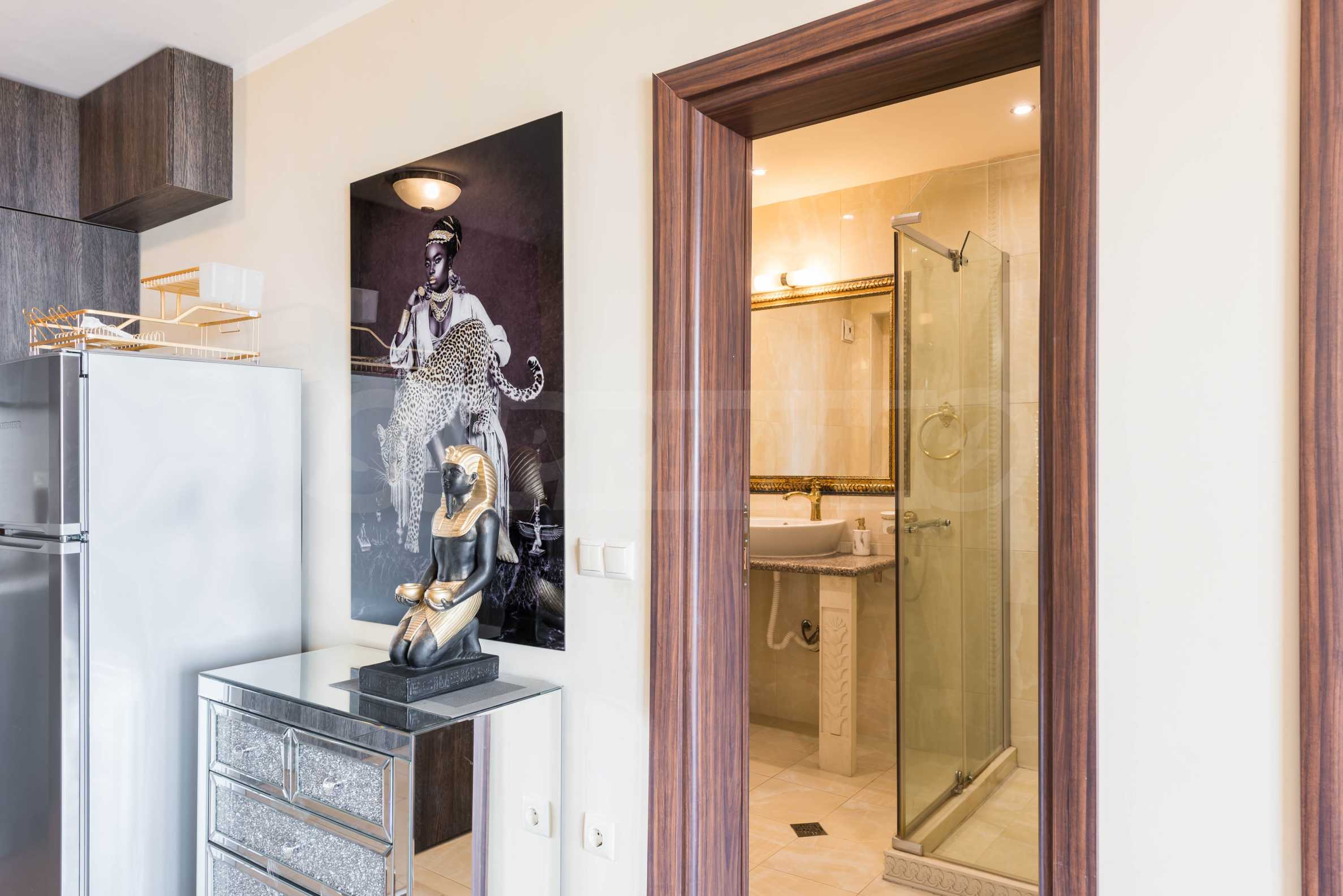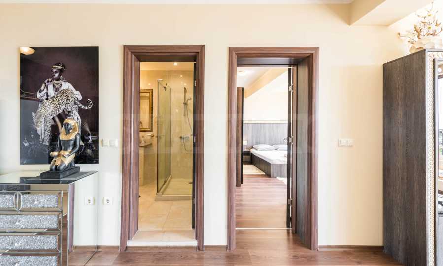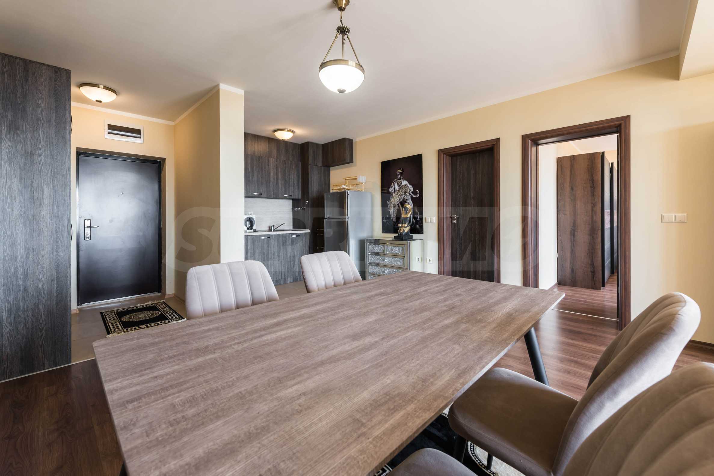 The apartment is furnished with attention to detail and a high standard of quality and comfort. The furniture is functional and stylish. The bathroom is equipped with a shower cabin, washbasin, toilet and bidet. The kitchen and the living room are fully equipped. Each room is air-conditioned.