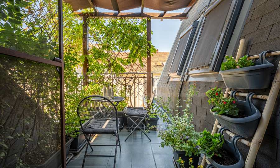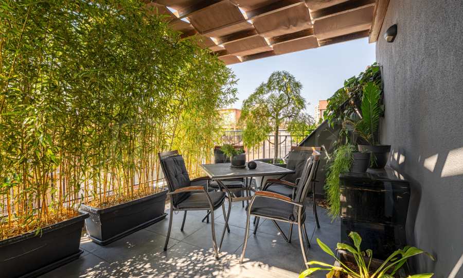 • a terrace with overgrown bamboo and a table with the atmosphere of a small Tuscan corner;