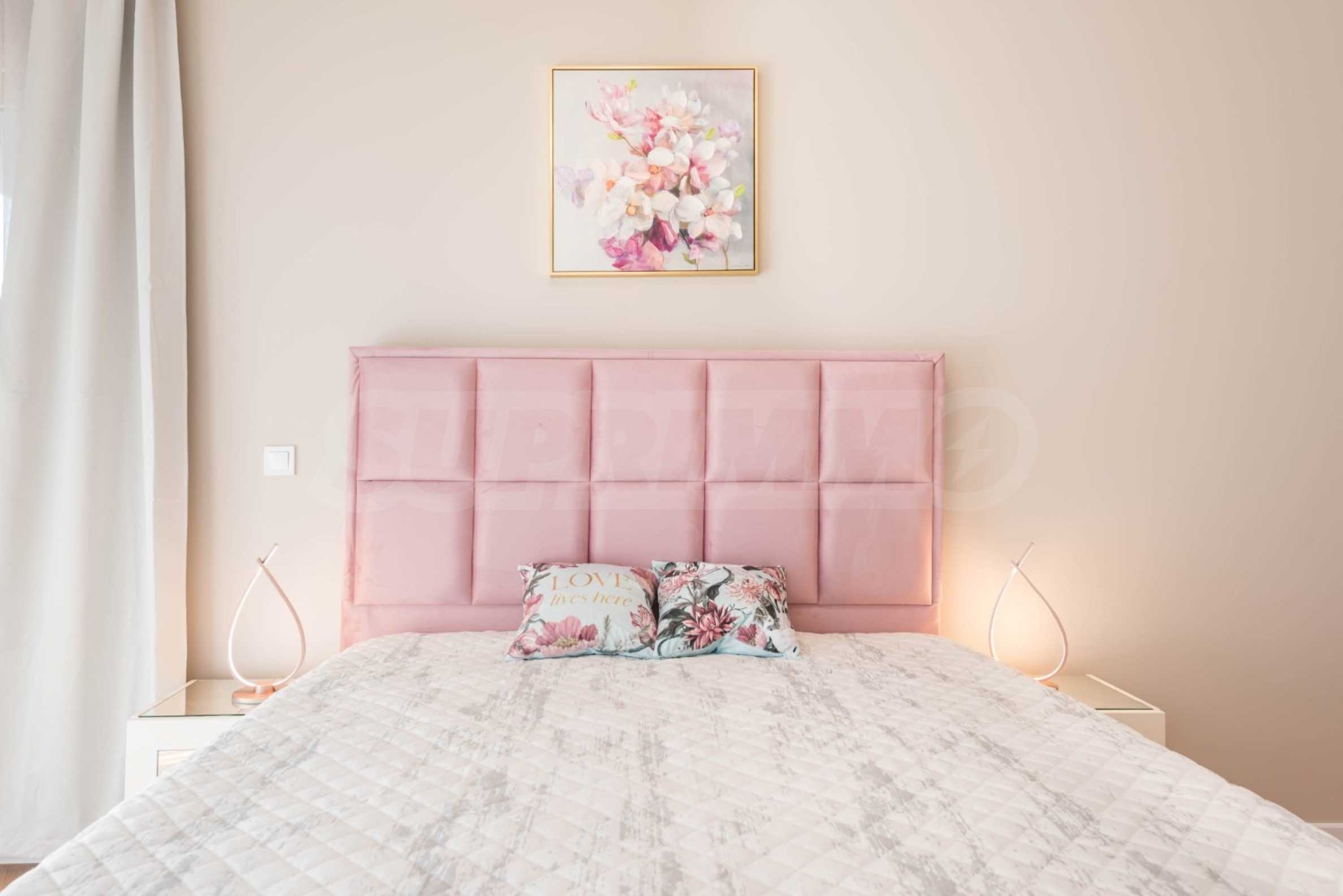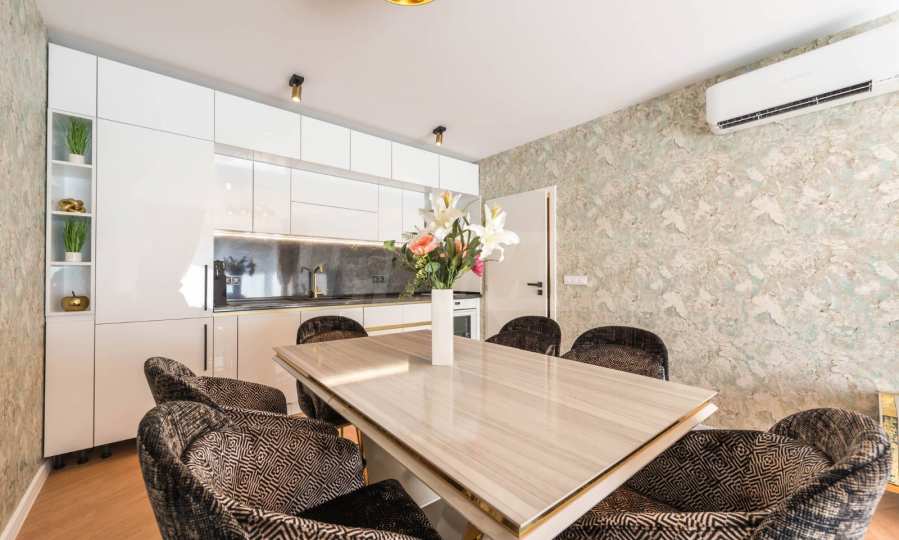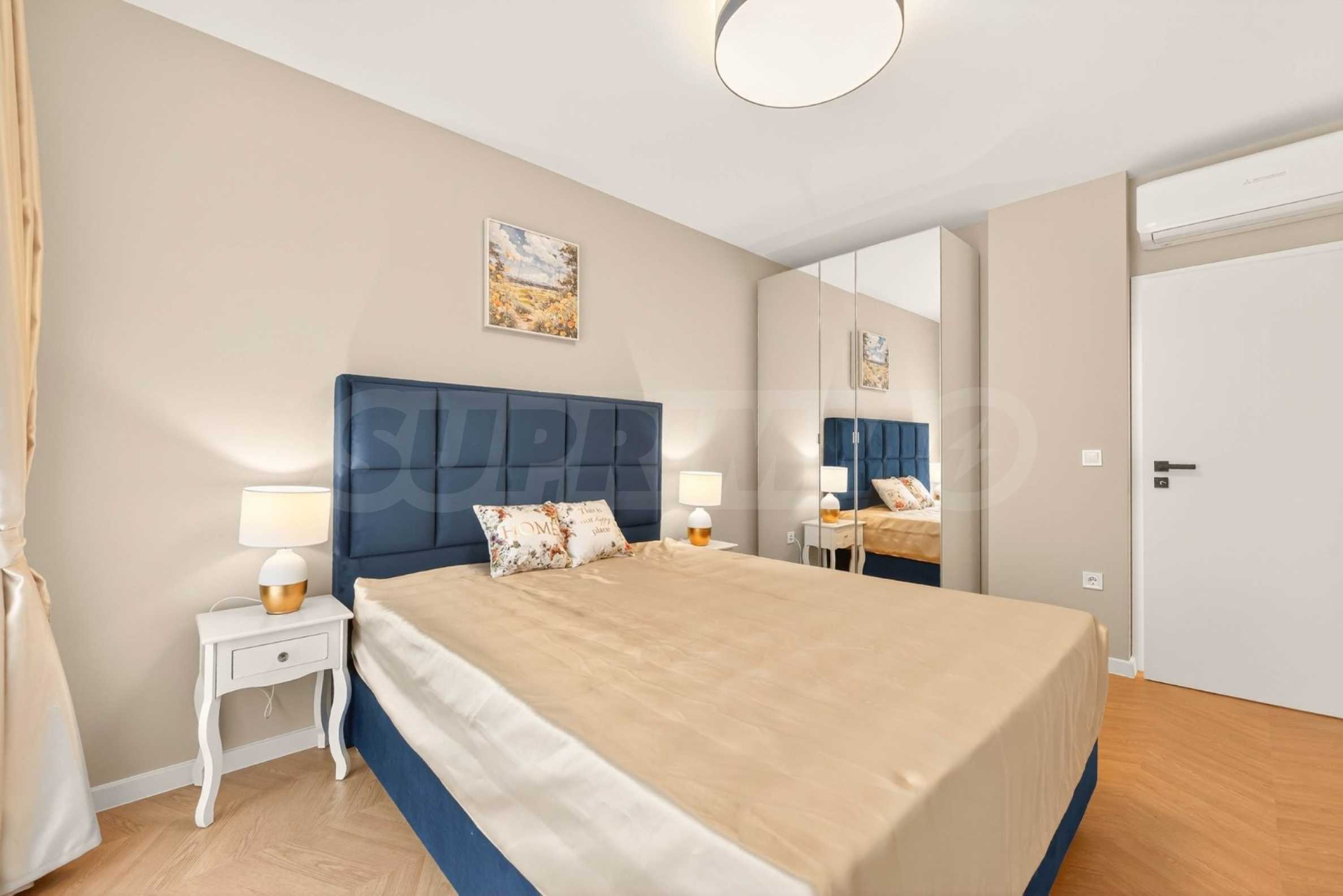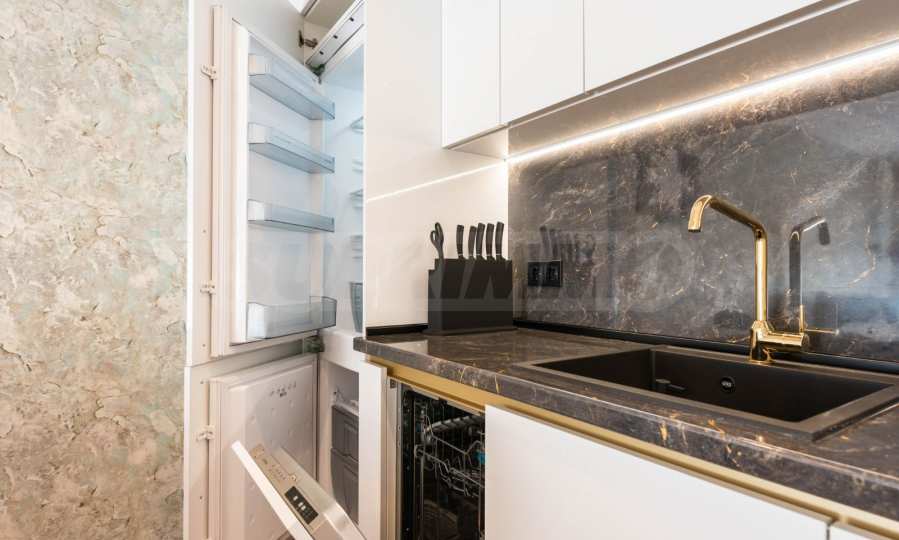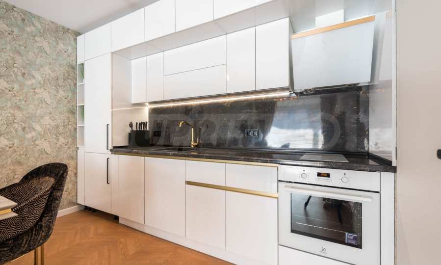 The apartment is new, first-class furnished and equipped with everything you need for living: built-in washing machine, dryer, dishwasher, stove and large refrigerator, TV, water heater, etc. The interior is decorated in light tones, with contemporary and stylish furniture, and all rooms have high-class air conditioners installed.