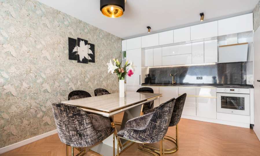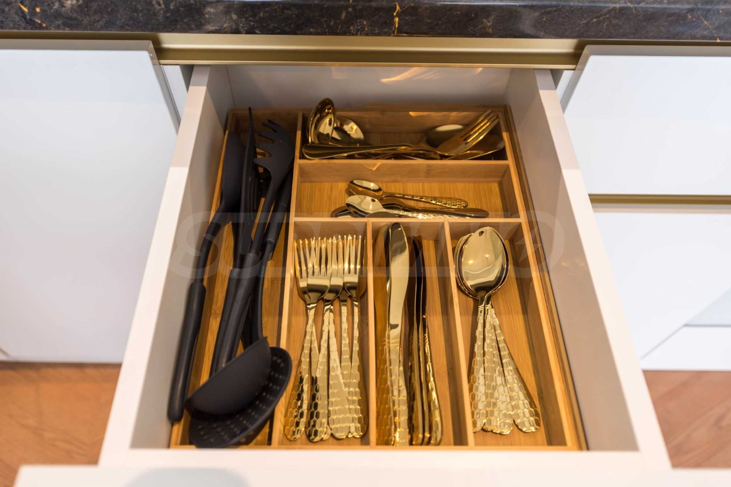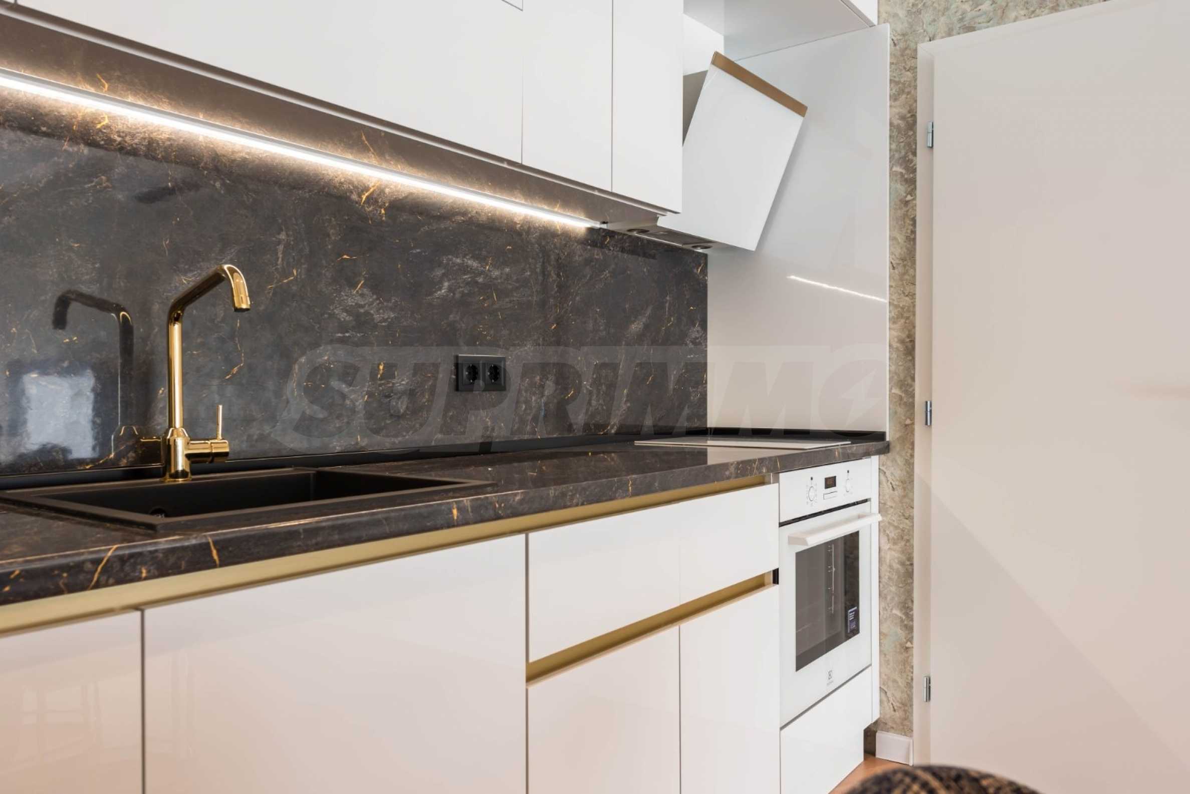 The apartment is new, first-class furnished and equipped with everything you need for living: built-in washing machine, dryer, dishwasher, stove and large refrigerator, TV, water heater, etc. The interior is decorated in light tones, with contemporary and stylish furniture, and all rooms have high-class air conditioners installed.