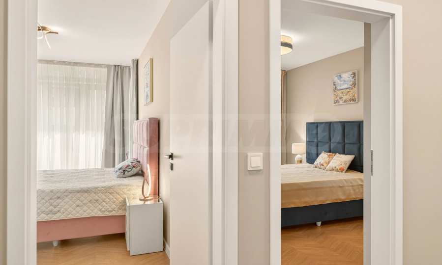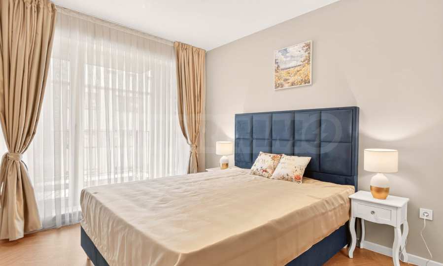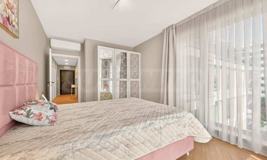 We present a wonderful family property - a luxuriously furnished two-bedroom apartment for rent in a new building in the center of Varna, in a top location near the Cathedral, the 1st Police Department of the Ministry of Internal Affairs and "Kolhozen Pazar".