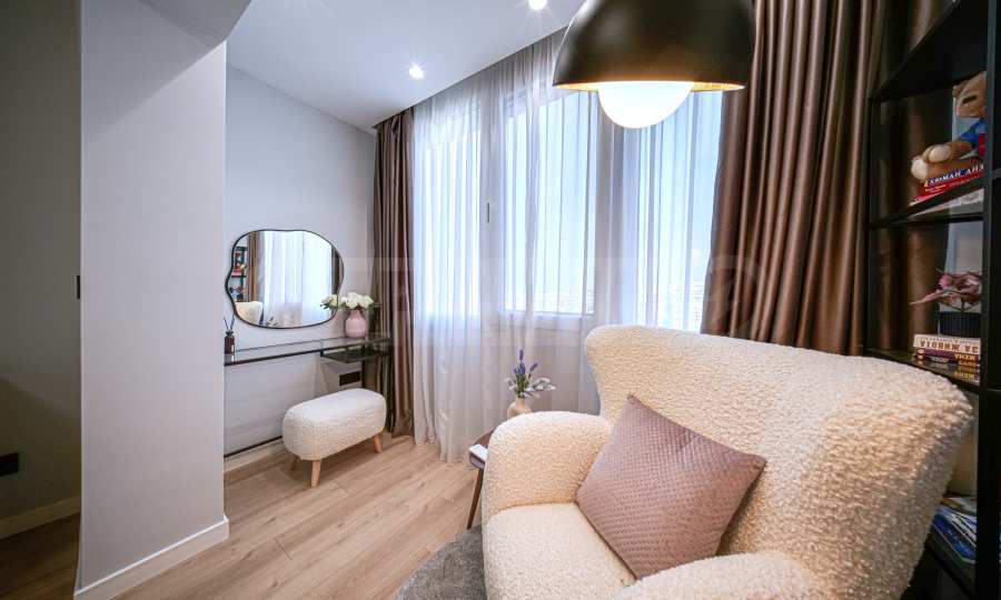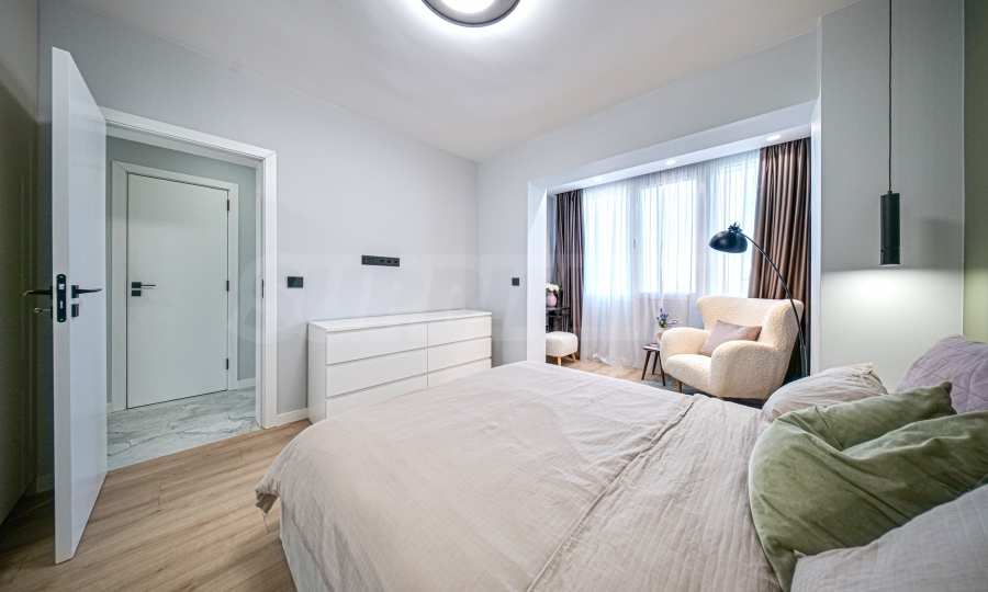 We present a first-class furnished and extremely cozy two-room apartment for connoisseurs. The apartment is located in an excellent location in the "Strelbishte" district, at the entrance to South Park, and impresses with a unique view of Vitosha Mountain and the park, modern interior solutions and optimal use of space for comfortable everyday life.