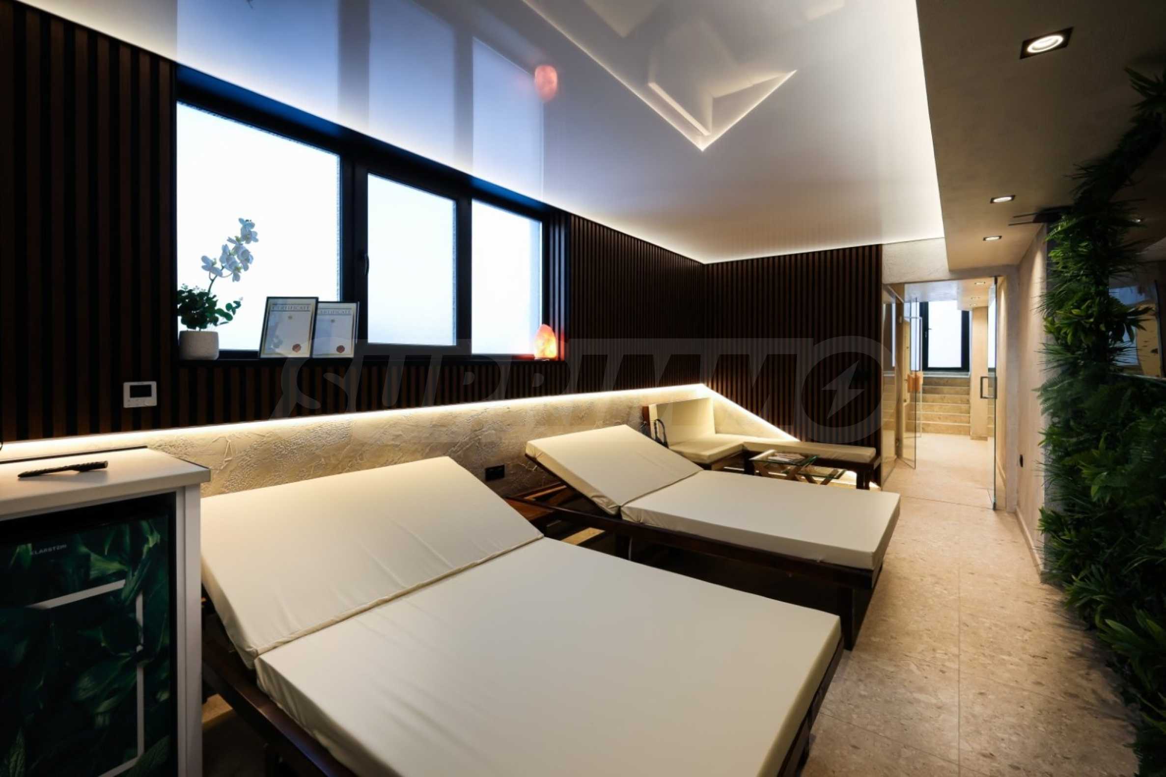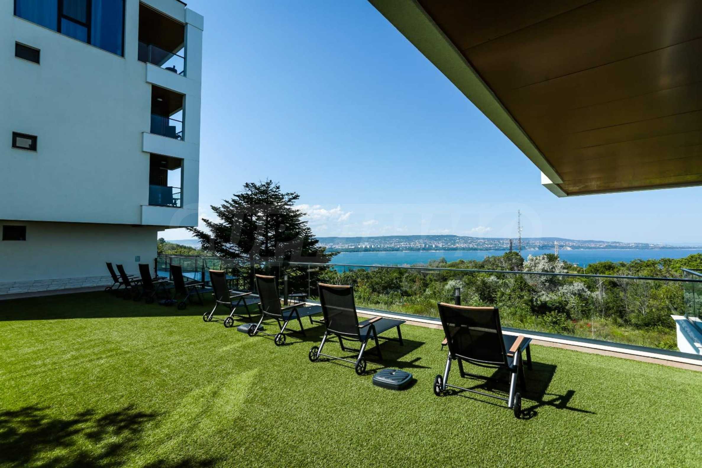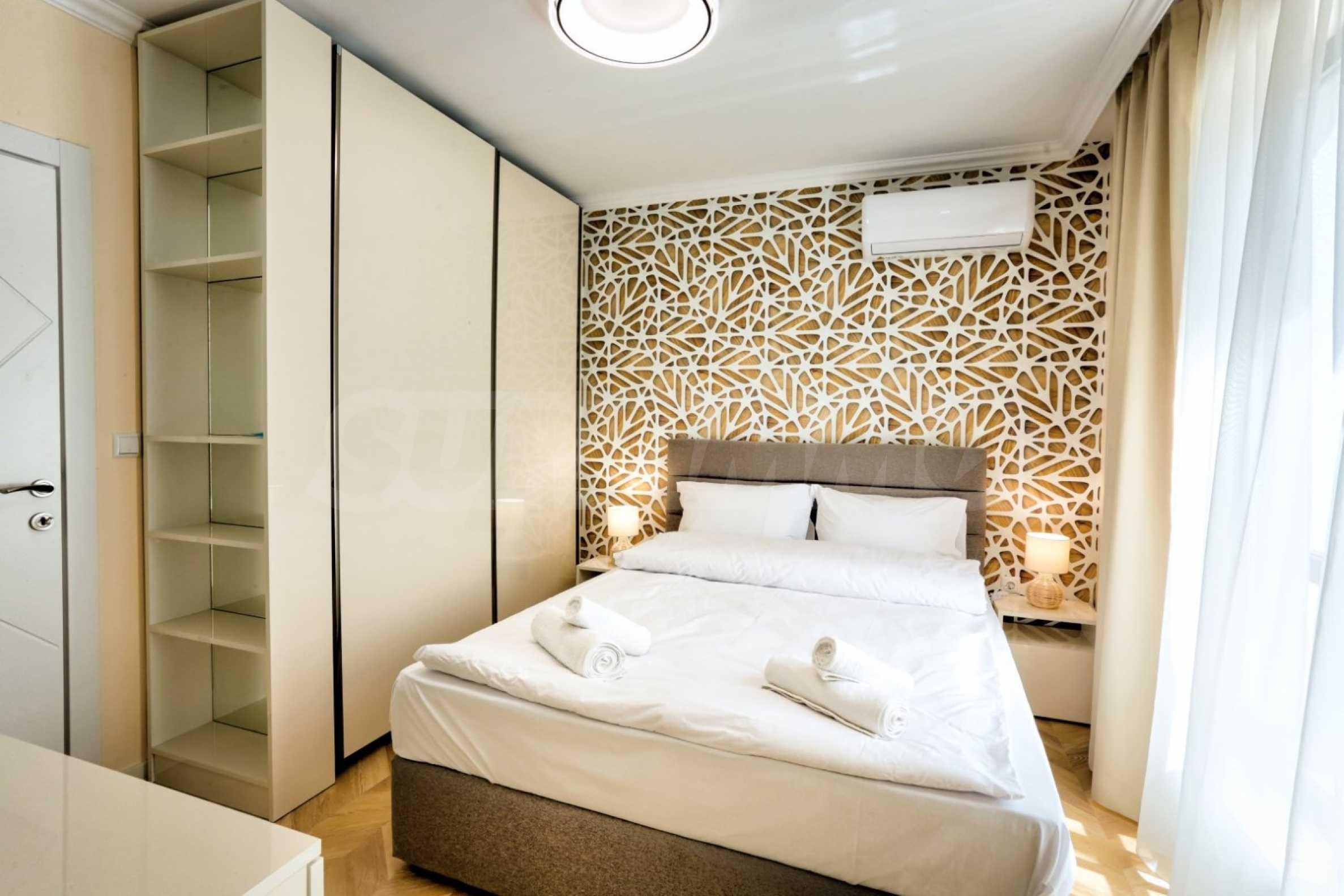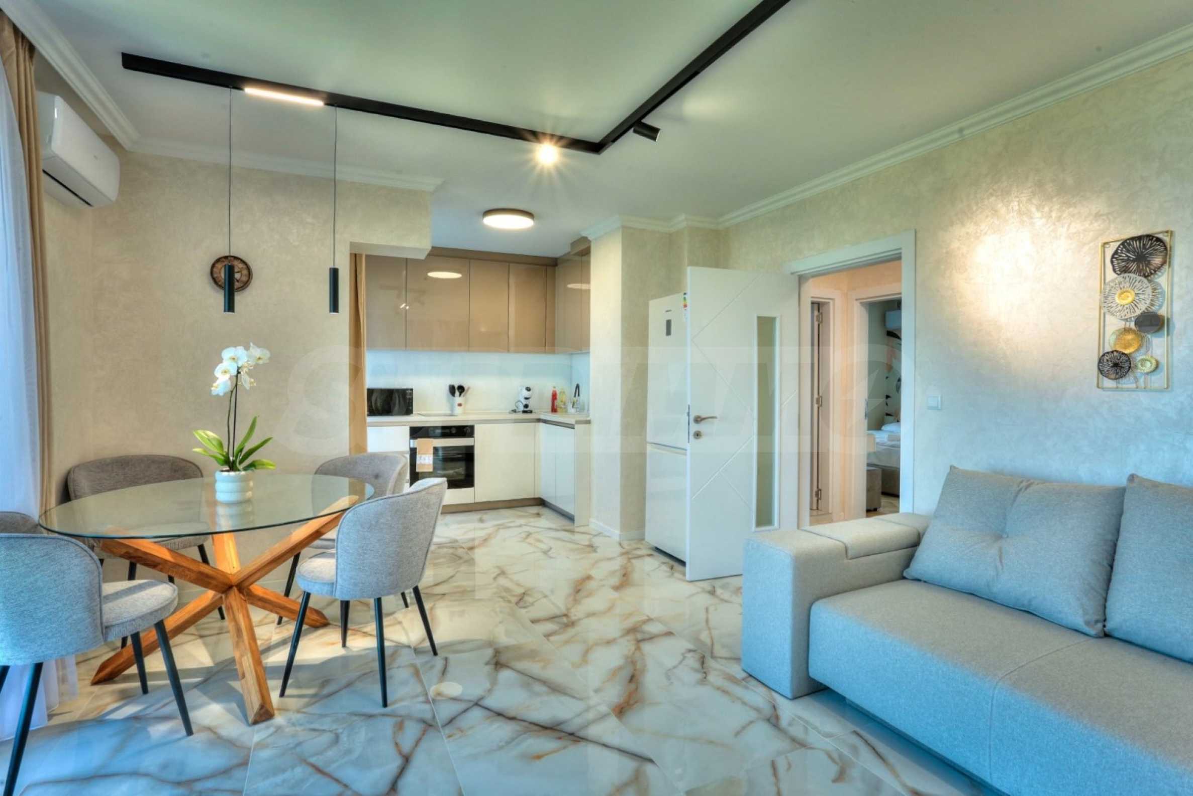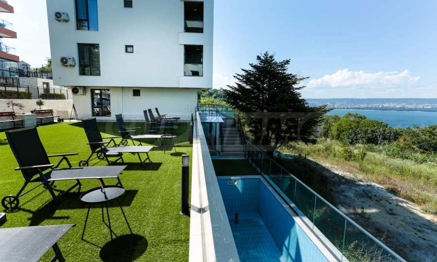 We present a luxuriously furnished two-bedroom apartment for rent, part of a modern complex with a swimming pool in the picturesque "Galata" district of Varna, meters from the seashore.