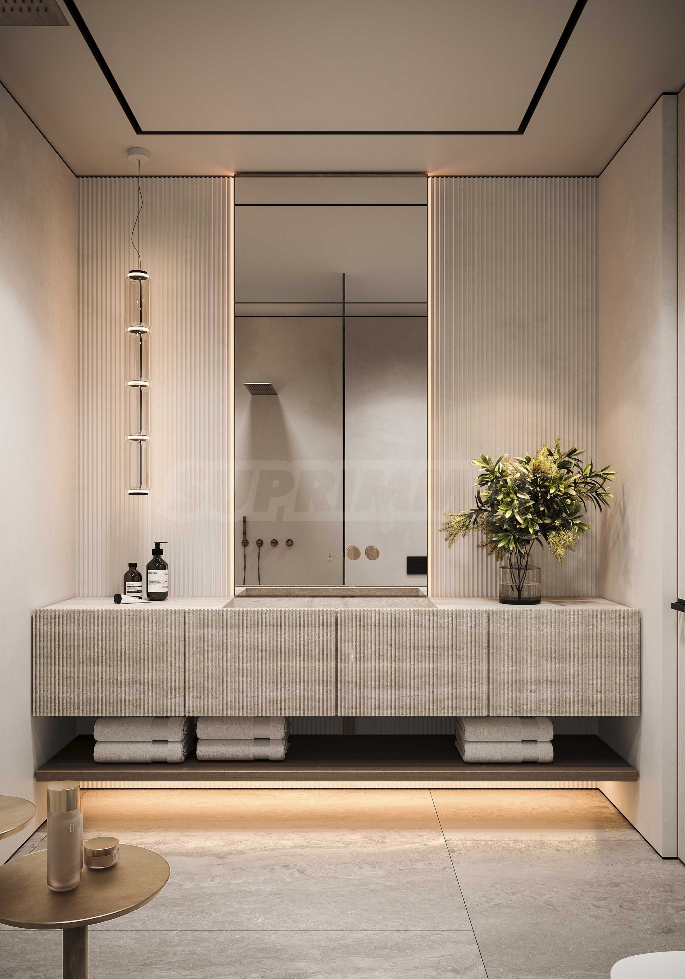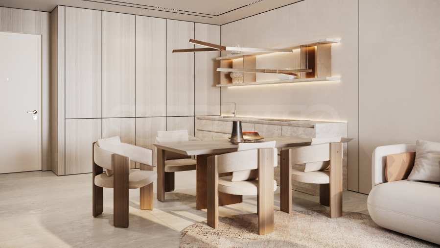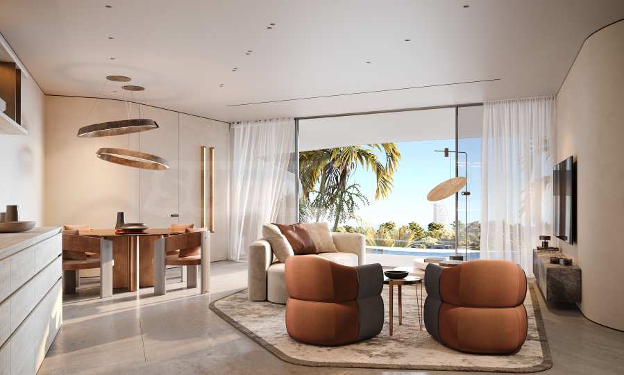 Trussardi Residences presents a wide selection of studios, one-bedroom, and two-bedroom apartments, designed to meet the needs of both dynamic professionals and families who appreciate safety and tranquility in their daily lives. With ceilings over three meters high and floor-to-ceiling windows, the interiors exude light, airiness, and openness. Each home has been thoughtfully planned with a focus on comfort and functionality – even the studios feature a dedicated sleeping area, separate from the kitchen. One- and two-bedroom residences include ensuite bathrooms and built-in wardrobes, offering both privacy and smart storage solutions.