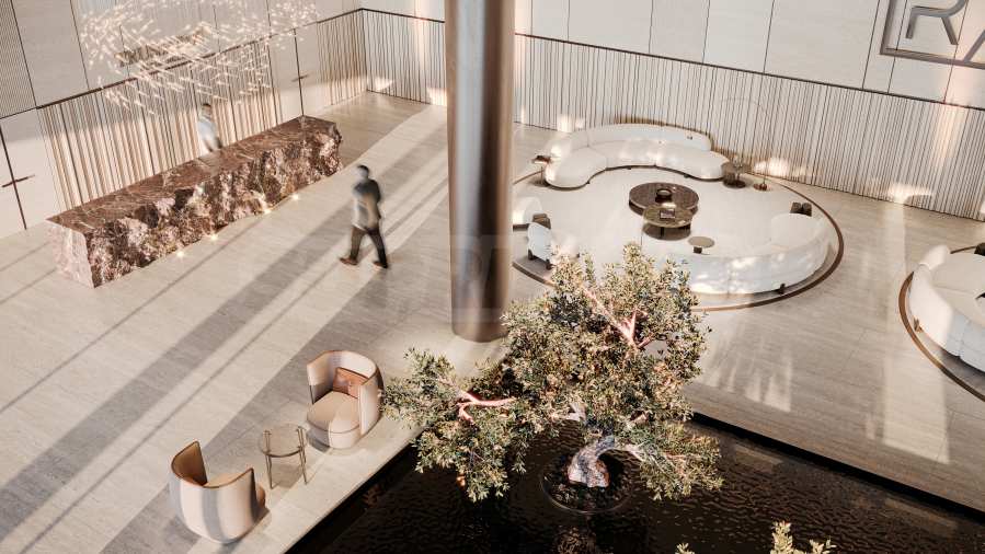 The two towers we proudly present are part of the project’s second phase, located in close proximity to the first. The developers have not only maintained but also exceeded the standards of quality and comfort established in the initial phase. The complex comprises two ten-story buildings, connected by podium levels that host a variety of amenities and office spaces. Upon arrival, residents are welcomed by a 7-meter-high lobby, impressively designed with refined interiors, a reception desk, comfortable lounge areas, and elegant landscaping.