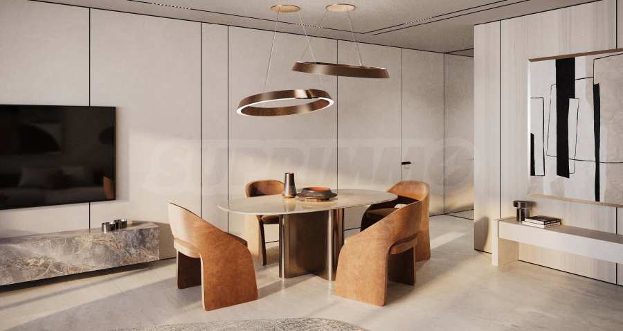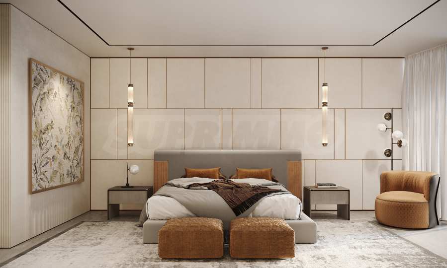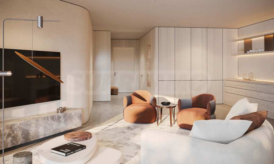 The apartments come fully furnished, with interiors designed by Trussardi Casa – a brand that masterfully combines luxury, elegance, and practicality. Kitchens feature a sleek, minimalist design with intelligent storage solutions and are equipped with Miele appliances, while bathrooms are fitted with Gessi accessories, a name synonymous with quality and refinement. Every home is ready to welcome you – all that’s left is to bring your personal belongings and immerse yourself in the world of Trussardi. Spacious living rooms with comfortable sofas and stylish coffee tables, along with cozy bedrooms, transform each day into an experience of true comfort and style.