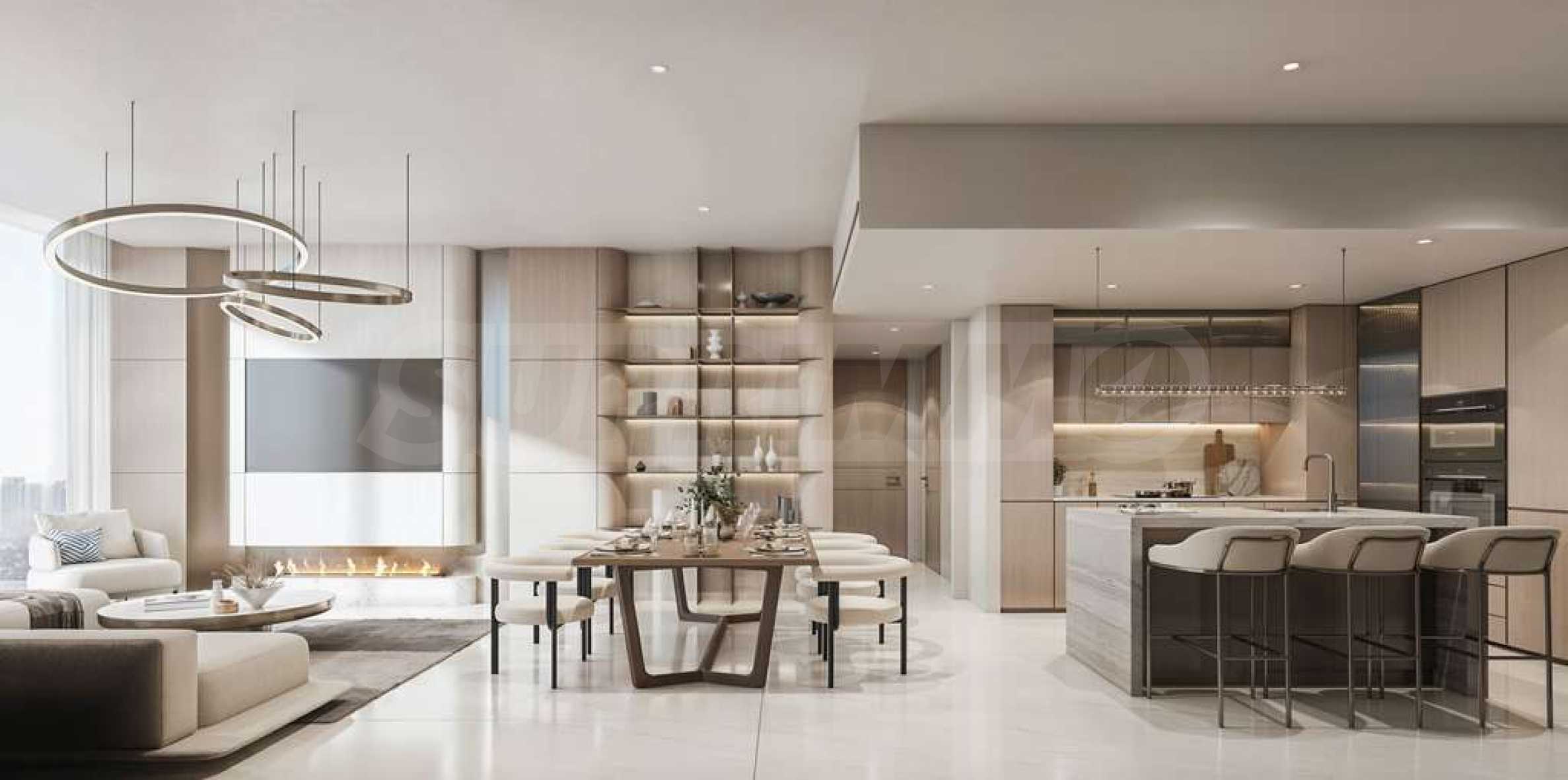 One-bedroom homes are designed to maximize light and openness, with 3-metre floor-to-ceiling windows, European stone flooring, quartz countertops, and Siemens appliances. Two-bedroom residences balance functionality and elegance with expansive living and dining areas, serene master suites, and kitchens tailored for contemporary lifestyles. At the pinnacle, the three-bedroom penthouses redefine luxury – offering large private terraces, spa-inspired bathrooms, and jacuzzis overlooking Dubai’s iconic skyline.