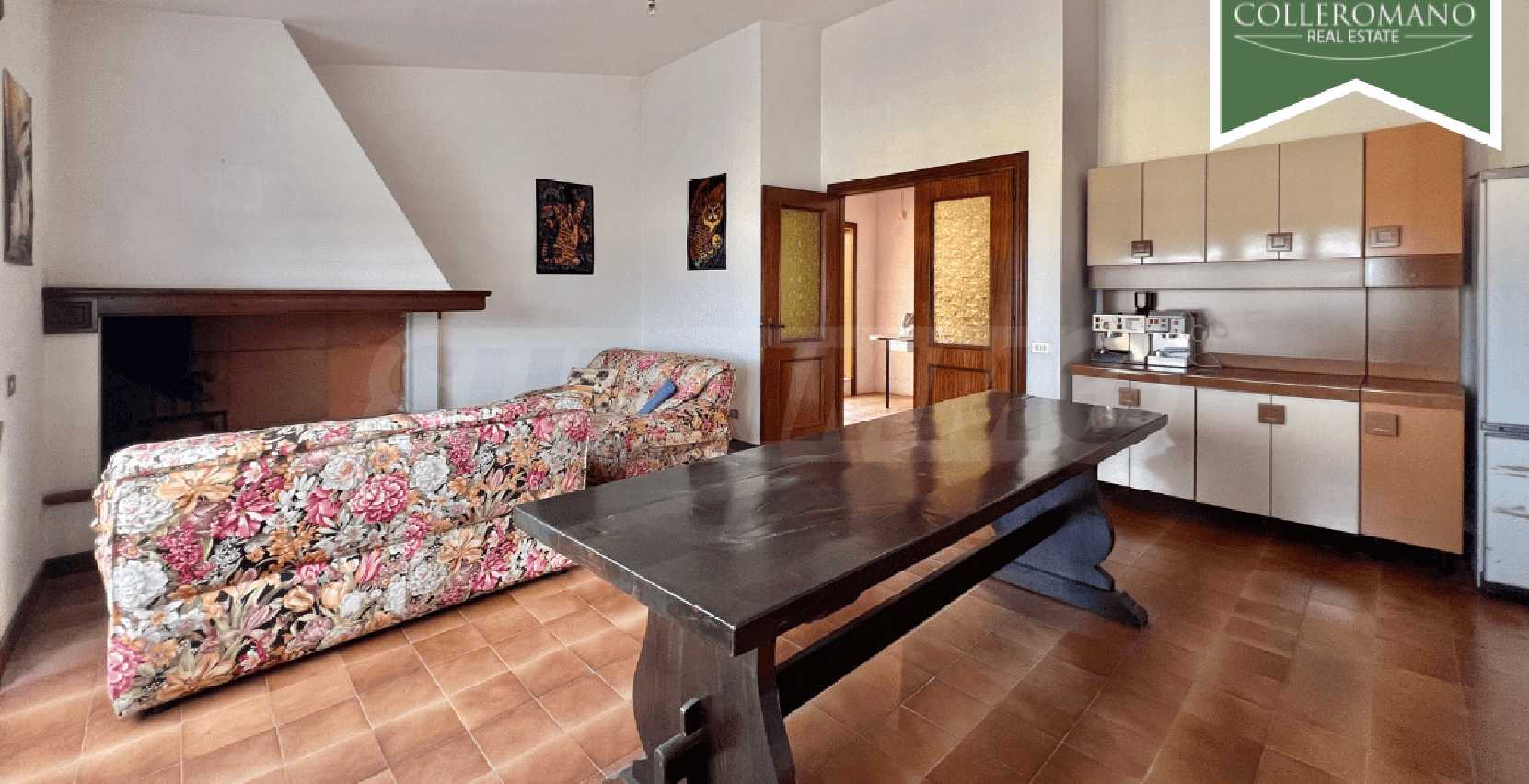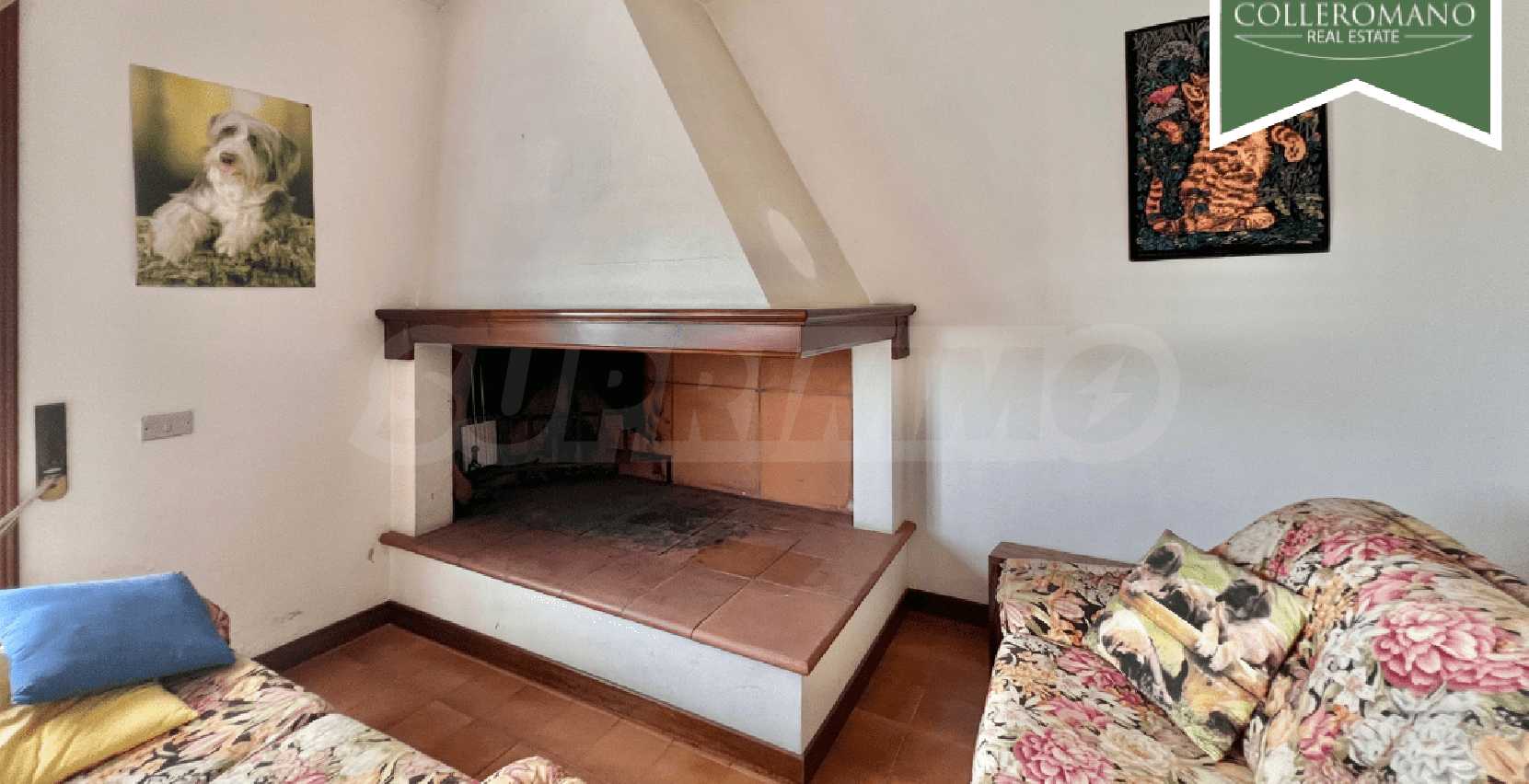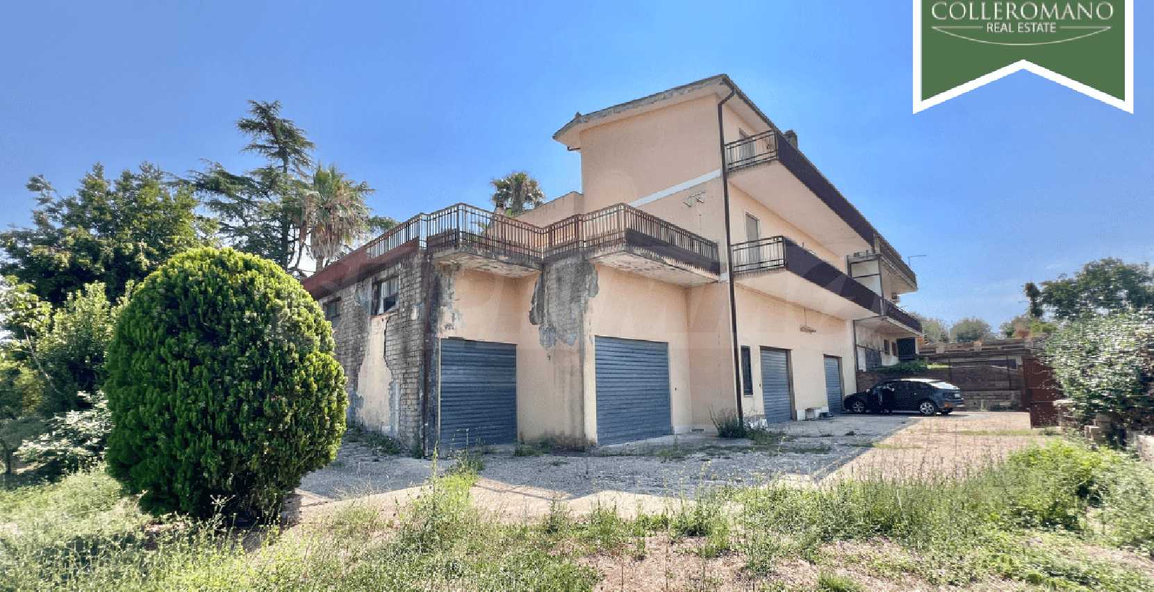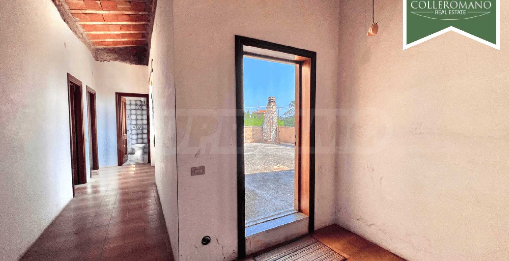 We are pleased to present a semi-detached villa for sale in Riano. The villa is located on Via Quartarella, two minutes from Via Flaminia, between the CTS supermarket and the Riano crossroads. The villa, which enjoys a commanding position overlooking a pleasant panorama, extends over three floors for a total of 480 square meters and is surrounded by a garden of approximately 1,200 square meters with tall trees and palm trees and a large paved terrace. The property comprises a ground-floor apartment, a second apartment on the first floor, as well as a garage and a workshop on the lower ground floor. The ground-floor apartment, approximately 160 square meters, comprises a large entrance hall, living room, eat-in kitchen with fireplace, three large bedrooms, and two bathrooms. A panoramic balcony completes the floor. On the upper floor, there is an approximately 100 sq m apartment requiring finishing, comprising an entrance hall, living room with fireplace, kitchen, two bedrooms, and a bathroom. A balcony and a 50 sq m terrace complete the floor. The lower ground floor, at garden level on one side, comprises a 70 sq m garage and a 145 sq m workshop. This semi-detached villa for sale in Riano, which requires renovation, offers great potential. It is ideal for two families or, by combining the two apartments, to form a single family unit.