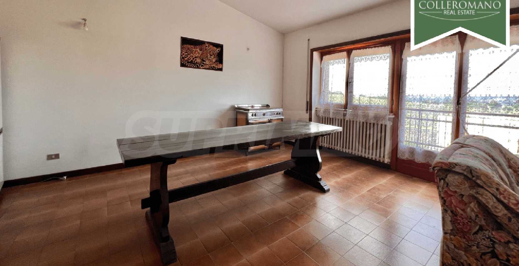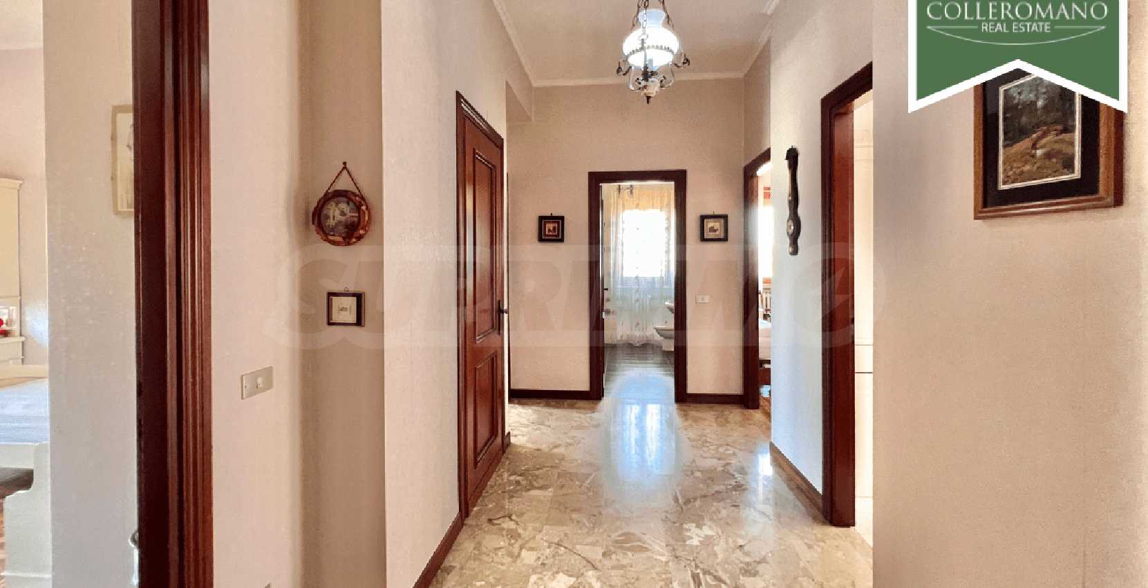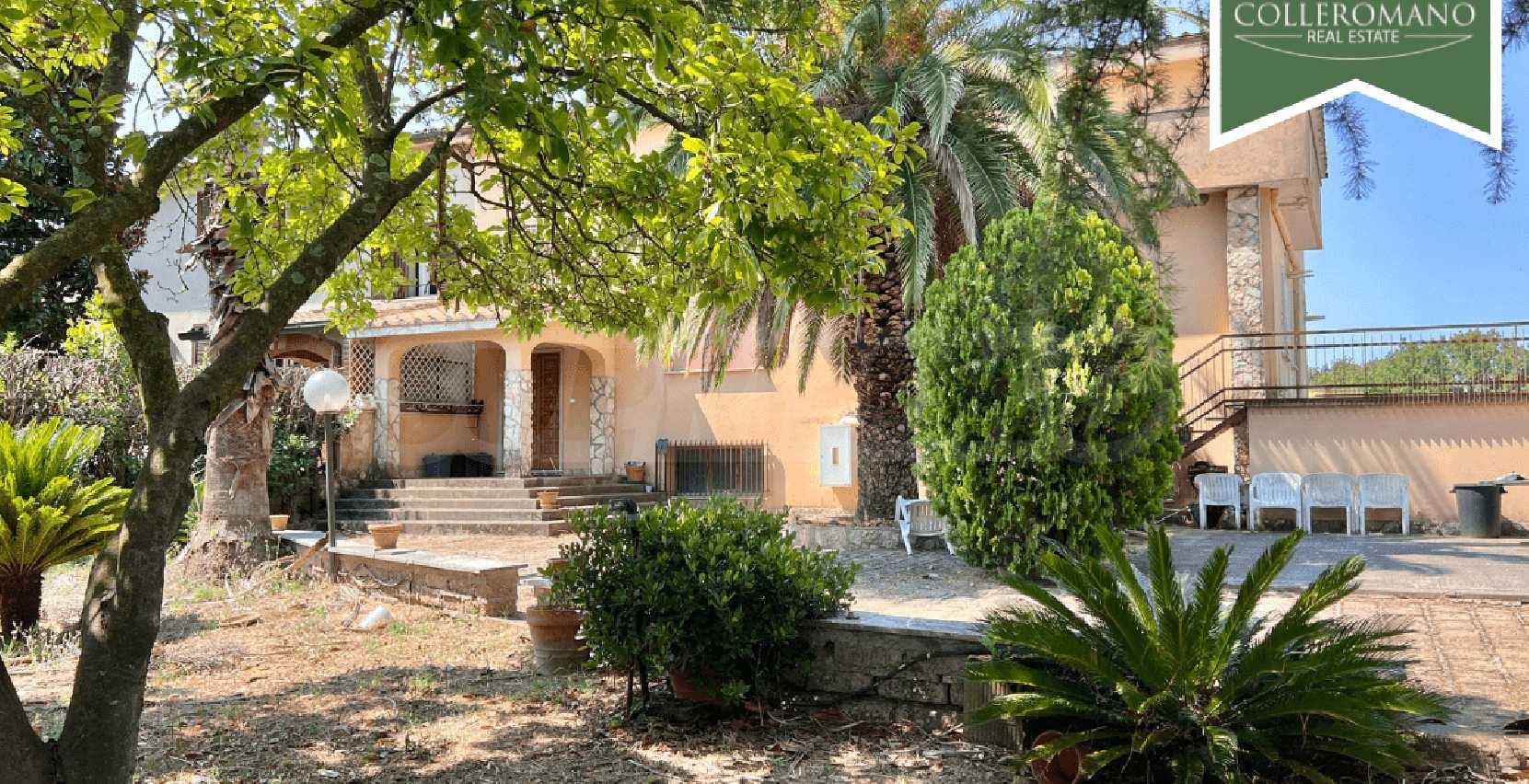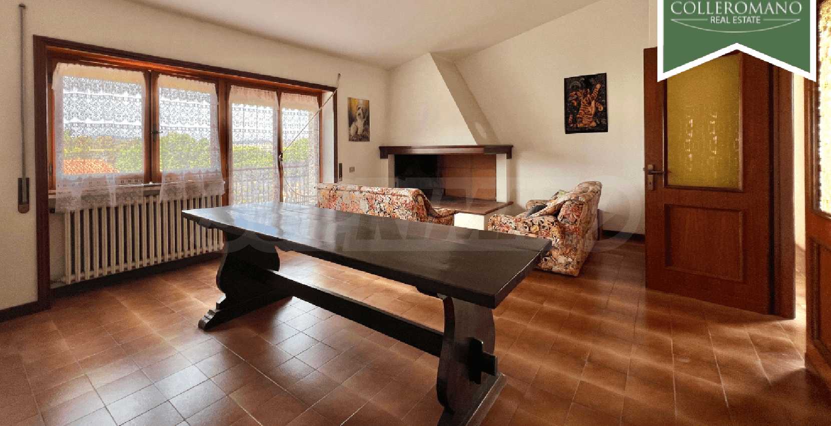 We are pleased to present a semi-detached villa for sale in Riano. The villa is located on Via Quartarella, two minutes from Via Flaminia, between the CTS supermarket and the Riano crossroads. The villa, which enjoys a commanding position overlooking a pleasant panorama, extends over three floors for a total of 480 square meters and is surrounded by a garden of approximately 1,200 square meters with tall trees and palm trees and a large paved terrace. The property comprises a ground-floor apartment, a second apartment on the first floor, as well as a garage and a workshop on the lower ground floor. The ground-floor apartment, approximately 160 square meters, comprises a large entrance hall, living room, eat-in kitchen with fireplace, three large bedrooms, and two bathrooms. A panoramic balcony completes the floor. On the upper floor, there is an approximately 100 sq m apartment requiring finishing, comprising an entrance hall, living room with fireplace, kitchen, two bedrooms, and a bathroom. A balcony and a 50 sq m terrace complete the floor. The lower ground floor, at garden level on one side, comprises a 70 sq m garage and a 145 sq m workshop. This semi-detached villa for sale in Riano, which requires renovation, offers great potential. It is ideal for two families or, by combining the two apartments, to form a single family unit.