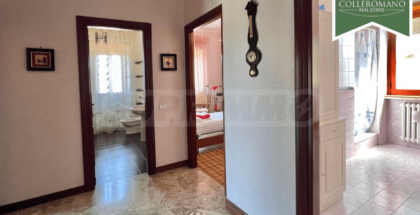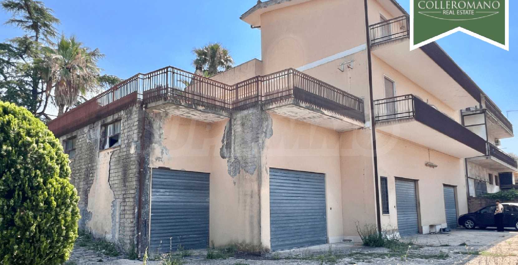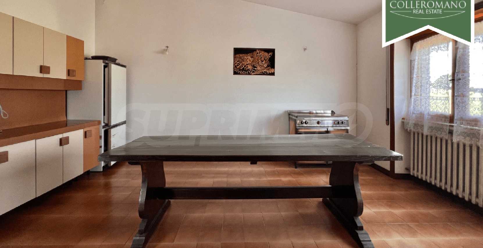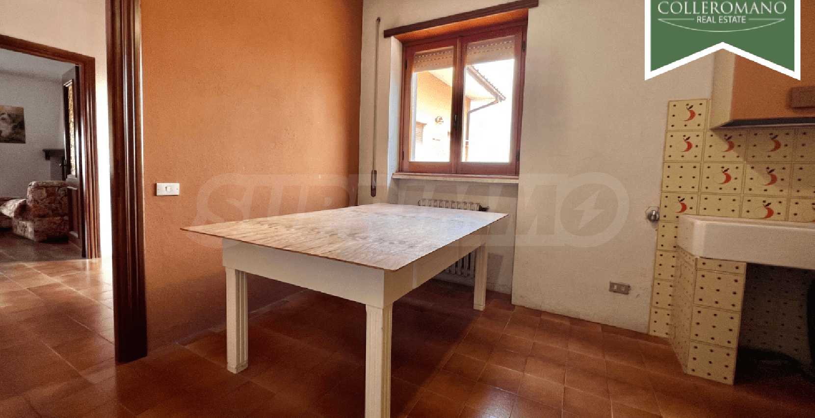 We are pleased to present a semi-detached villa for sale in Riano. The villa is located on Via Quartarella, two minutes from Via Flaminia, between the CTS supermarket and the Riano crossroads. The villa, which enjoys a commanding position overlooking a pleasant panorama, extends over three floors for a total of 480 square meters and is surrounded by a garden of approximately 1,200 square meters with tall trees and palm trees and a large paved terrace. The property comprises a ground-floor apartment, a second apartment on the first floor, as well as a garage and a workshop on the lower ground floor. The ground-floor apartment, approximately 160 square meters, comprises a large entrance hall, living room, eat-in kitchen with fireplace, three large bedrooms, and two bathrooms. A panoramic balcony completes the floor. On the upper floor, there is an approximately 100 sq m apartment requiring finishing, comprising an entrance hall, living room with fireplace, kitchen, two bedrooms, and a bathroom. A balcony and a 50 sq m terrace complete the floor. The lower ground floor, at garden level on one side, comprises a 70 sq m garage and a 145 sq m workshop. This semi-detached villa for sale in Riano, which requires renovation, offers great potential. It is ideal for two families or, by combining the two apartments, to form a single family unit.