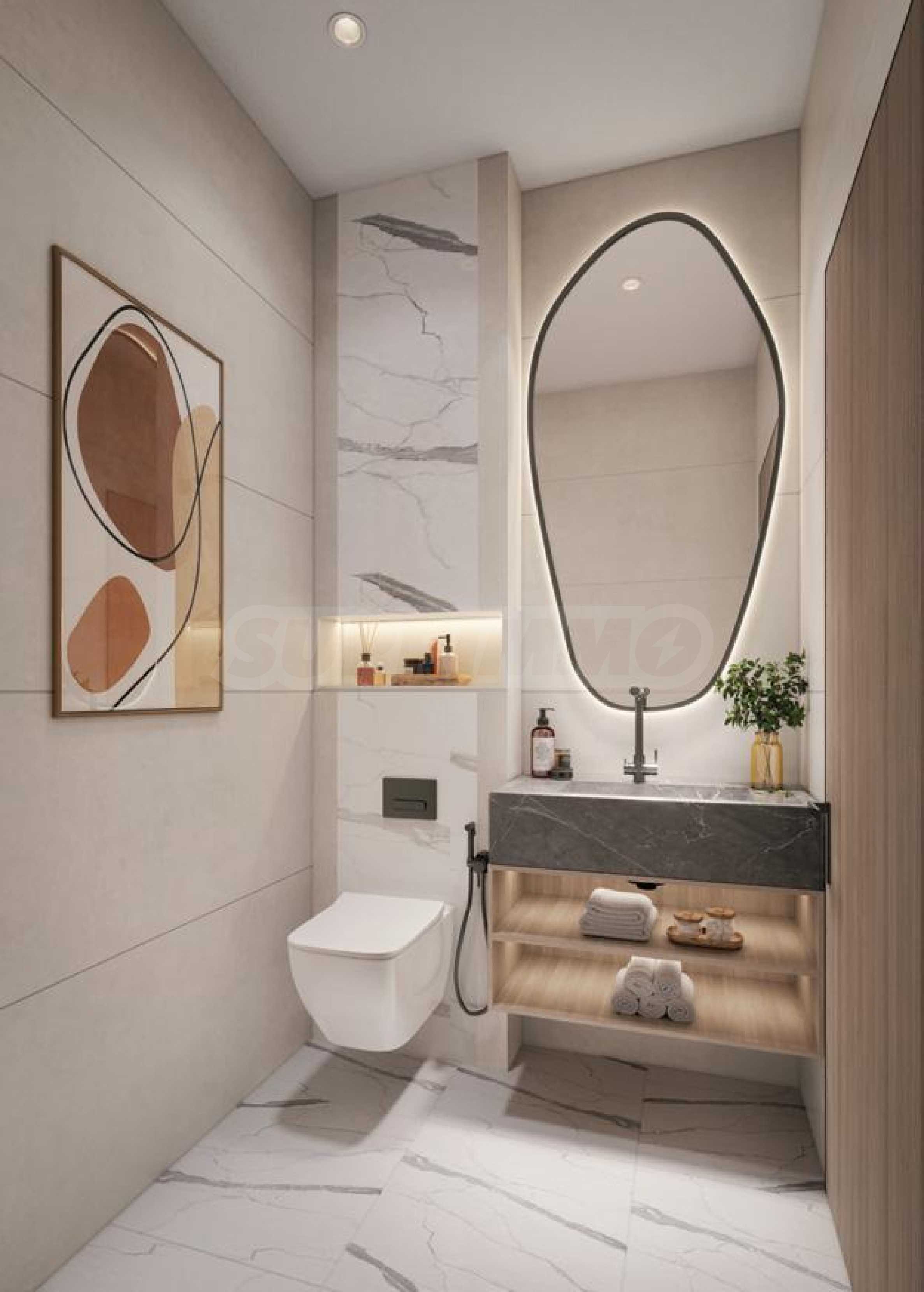 The residences at Aqua Maya come fully furnished and equipped – from sleek kitchens to inviting living rooms and refined bedrooms, every detail has been perfected to offer the best in comfort and style. Each bedroom is designed with integrated wardrobes or walk-in closets and features an en-suite bathroom, ensuring convenience and privacy. Climate control in every room can be individually adjusted to deliver maximum comfort for all residents.