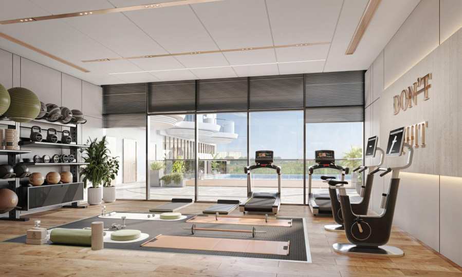 Above the podium level lies an open-air deck with some of the building’s key amenities – an infinity pool and relaxation area. Residents can also enjoy a barbecue and dining zone, alongside dedicated indoor and outdoor children’s play areas. A fully equipped gym ensures you can maintain your active lifestyle without leaving the comfort of home.