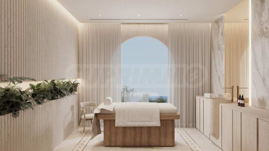 Residents also enjoy access to a stunning swimming pool with sun loungers and umbrellas – perfect for both swimming and basking in the sun. Additional amenities include a fine restaurant, a fully equipped gym, and a spa zone with jacuzzi, steam room, and sauna – transforming everyday living into a resort-style experience.