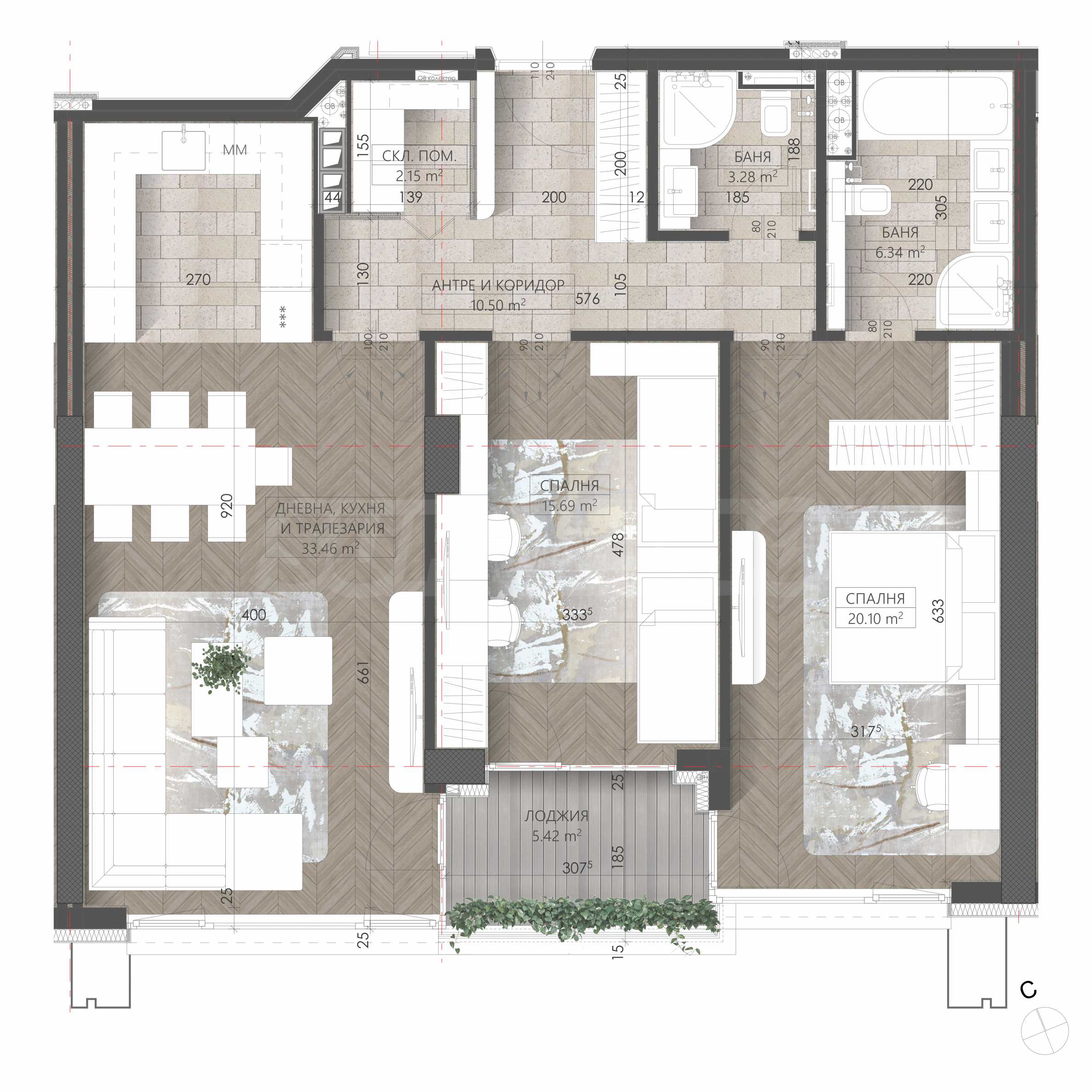 Each floor of Synerga Premium Complex offers a unique collection of 7 different apartments, all facing south and offering impressive panoramic views of Vitosha Mountain. The layouts are designed with the modern person in mind – functional spaces, optimal areas and natural light in each apartment. There is no waste here, but there are no compromises either – each apartment is designed to bring space and comfort.