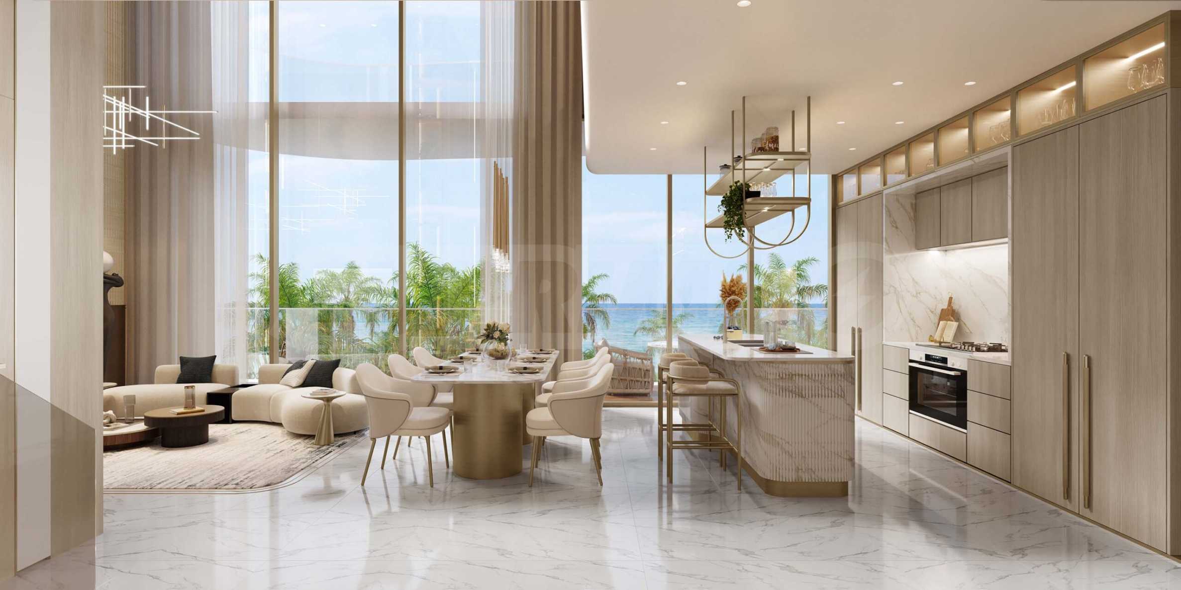 Each residence impresses with spacious layouts and functional design. High ceilings and floor-to-ceiling windows flood the interiors with natural light and reveal inspiring views of the sea and Dubai’s skyline.
