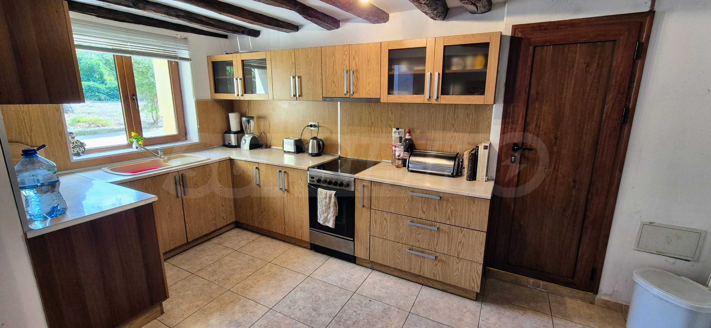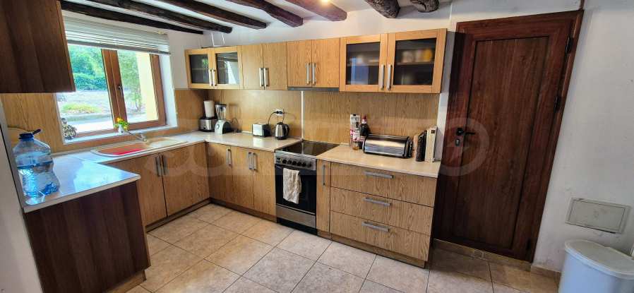 The house is being sold with a furnished kitchen (including two refrigerators, washing machine, dishwasher, stove, electrical appliances) and furniture. The well-maintained condition and the combination of modern comfort and rustic coziness make it ready to move into.