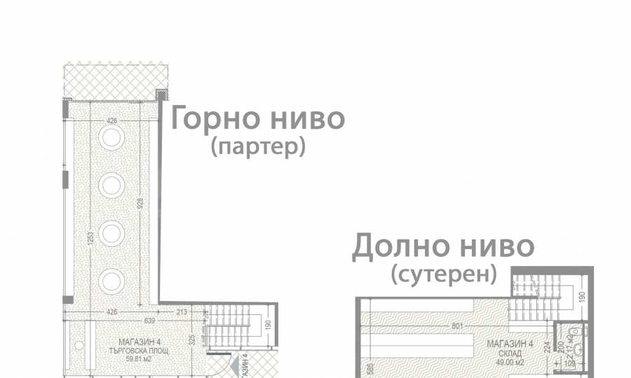 • second level (basement) – bright area of 49 sq m in open space and bathroom. Clear height to ceiling – 2.40 meters.