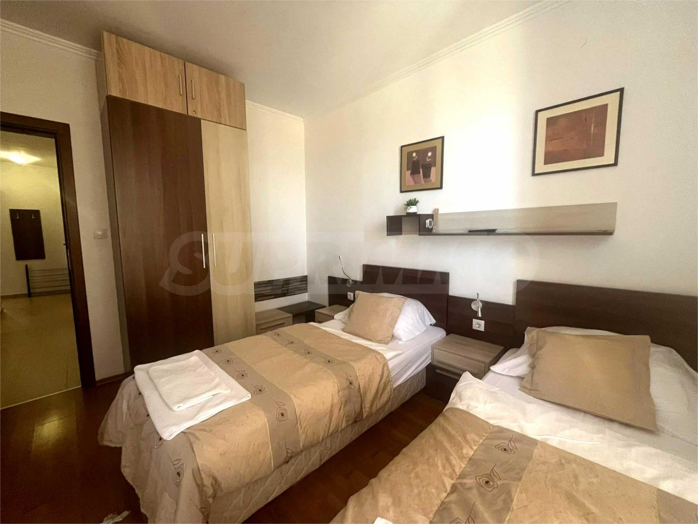 The maintenance fee is 15 euros per sq m per year and includes cleaning and lighting of the common areas, elevator, cable TV, reception, SPA center with indoor and outdoor swimming pools.