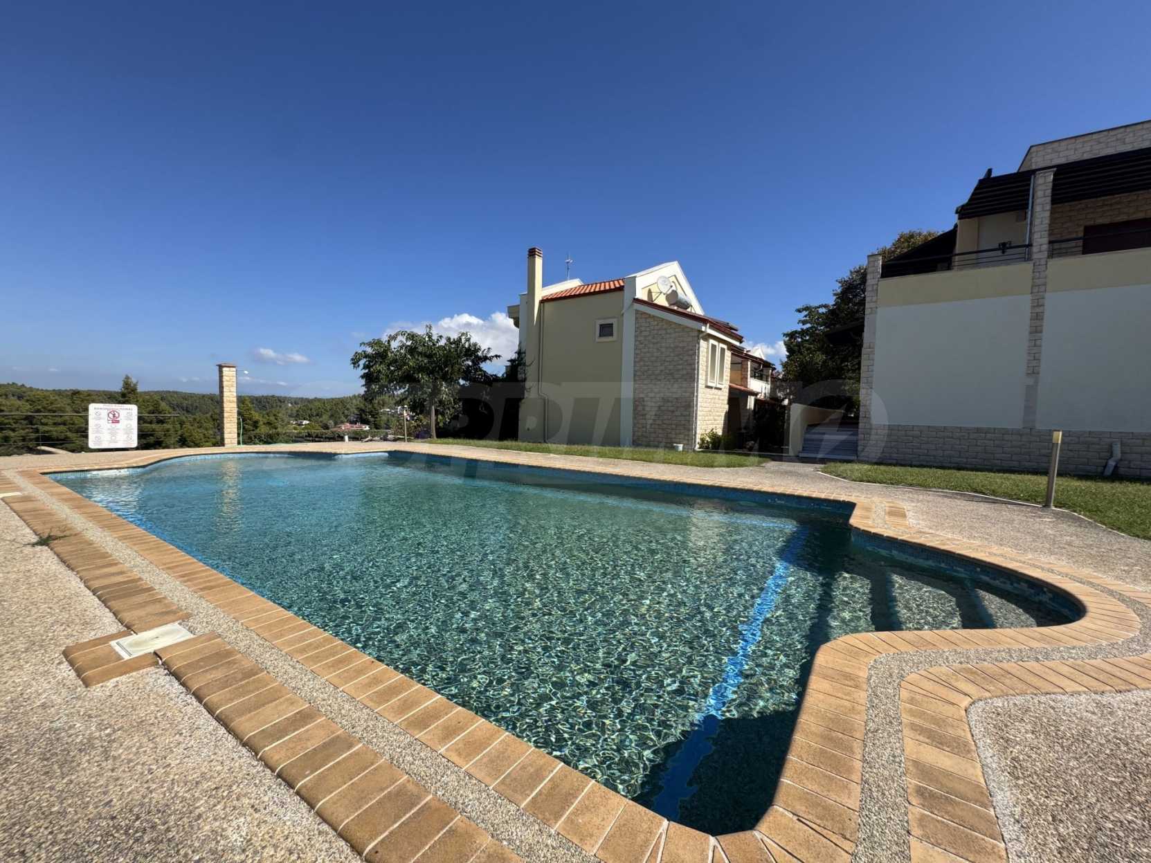 Situated in Halkidiki, this newly built detached house in a complex offers amazing mountain views and is just a 5-minute walk from the sea. With 3 bedrooms, 2 bathrooms, and 2 parking spaces, this property is perfect for those seeking a serene coastal lifestyle. Residents can also enjoy outdoor shared pool facilities. Don't miss the opportunity to own a piece of paradise in Kassandra municipality.