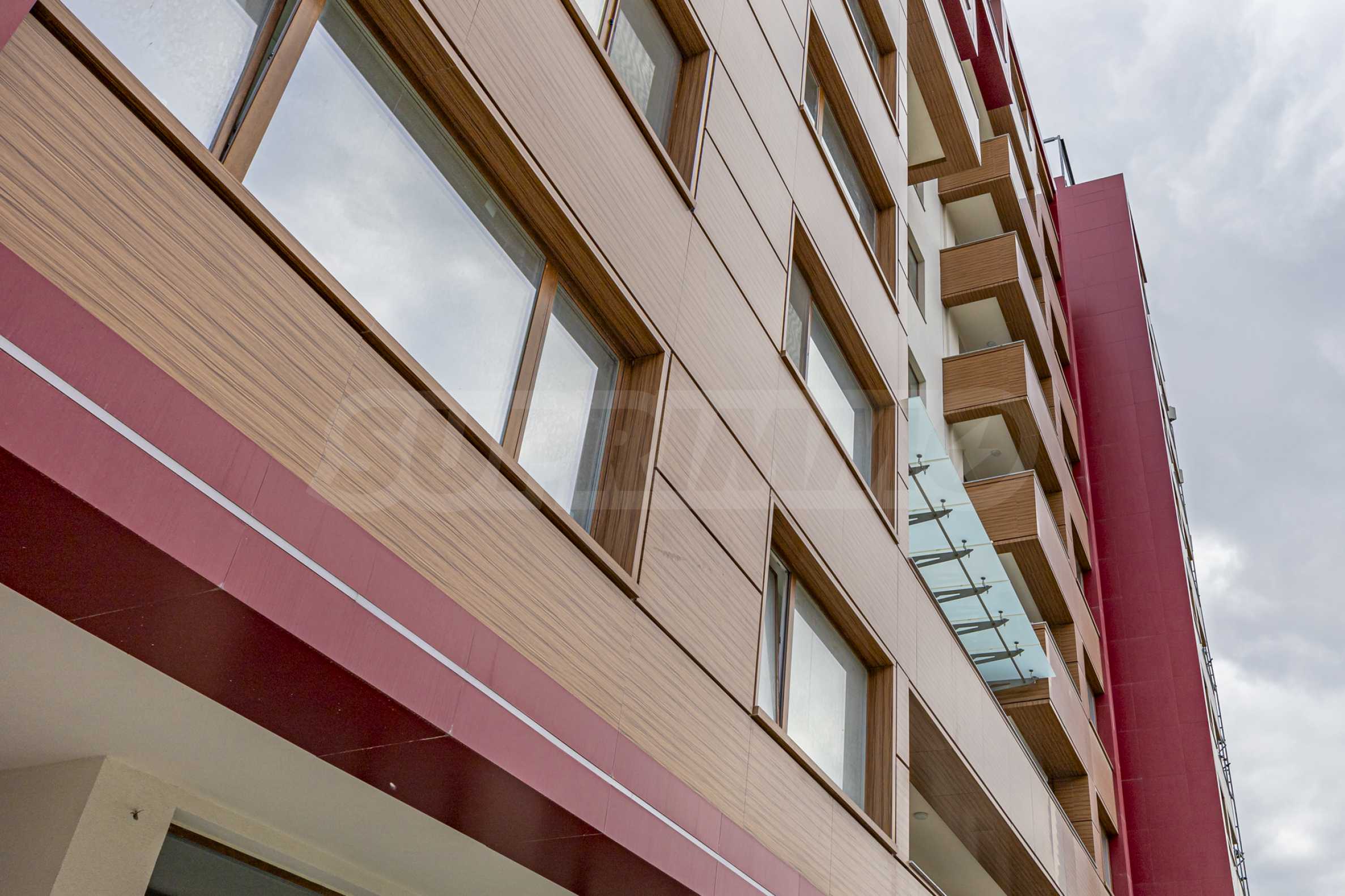 The building occupies a plot of 3788 sq m in the southwestern part of the complex, with an excellent location on Academician Ivan Evstatiev Geshov Blvd. The territory has 2264 sq m of green areas and common spaces - a spacious internal park with alleys, flower corners, maintained vegetation and cozy recreation areas.