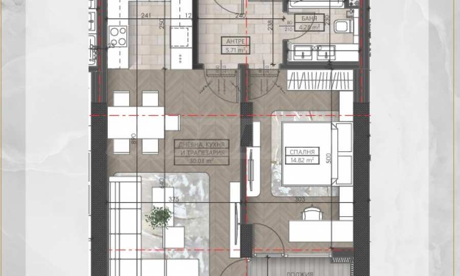 We present a one-bedroom apartment in Synerga Premium Complex, a project that combines the rhythm of the dynamic city with the coziness of green spaces. Located in the heart of the "Mladost" district and just steps from the "Alexander Malinov" metro station, right next to a picturesque park, the complex provides peace and quiet, a balance between city life and proximity to nature - a rare privilege in modern Sofia.