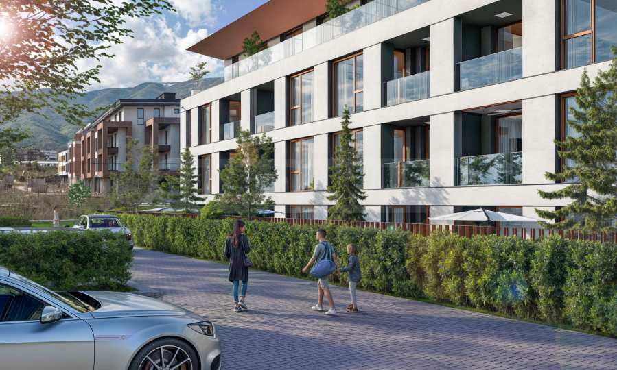 The architects and the developer have once again opted for a residential complex with a state-of-the-art design, designed with an emphasis on minimalist style, clean lines and the harmonious interaction between architecture and the environment. The composition combines functionality and aesthetics, offering open spaces, abundant natural lighting and modern materials. The building has a rectangular shape, with a well-defined modular structure, which gives a sense of order and rhythm. The distribution of the facade and windows creates a balanced vision, while providing optimal lighting and views of the surrounding environment and the beautiful mountain.