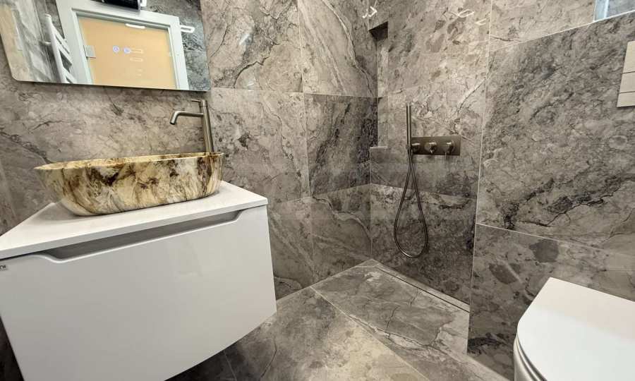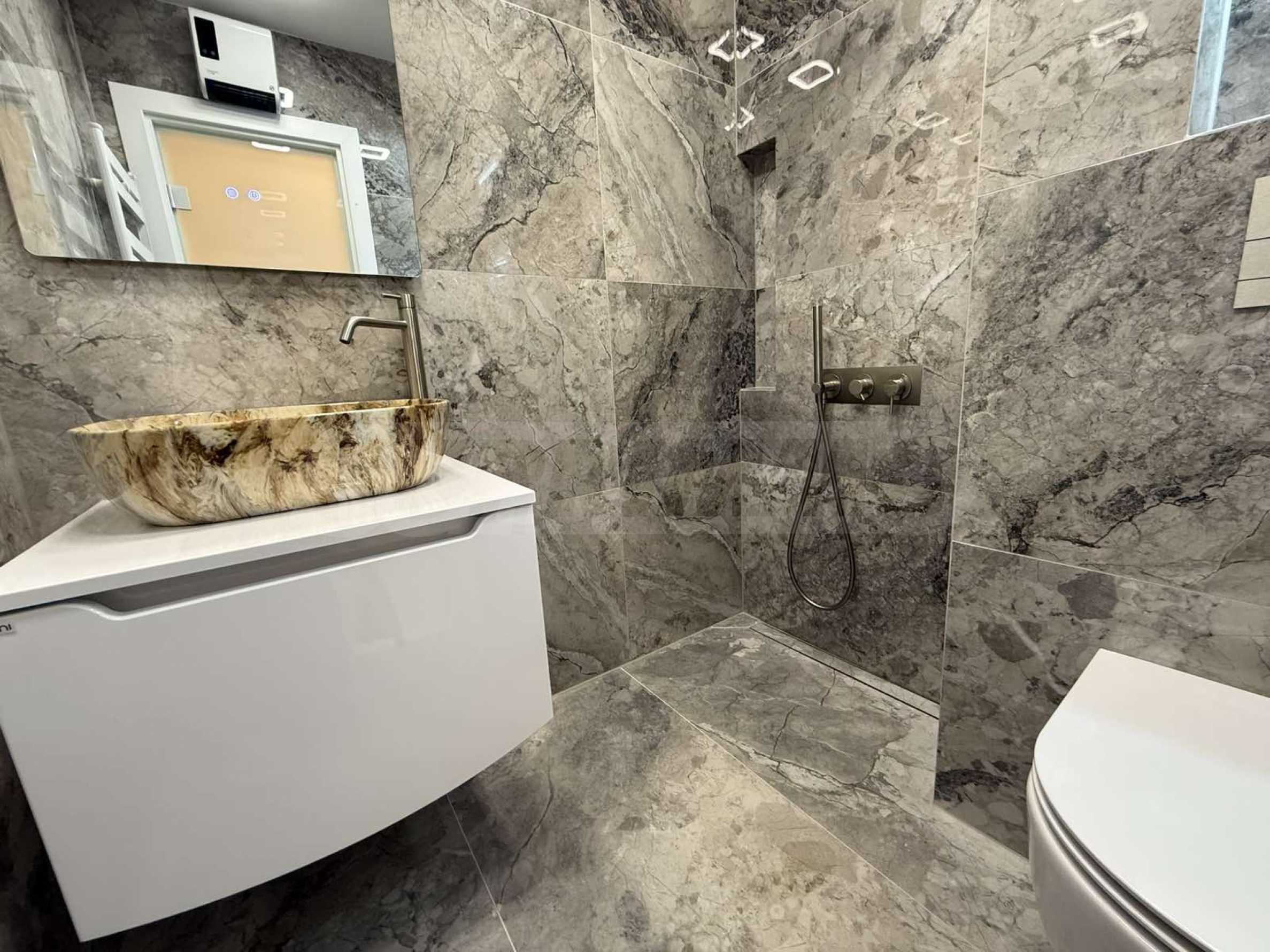 The apartment is offered with first-class furnitures. The property is in excellent condition, as it has not been lived in until now. The lighting everywhere is via LED lighting, which is adjustable. The heating is by air conditioners in each room and gas, if the future tenant decides that he wants it.